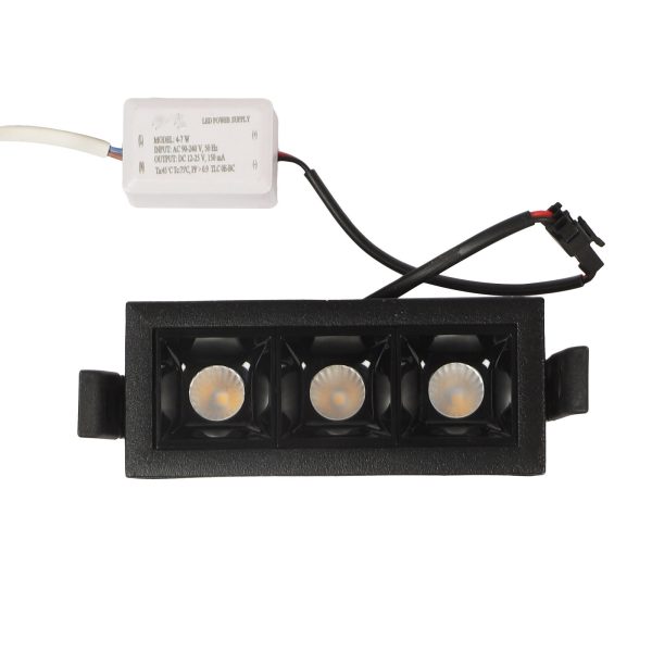 Aluminium die cast powder coated black finish 3 watt LED Linear down light with Bridgelux COB and Philips LED driver. Used in ultra modern spaces.