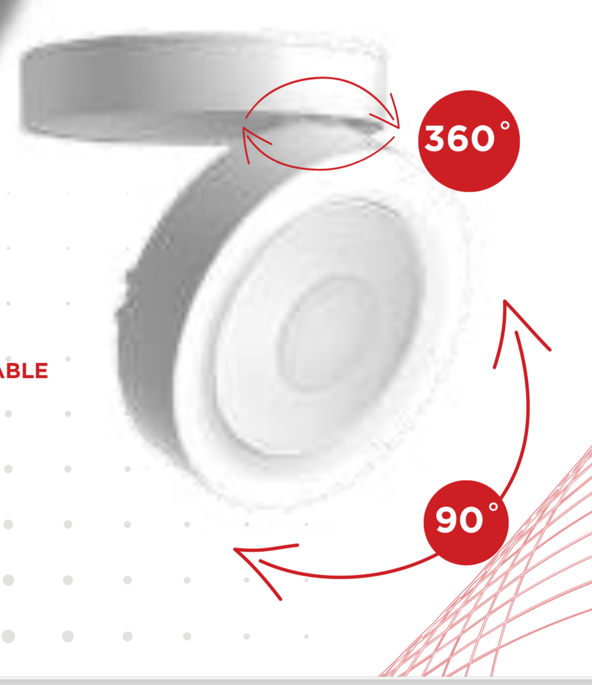 360 degree rotatable and 90 degree sleek adjustible spot light.