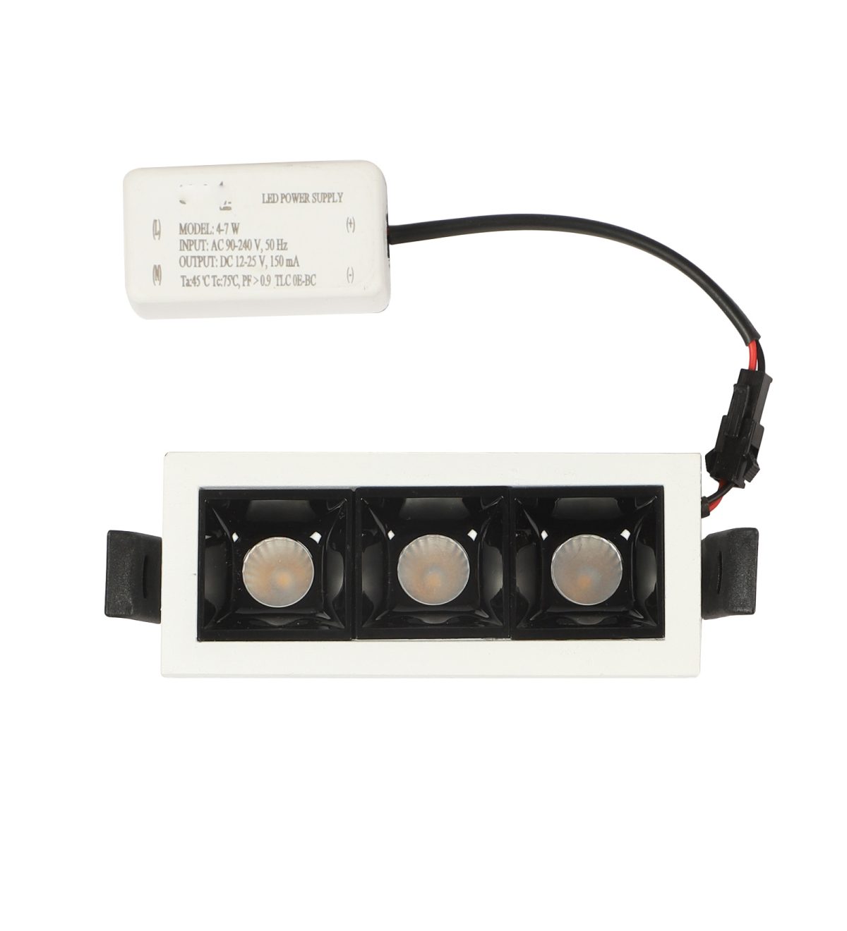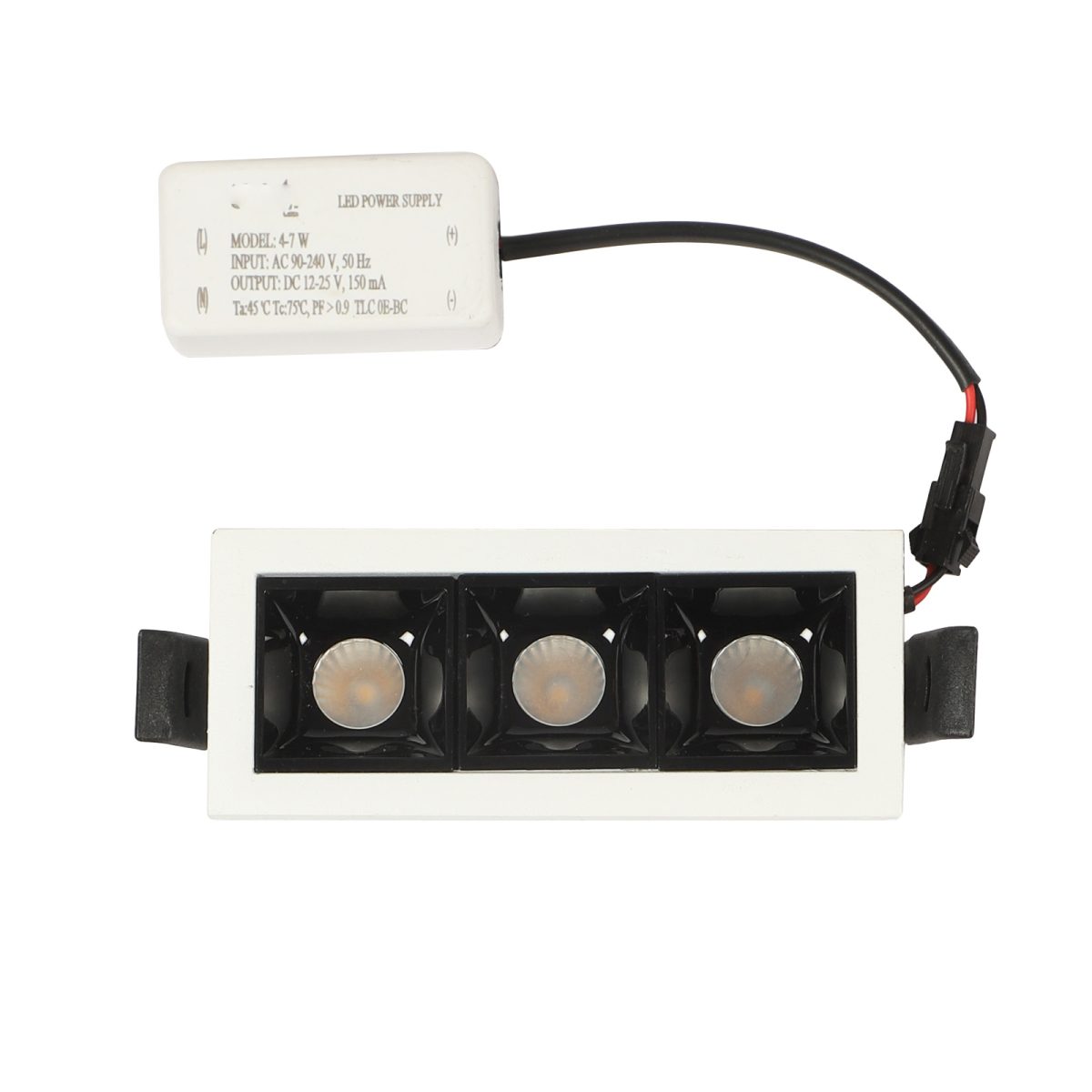 Aluminium die cast powder coated white finish 3 x 2 watt LED Linear down light with Bridgelux COB and Philips LED driver. Used in ultra modern spaces.