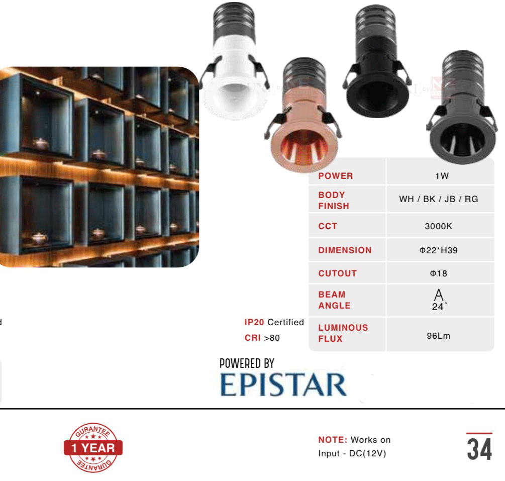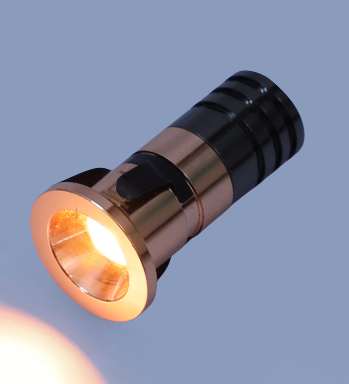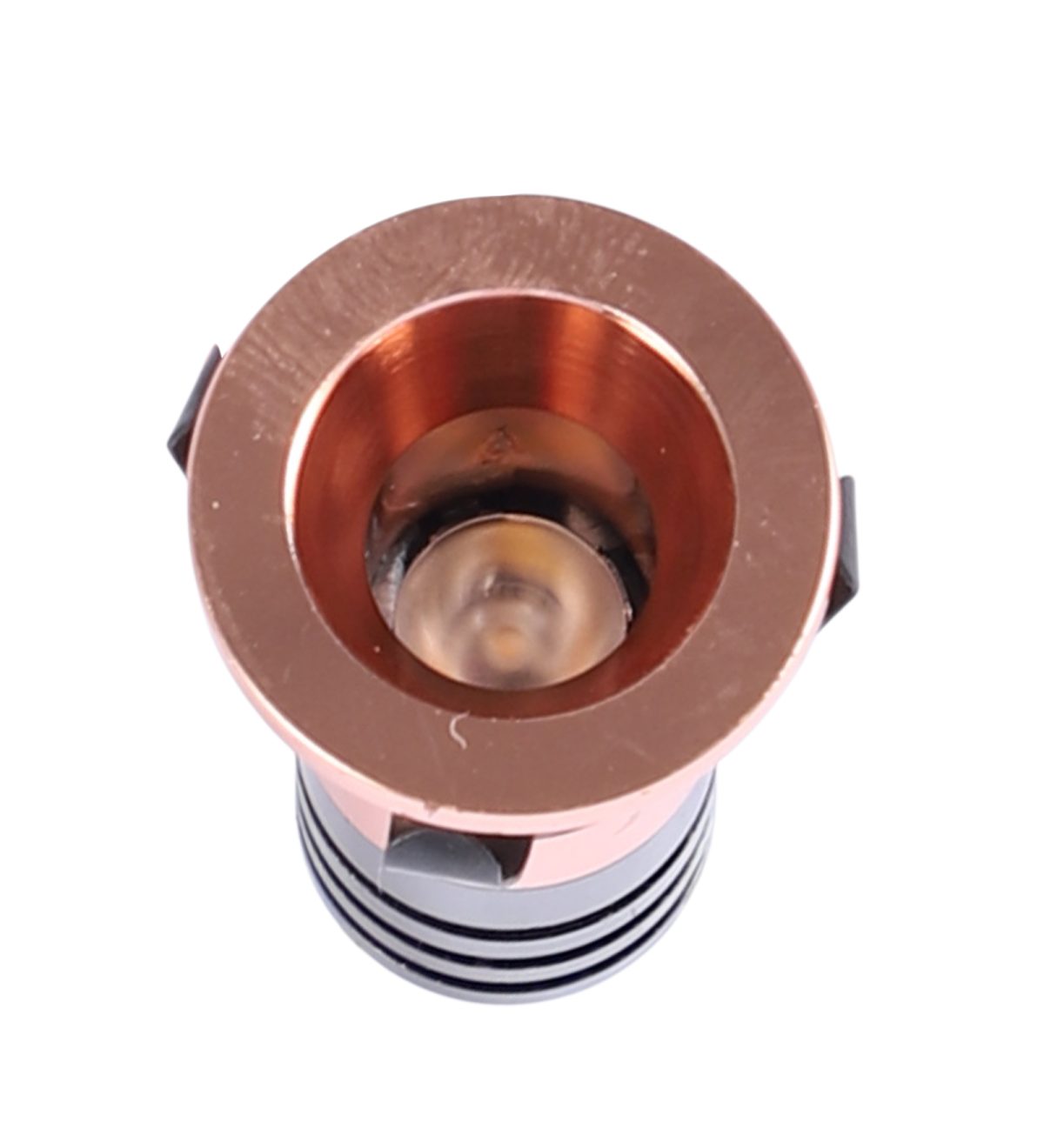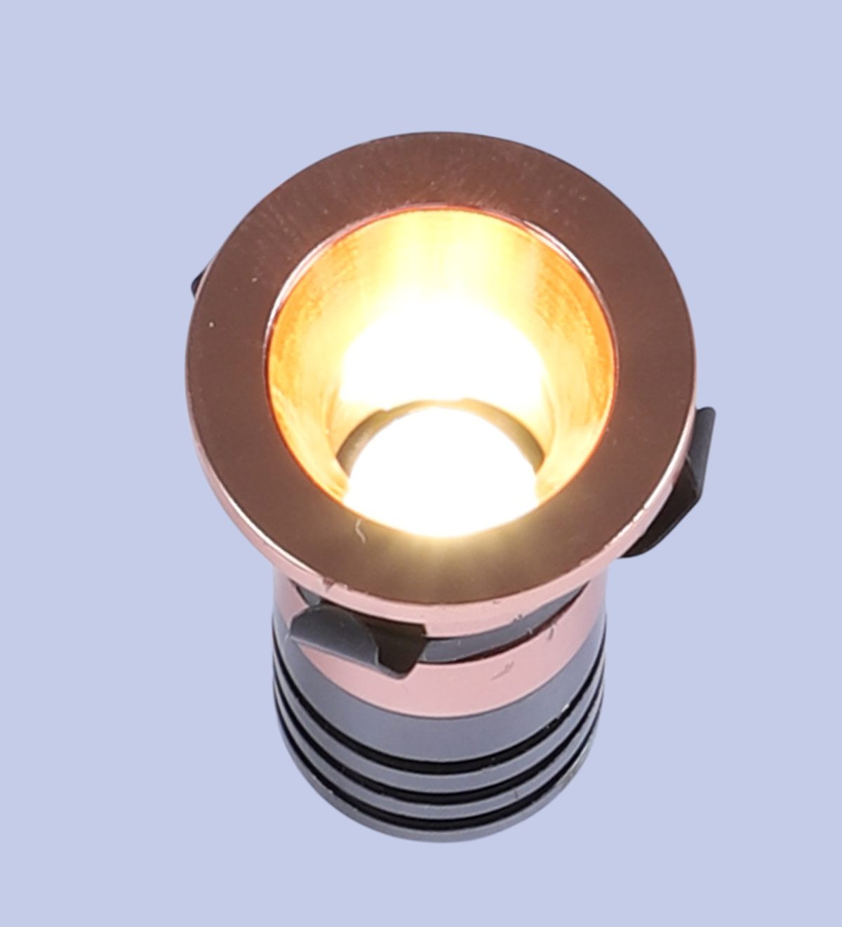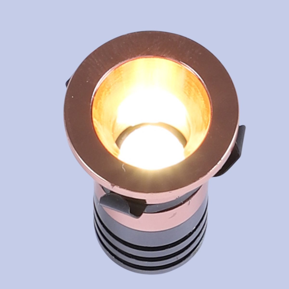 LEARC aluminium rose gold finish recess type 1 watt Epistar LED cabinet light without Driver. It is also used in cluster to create dot type lighting effect. Single Driver can be used for many light.
