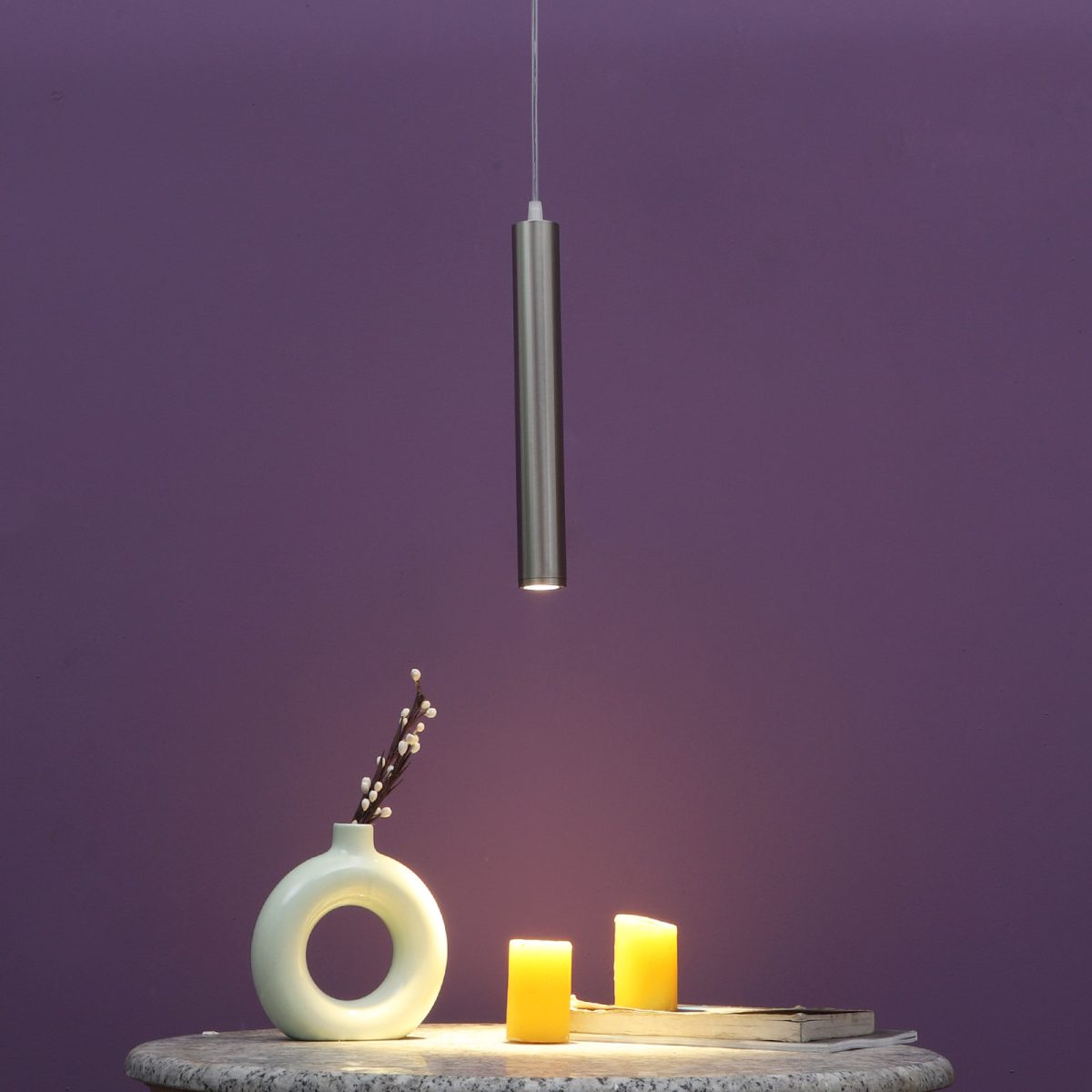 Satin Nickel, 12 watt LED hanging light having top branded LED and driver warm white (yellow) light output The suspension can be adjusted at time of installation to the desired height. Can be made available in a cluster of multiple quantities with round, square or rectangular base as per requirement . Application includes both residential and commercial premises wherever it matches with your interiors. Can be customized as per requirement in terms of finish, wattage, height, diameter.