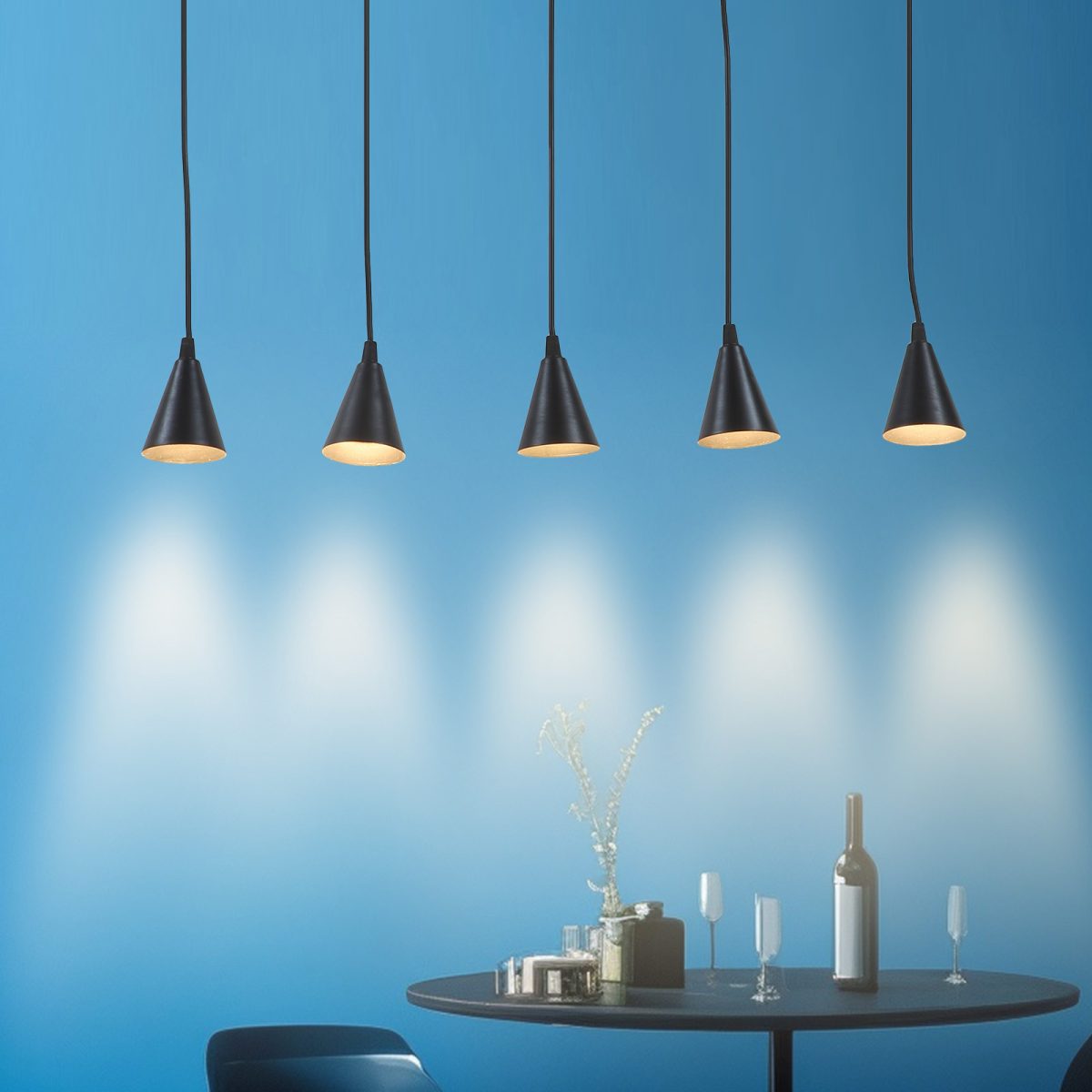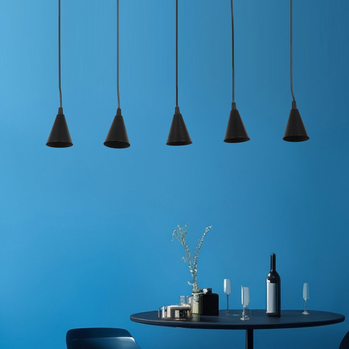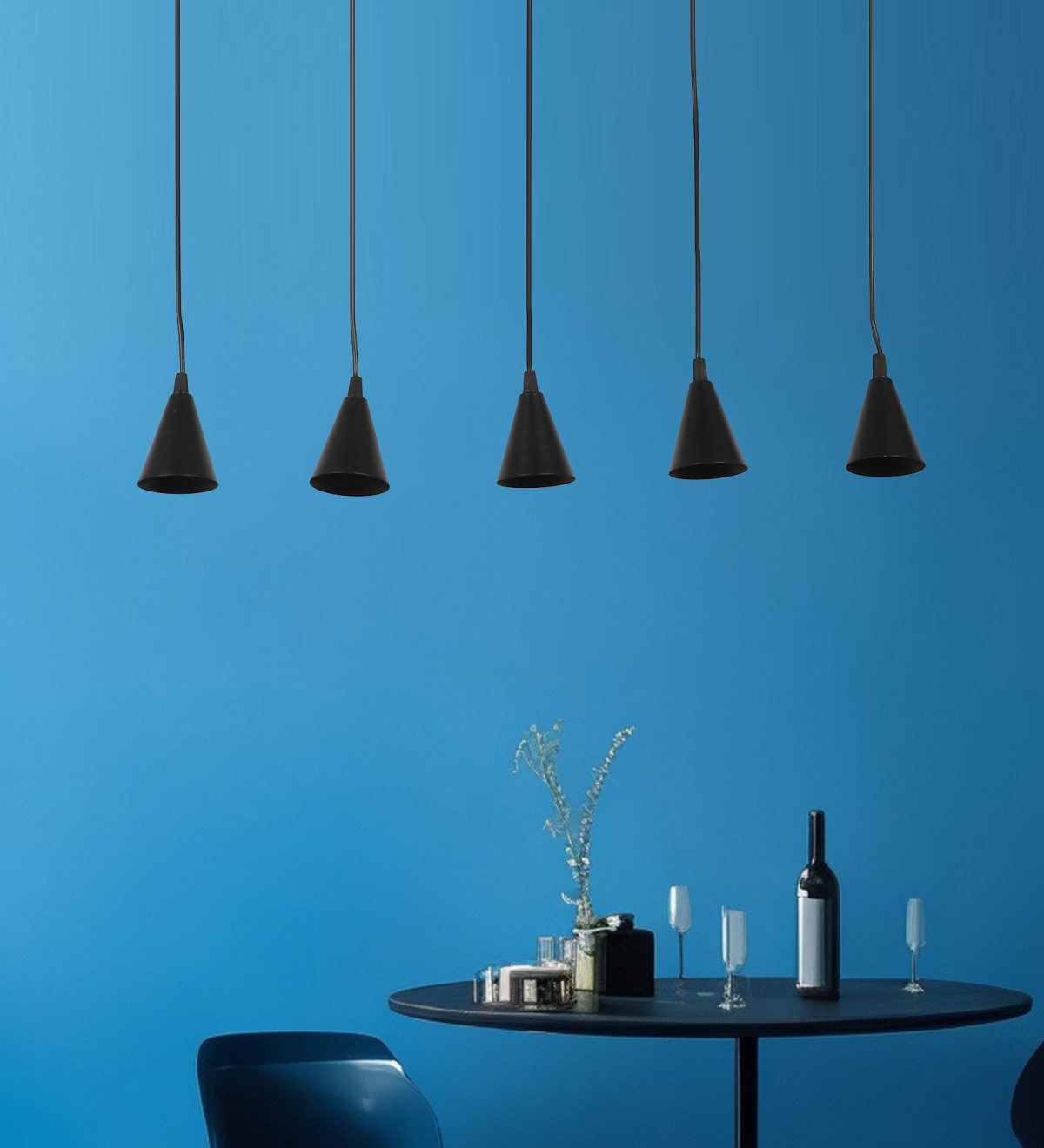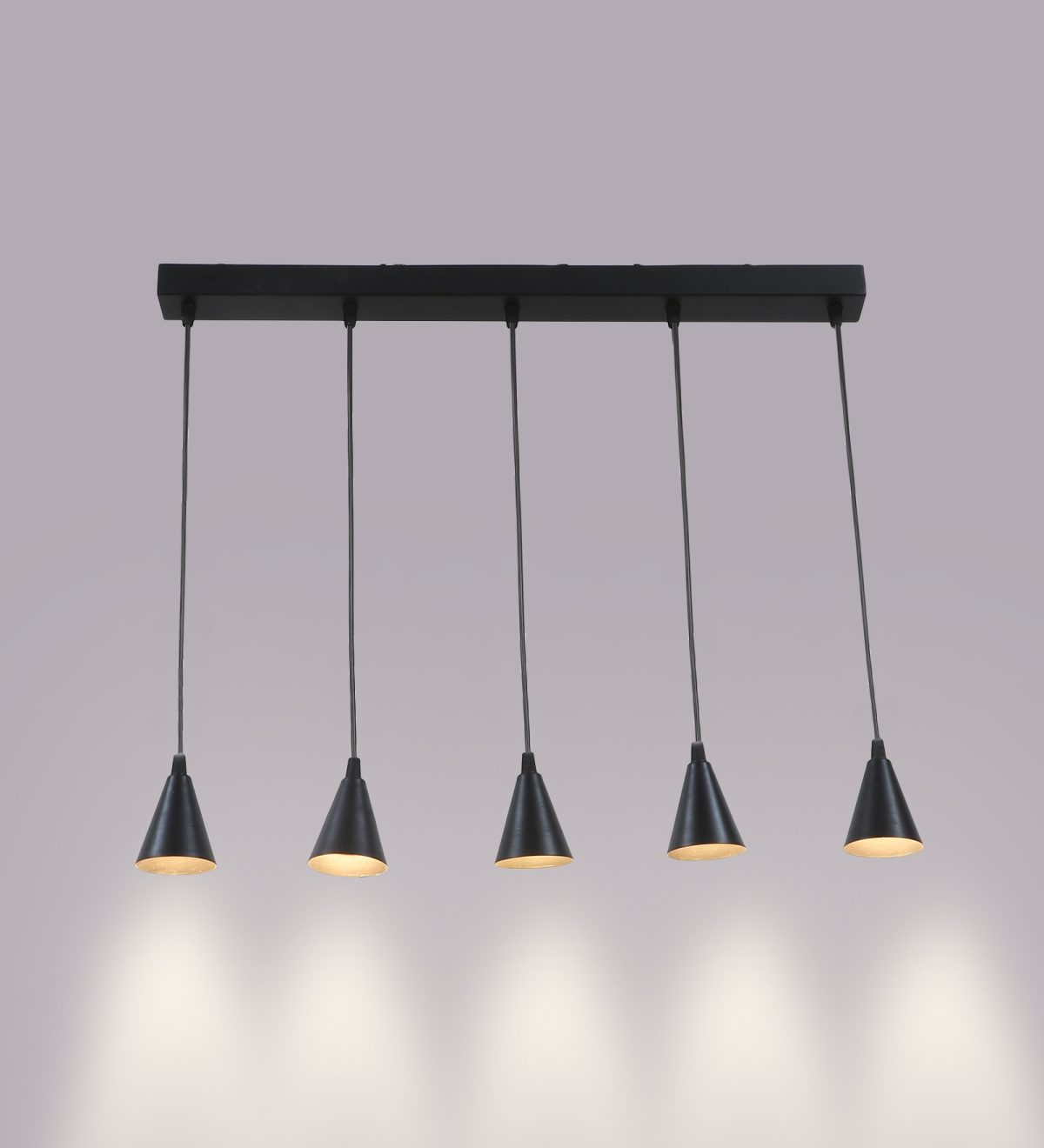 Exclusive black, modern, LED hanging light having high quality LED and branded LED driver having yellow light output. The suspension can be adjusted at time of installation to the desired height. Application includes both residential and comercial premises wherever it matches with your interiors. Looks great over the counter or dining table.