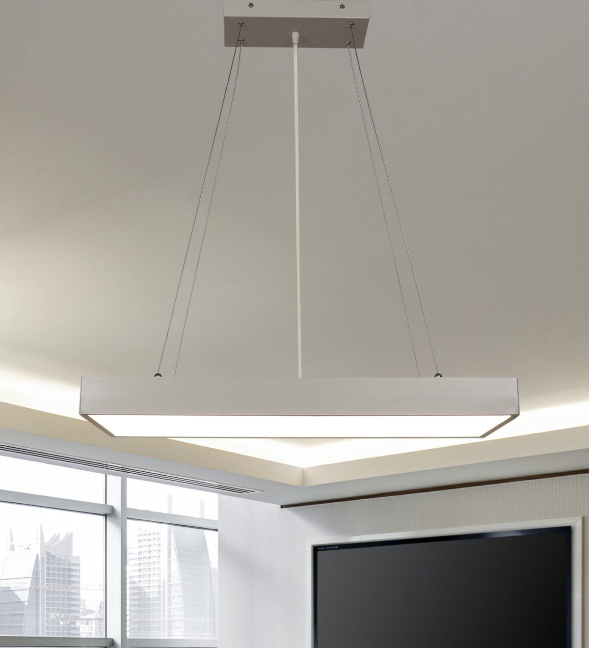 LEARC aluminium white 10 inch X 2 feet 40 watt Bridgelux LED rectangular Hanging Light with Philips LED driver.