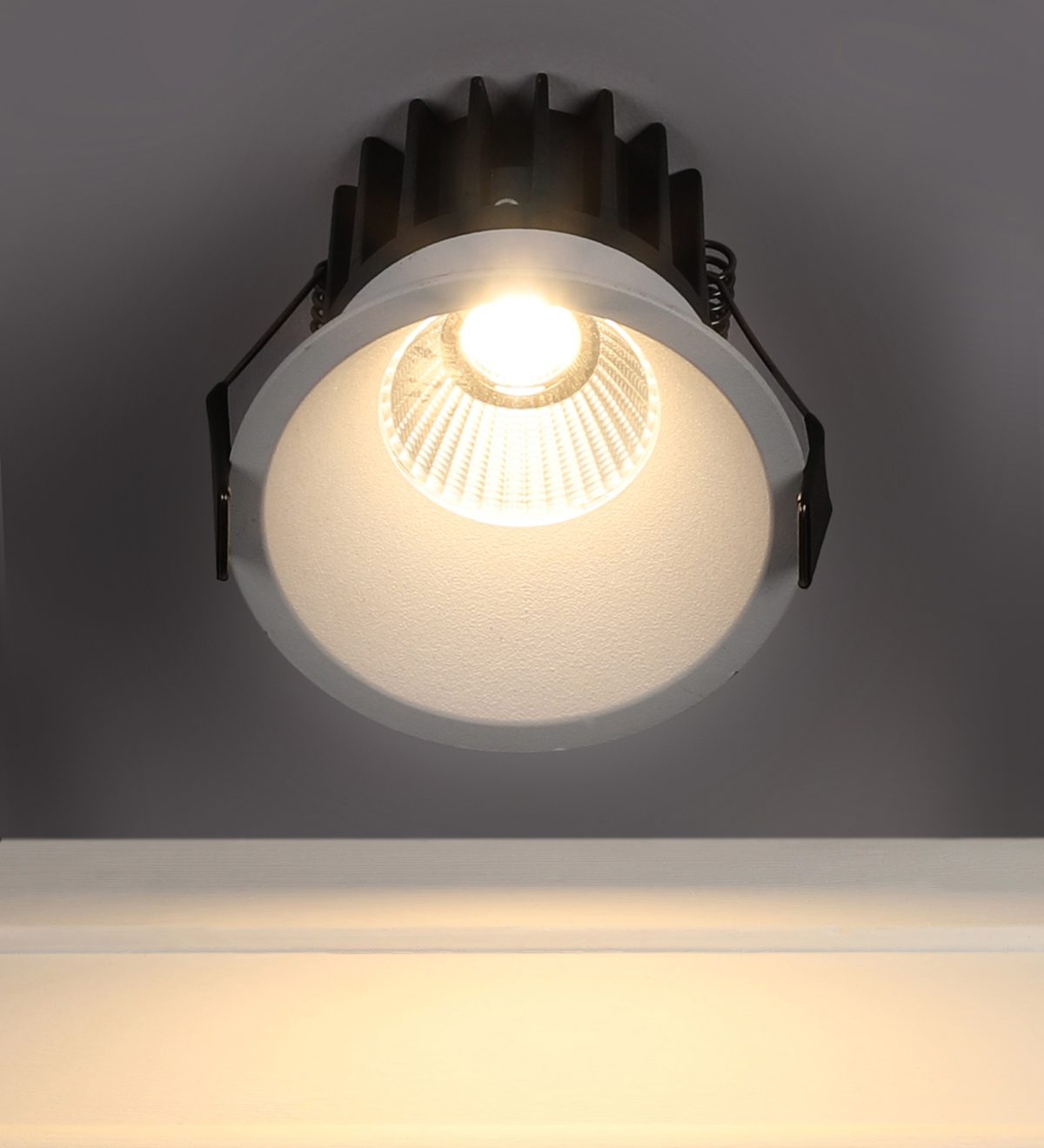 LEARC aluminium white 12 watt dimmable and tunable LED down light with Bridgelux COB and high quality LED driver. Tunable and Dimmable with Remote. Can be made compatible with Alexa and app based at additional cost.