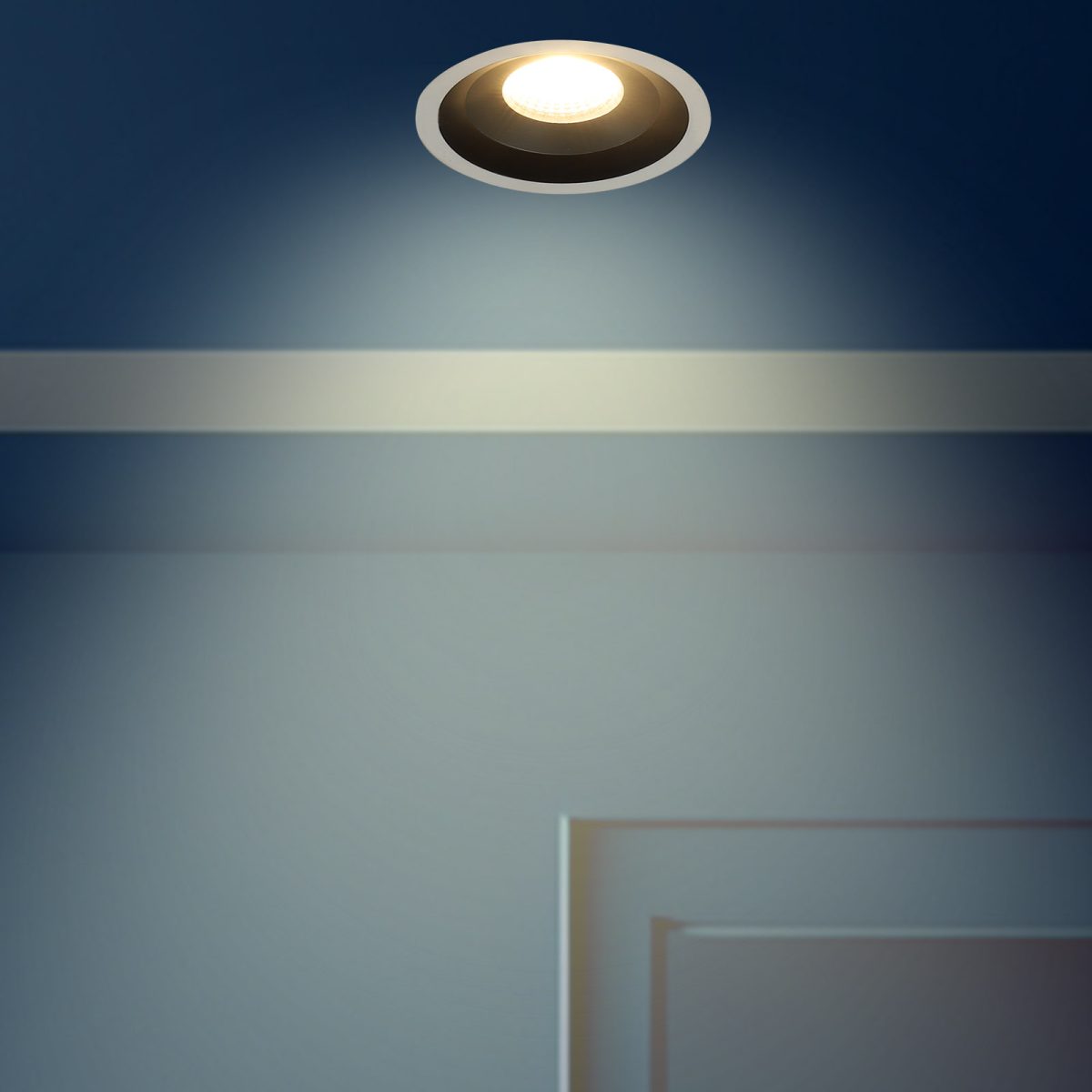 Powder coated white black finish, aluminium die cast round 18W LED COB concealed ceiling light with top branded Bridgelux LED and high quality LED driver. Application includes both indoor and outdoor ceilings. Available in 3000K, 4000K and 6000K ie warm white, nuetral white and white light output.