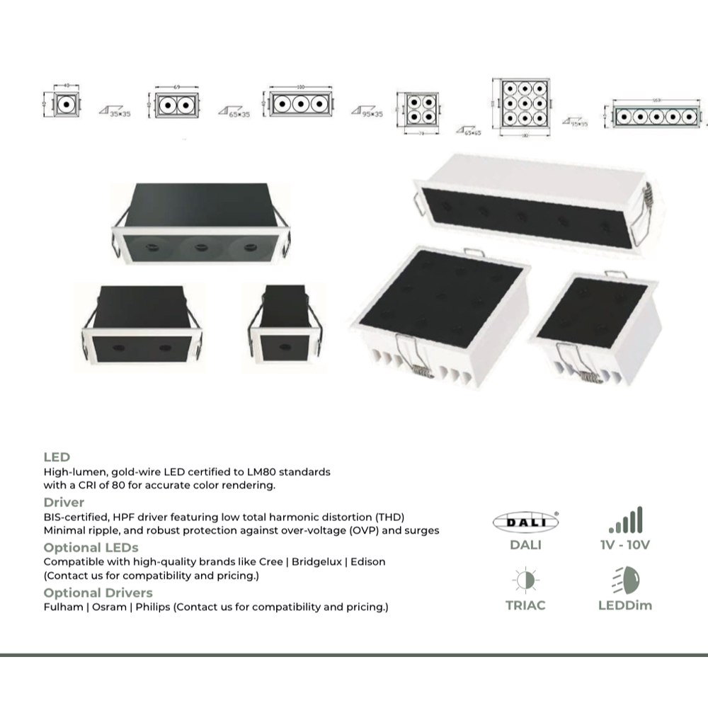 LEARC aluminium white black finish 2X3 watt recessed linear light with top branded LED and Driver.