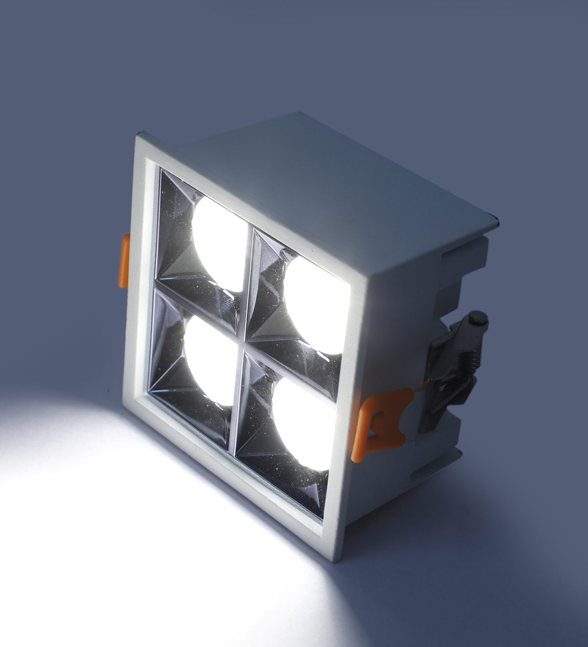 LEARC aluminium white finish 4 x 4 watt anti glare square LED Linear down light with Bridgelux COB and Fulham LED driver.