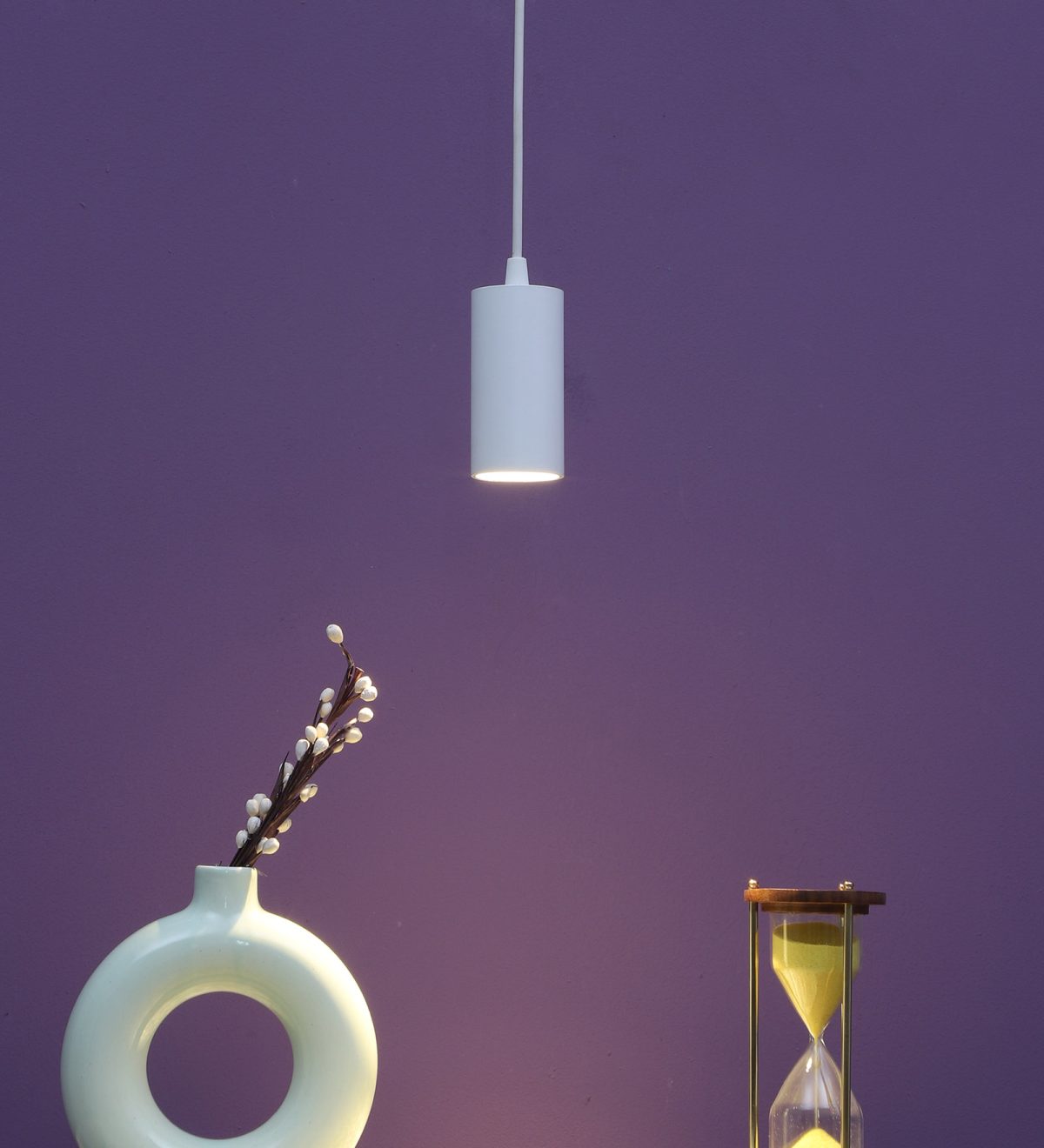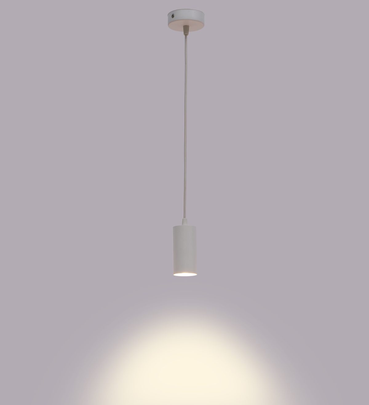 White modern, round, 6 watt single LED hanging light having high quality LED and driver. The suspension can be adjusted at time of installation to the desired height. Application includes both residential and commercial premises wherever it matches with your interiors. Can be customised as per requirement in terms of body colour, colour of light output and wattage. Can be made into a cluster of multiple quantities as per requirement.