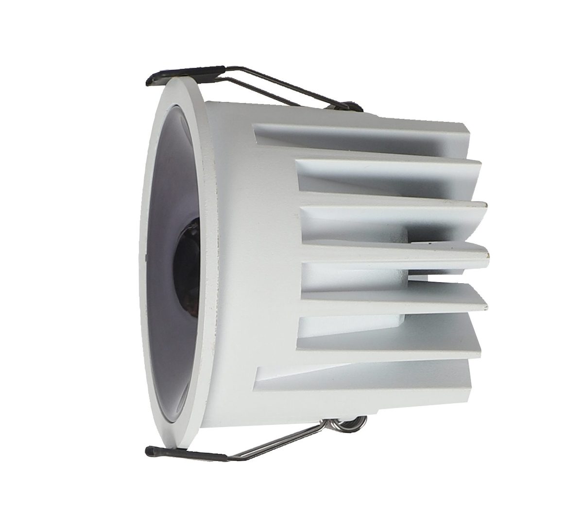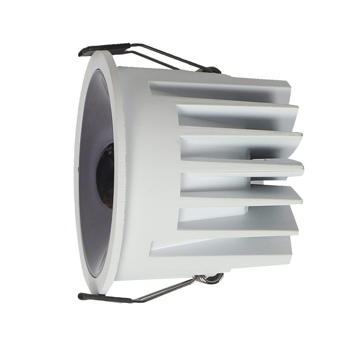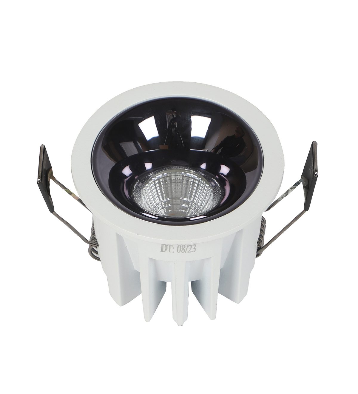 Powder coated white finish with glossy black reflector, aluminium die cast round 7W LED COB concealed ceiling light with top branded Bridgelux LED and Philips or equivalent LED driver. Application includes both indoor and outdoor ceilings. Available in 3000K, 4000K and 6000K ie warm white, nuetral white and white light output. Also available in 5000k colour temperature and colour changing 3 in 1 options.