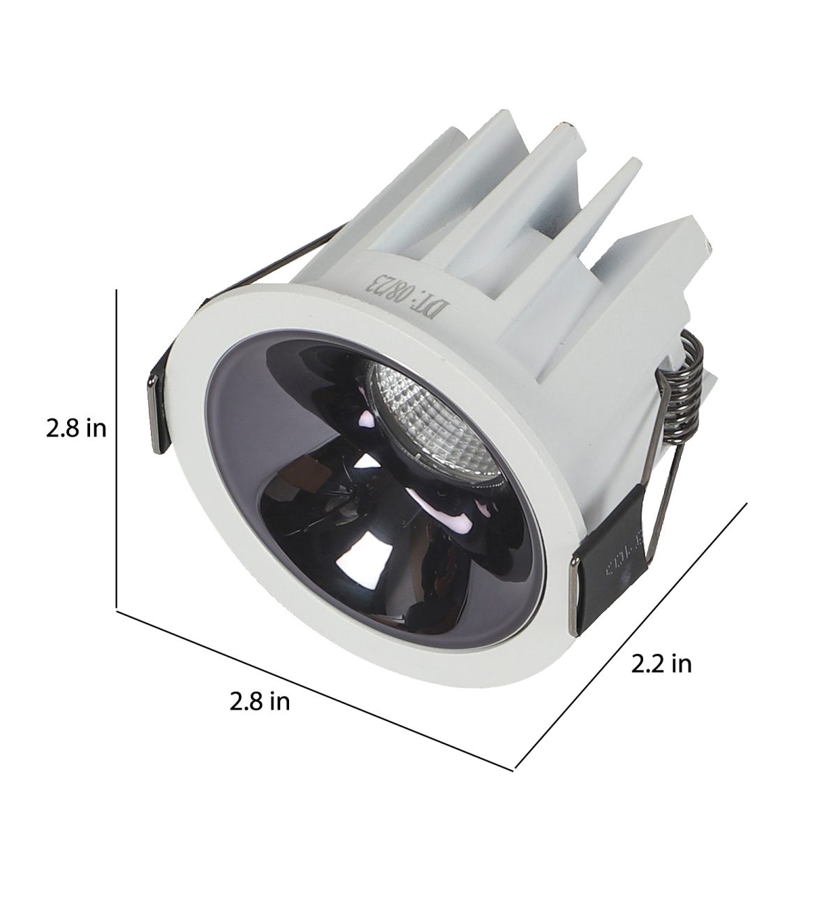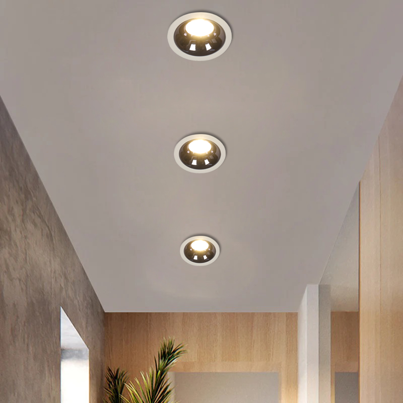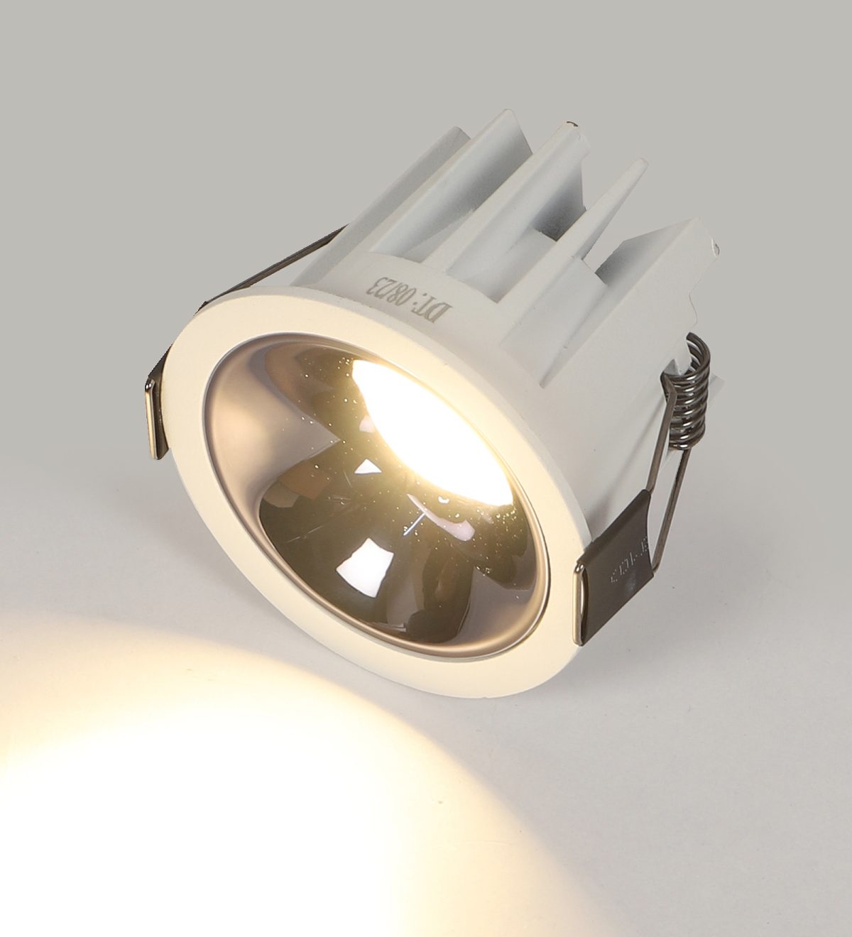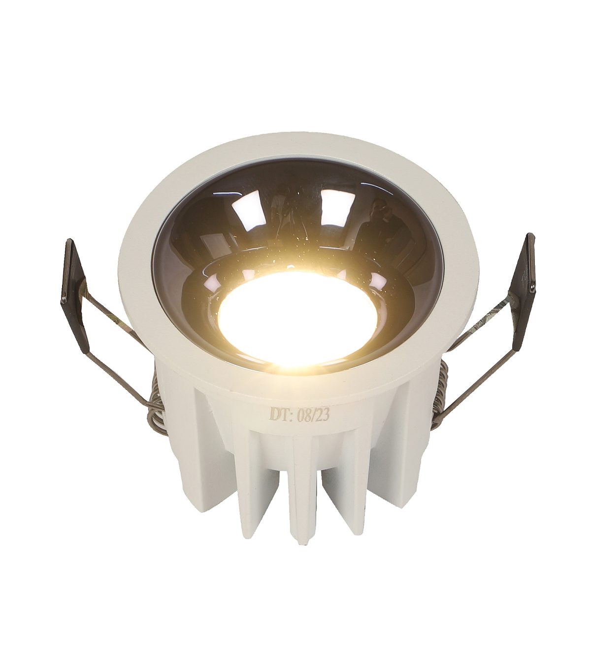 Powder coated white finish with glossy black reflector, aluminium die cast round 7W LED COB concealed ceiling light with top branded Bridgelux LED and Philips or equivalent LED driver. Application includes both indoor and outdoor ceilings. Available in 3000K, 4000K and 6000K ie warm white, nuetral white and white light output. Also available in 5000k colour temperature and colour changing 3 in 1 options.