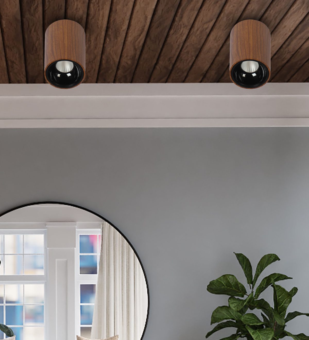LEARC aluminium wood finish black reflector, 12 Watt Bridgelux LED and high quality driver LED Ceiling Surface cylinder TR1705
