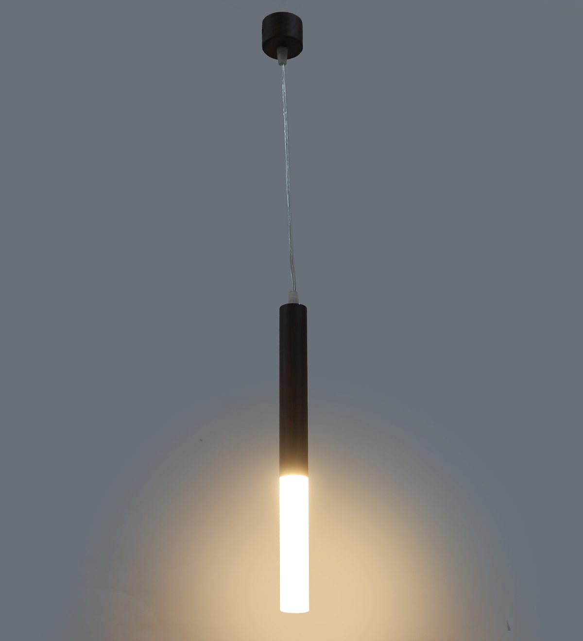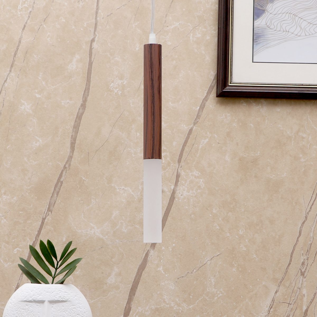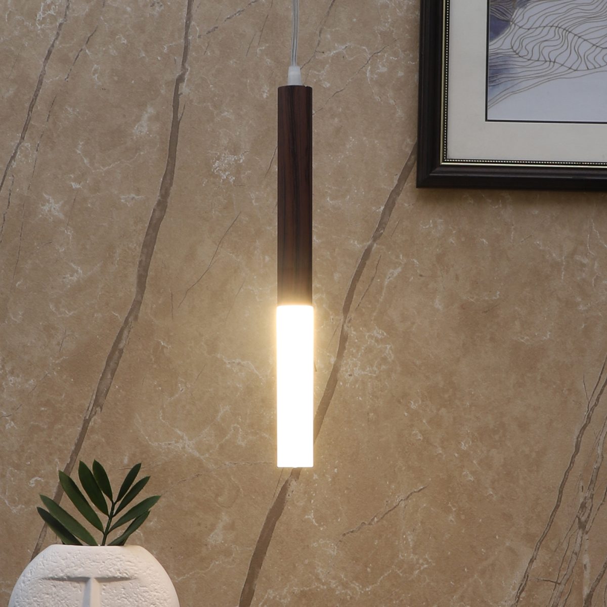 Brown wood finish, sleek, modern, 6 watt LED hanging light having top branded LED and driver warm white (yellow) light output The suspension can be adjusted at time of installation to the desired height. Can be made available in a cluster of multiple quantities with round, square or rectangular base as per requirement . Application includes both residential and comercial premises wherever it matches with your interiors. Can be customised as per requirement in terms of finish, wattage, height, diameter.