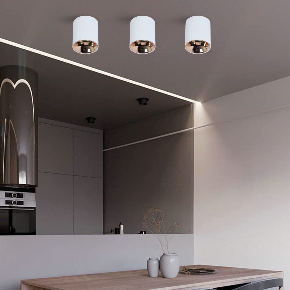 LEARC ANTI GLARE ALUMINIUM WHITE, ROSE GOLD REFLECTOR, 12 WATT COLOUR CHANGING 3 IN 1 CEILING CYLINDER TR1934-3C