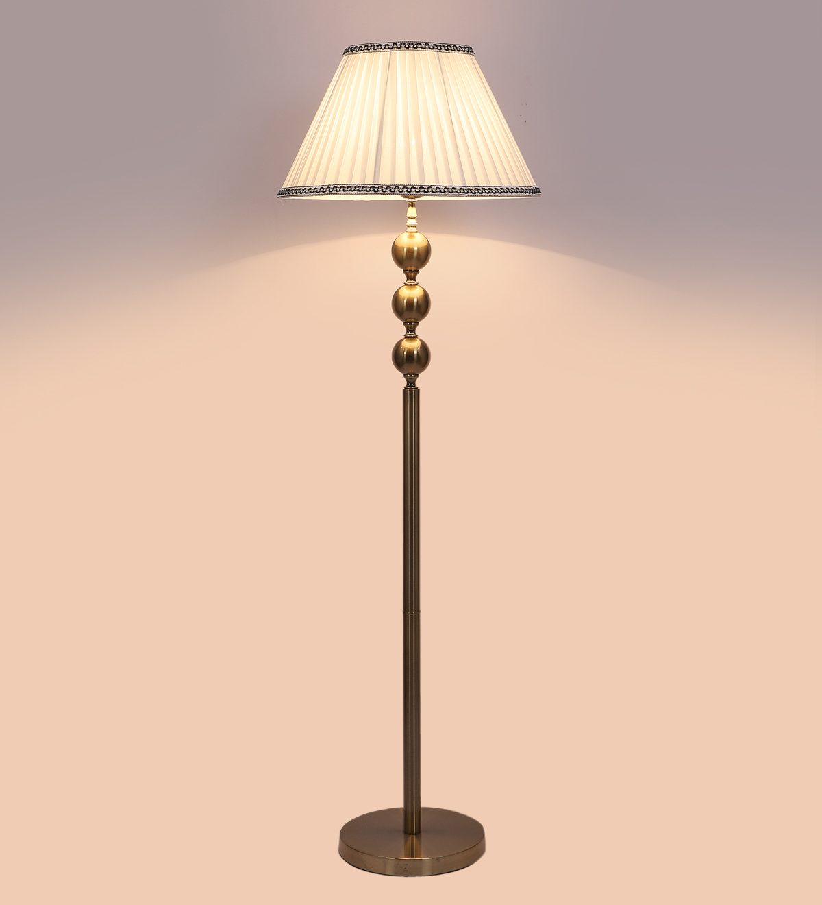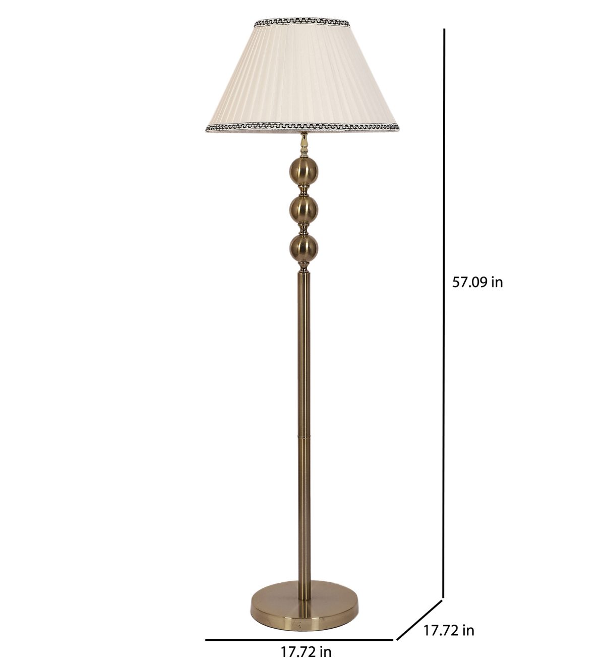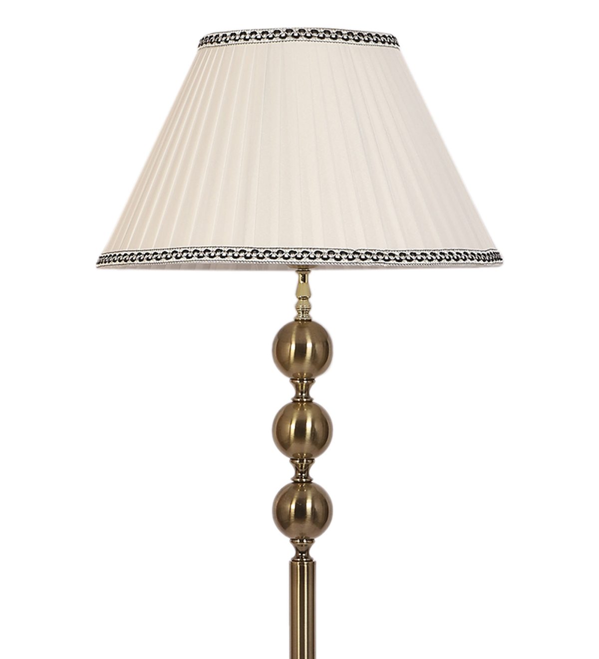 LEARC antique brass finish floor lamp with cream shade. LAMP NOT INCLUDED.