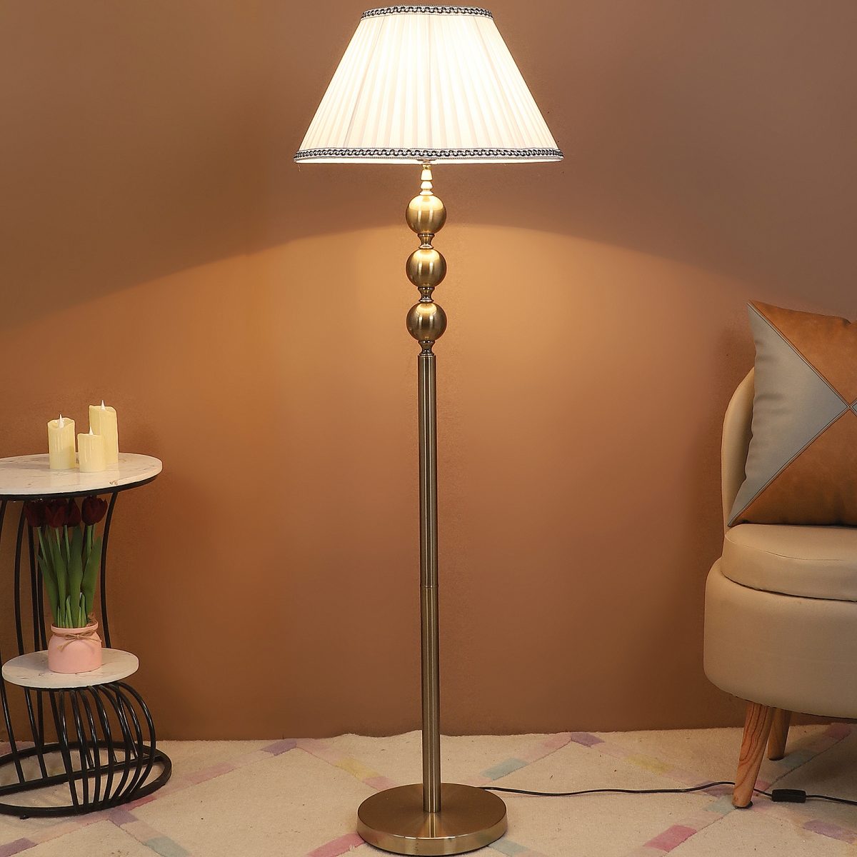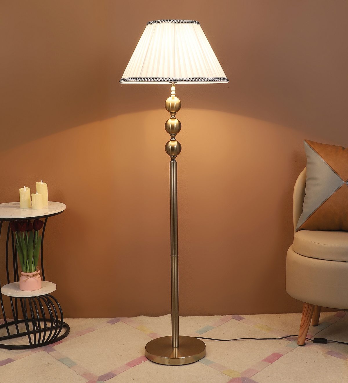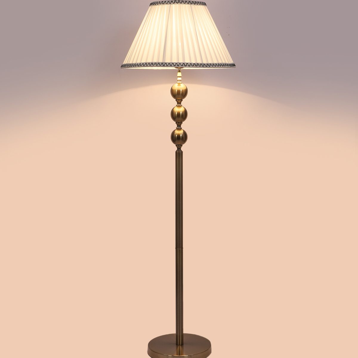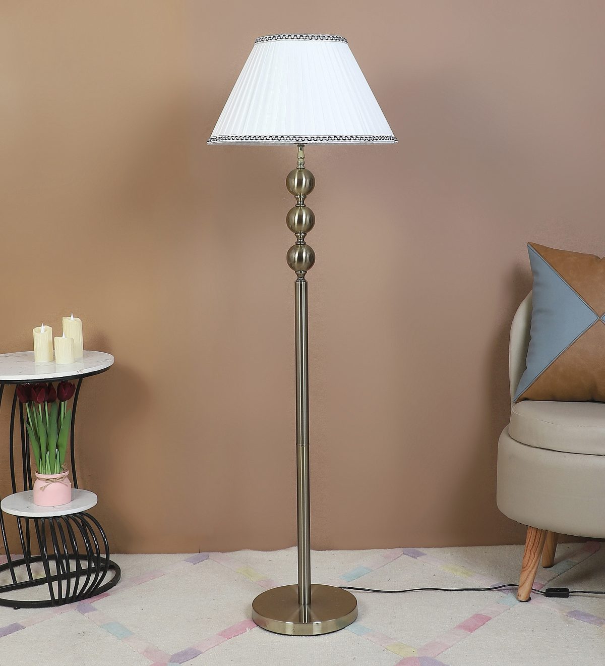 LEARC antique brass finish floor lamp with cream shade. LAMP NOT INCLUDED.
