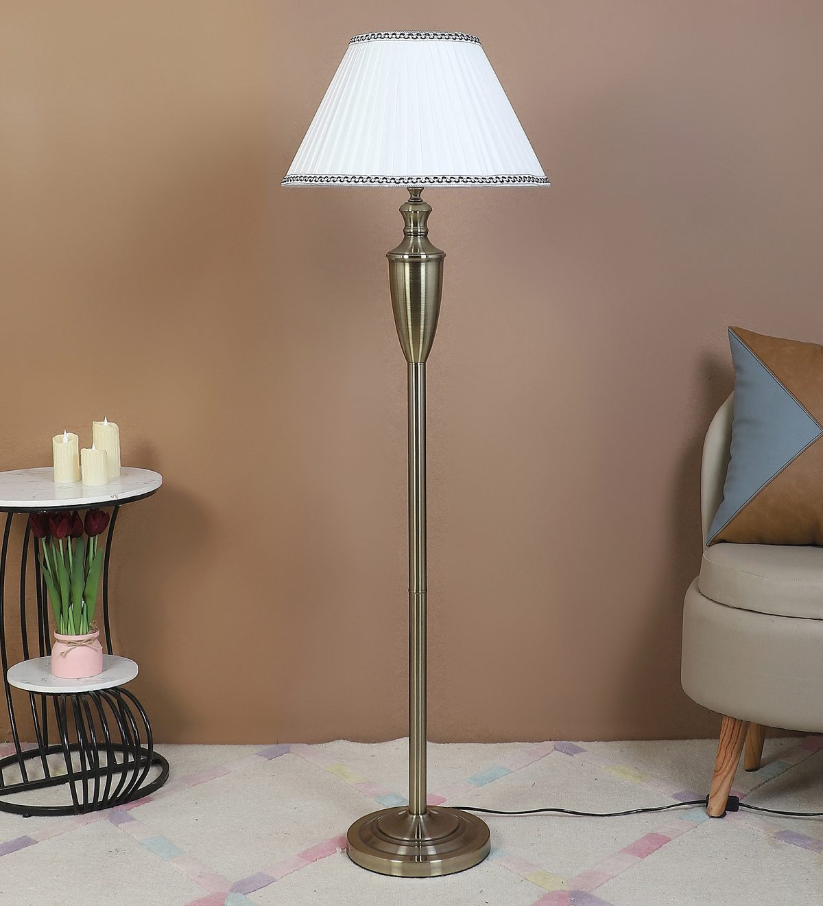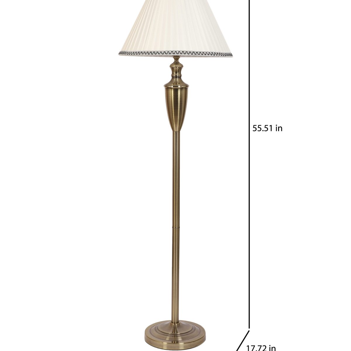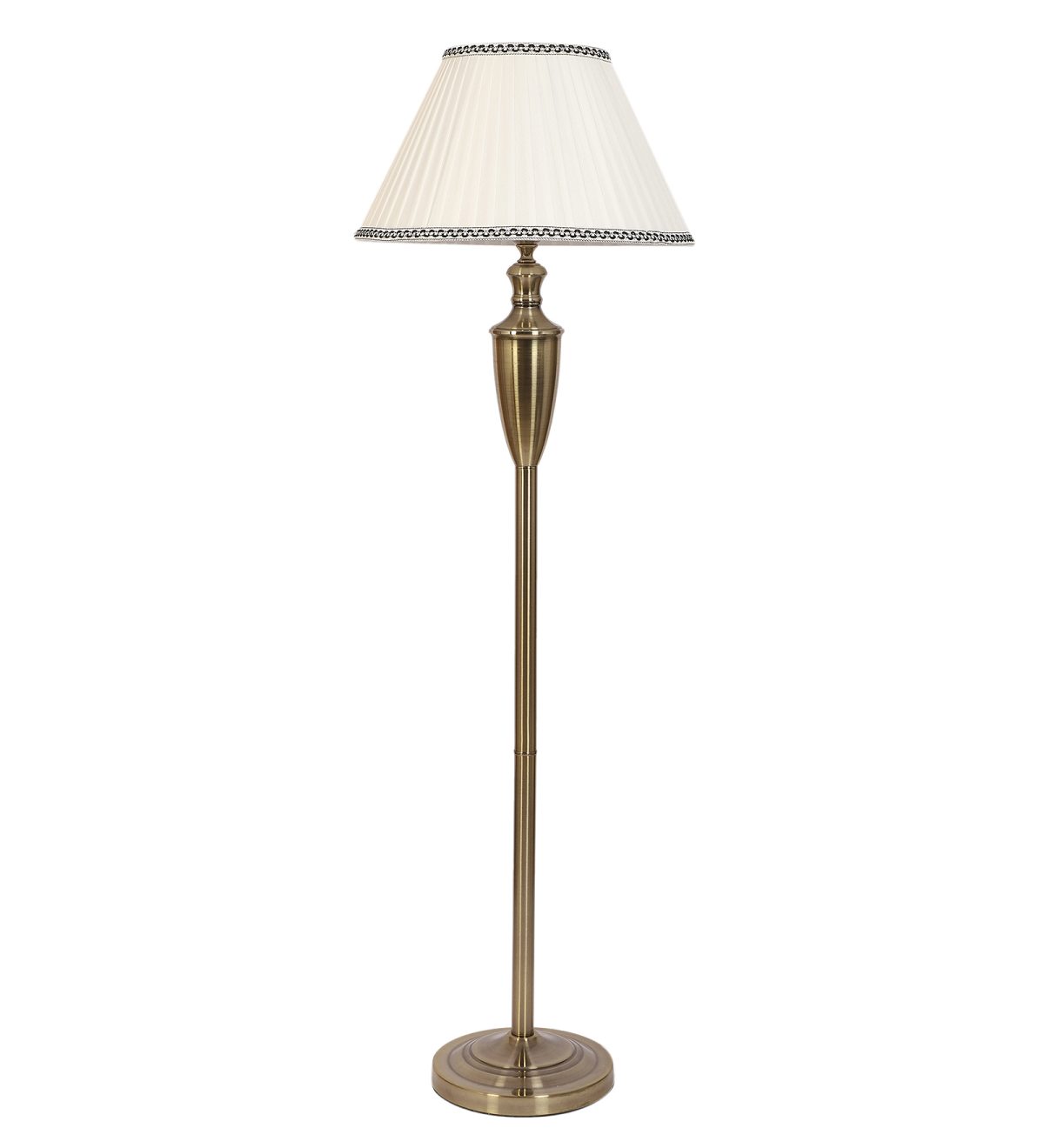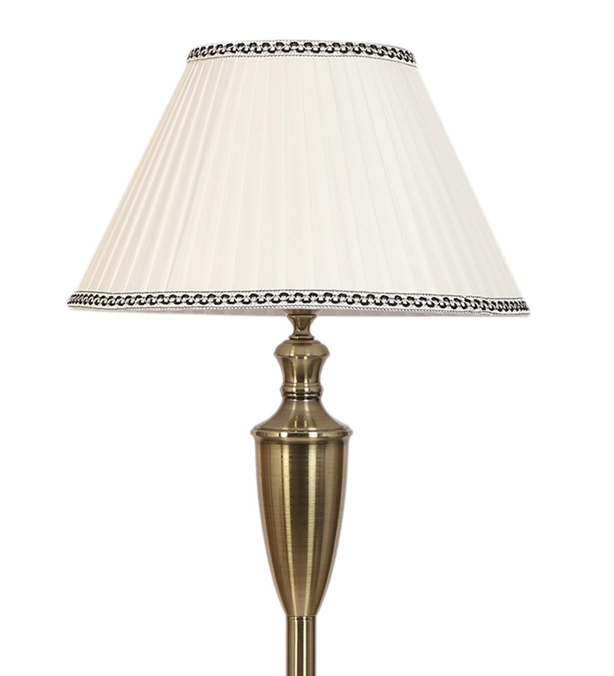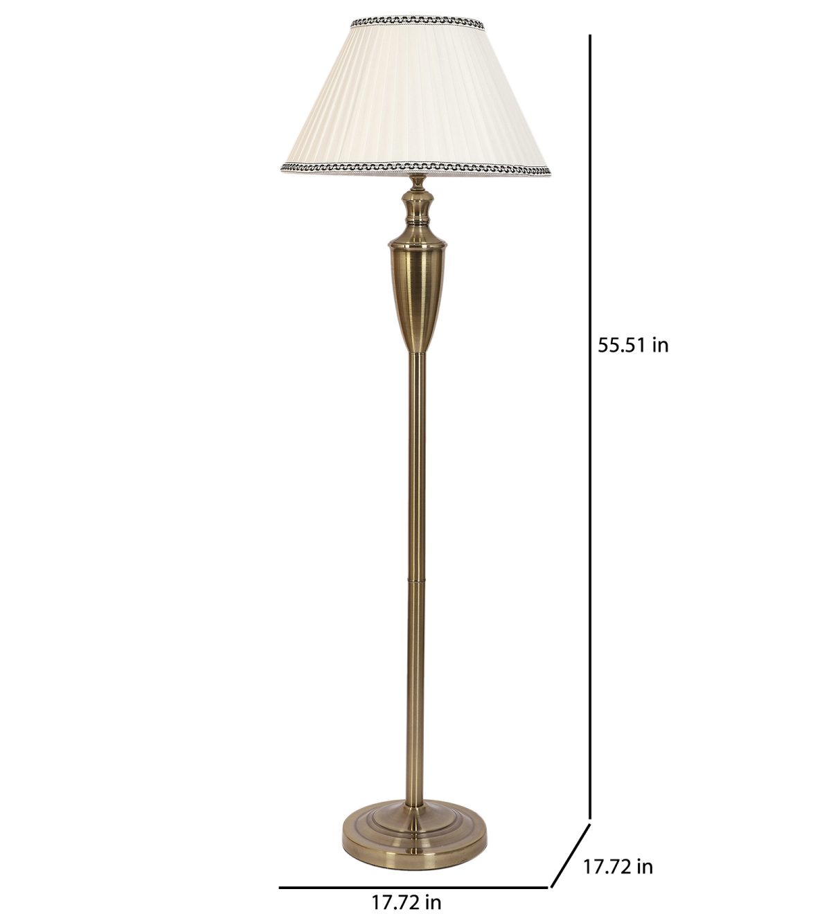 LEARC antique brass finish floor lamp with cream shade. LAMP NOT INCLUDED.