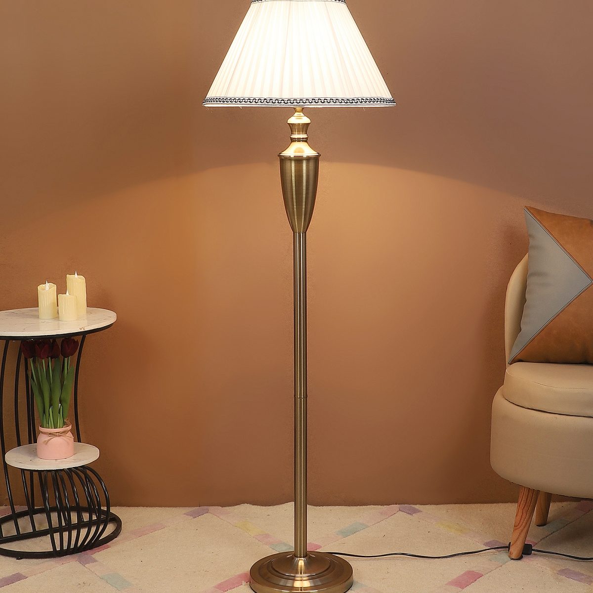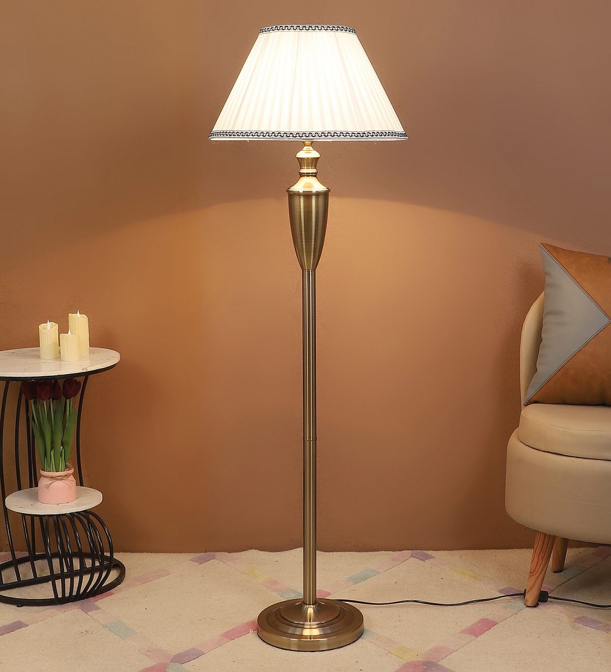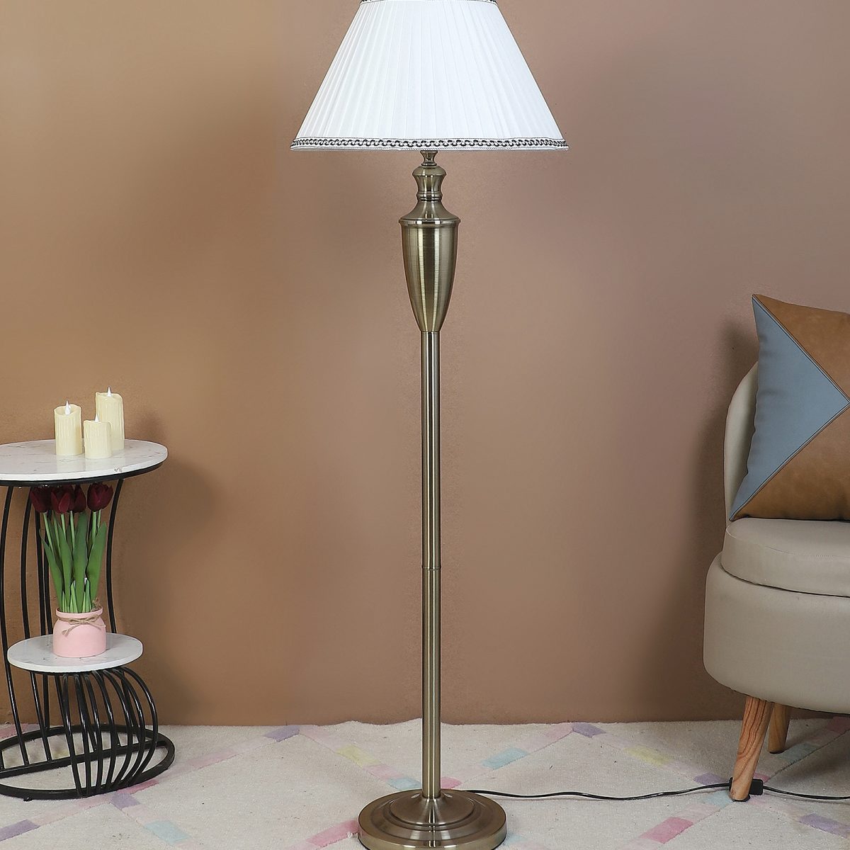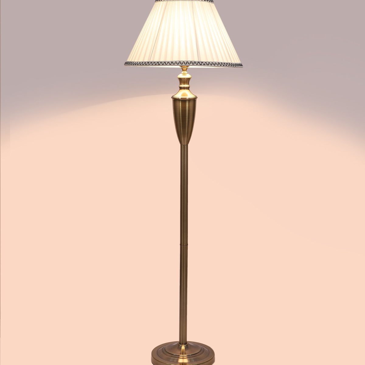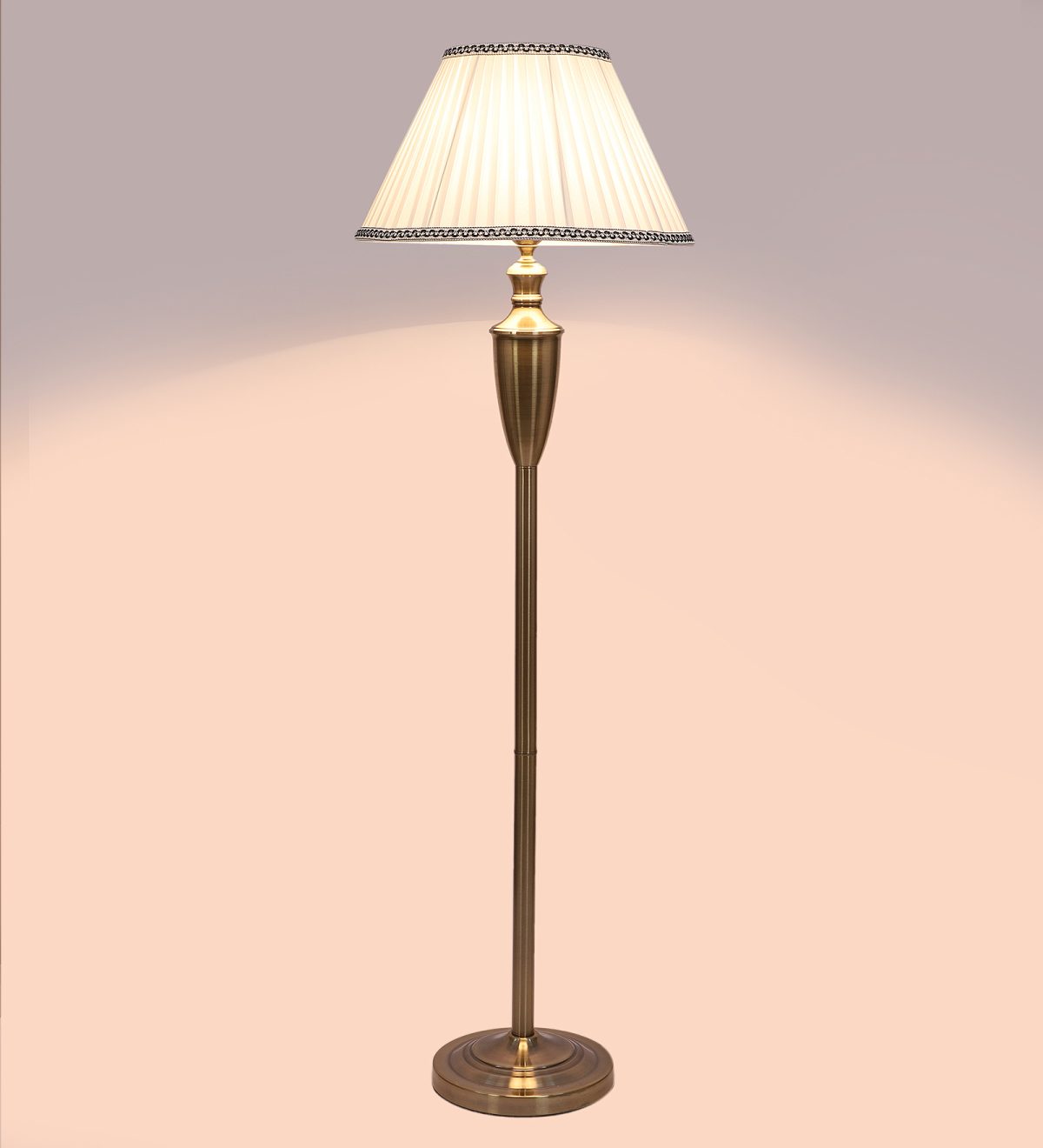 LEARC antique brass finish floor lamp with cream shade. LAMP NOT INCLUDED.