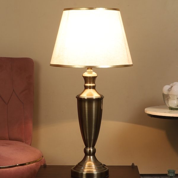LEARC antique brass finish table lamp with cream textured shade having golden border TL5020-B
