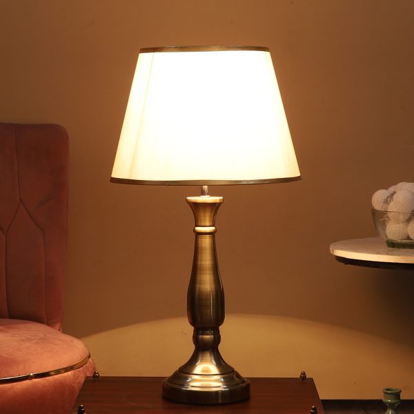 LEARC antique brass finish table lamp with light gold shade having golden border TL5014-D