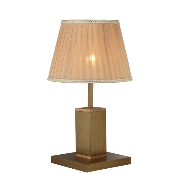 LEARC antique brass finish table lamp with cream textured shade having golden border TL5014-B