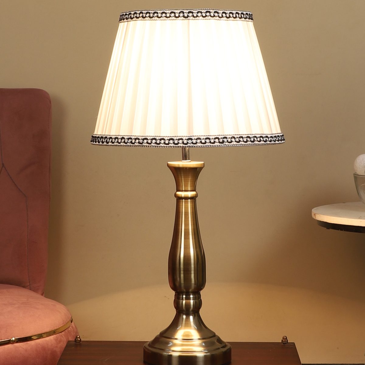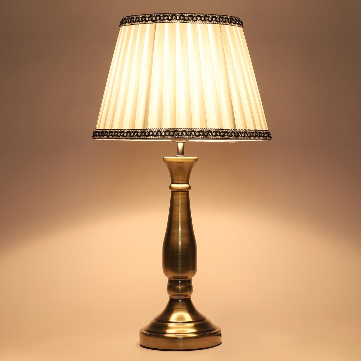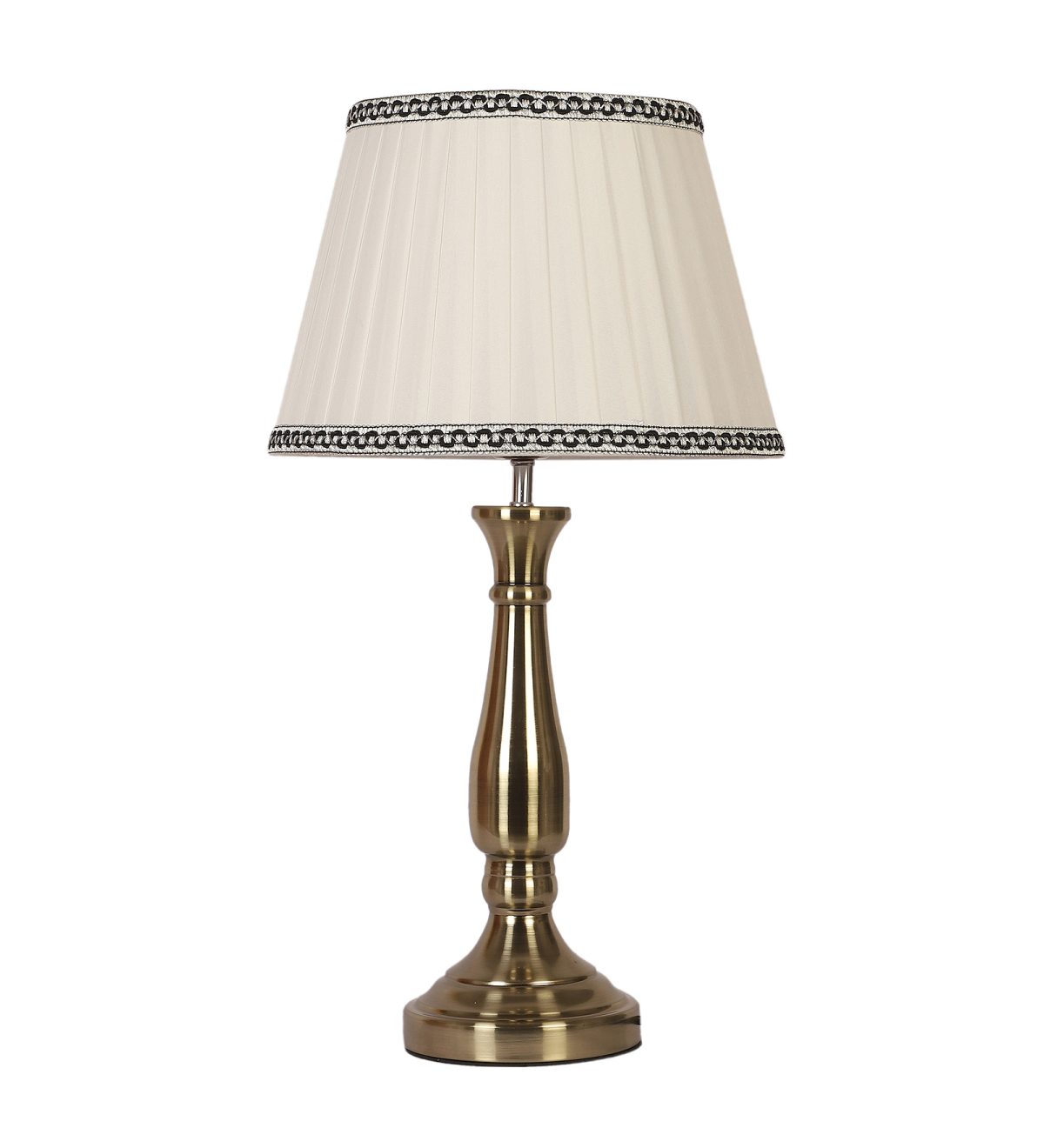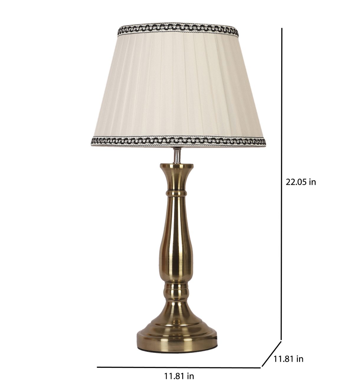 LEARC antique brass finish table lamp with cream shade. LAMP NOT INCLUDED.
