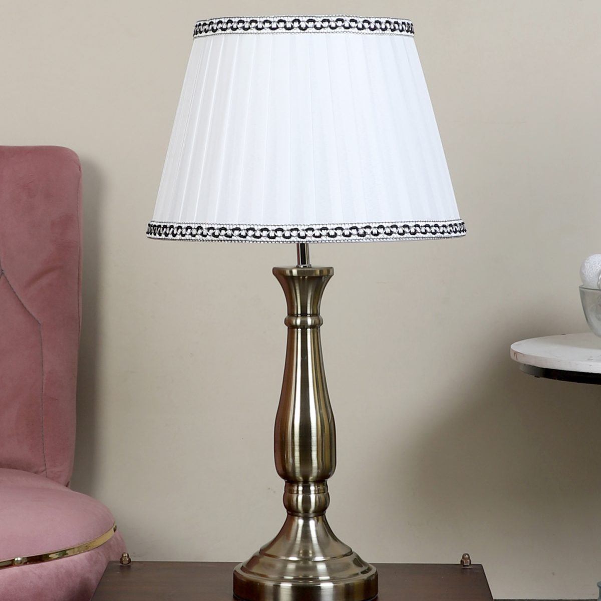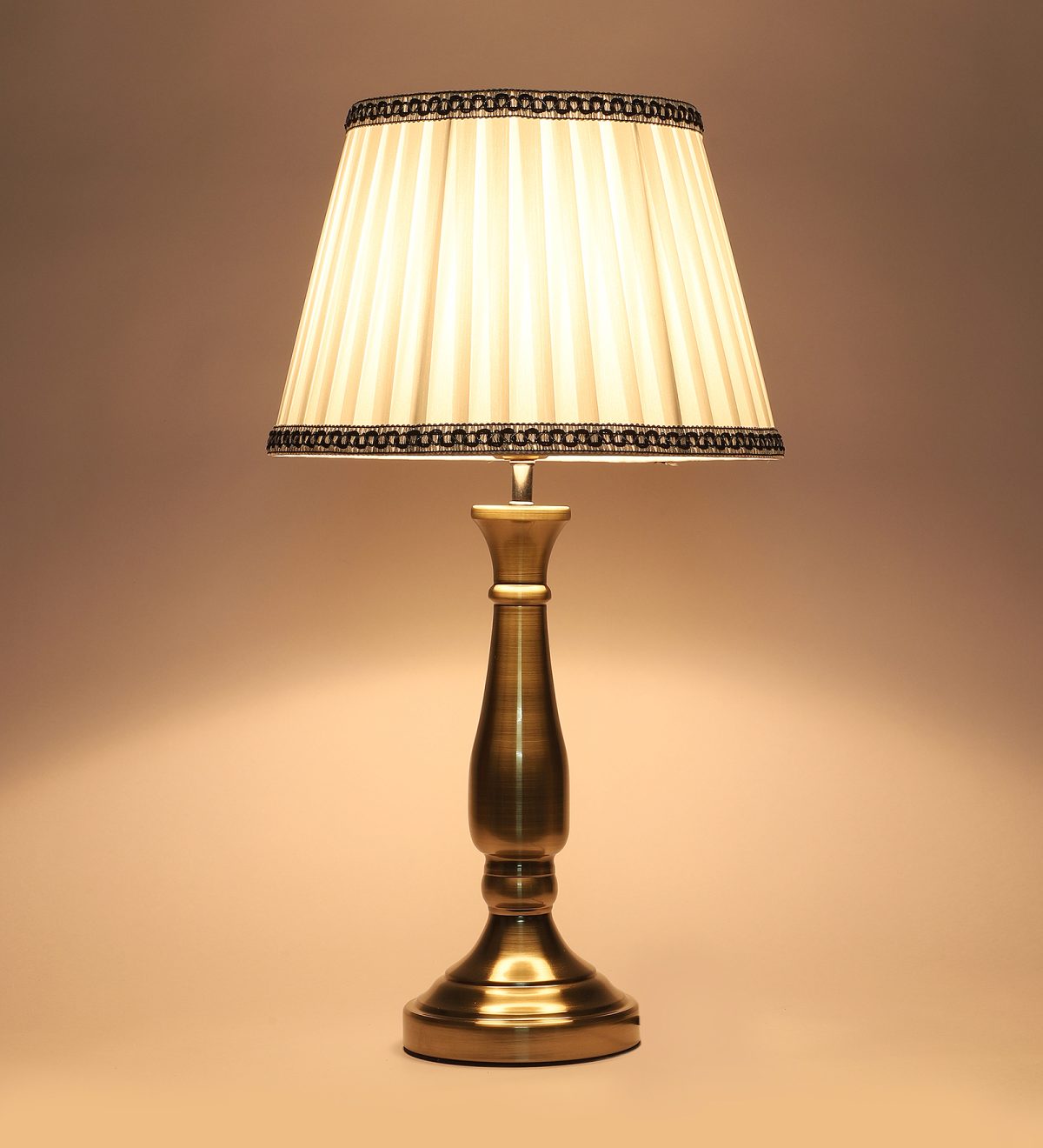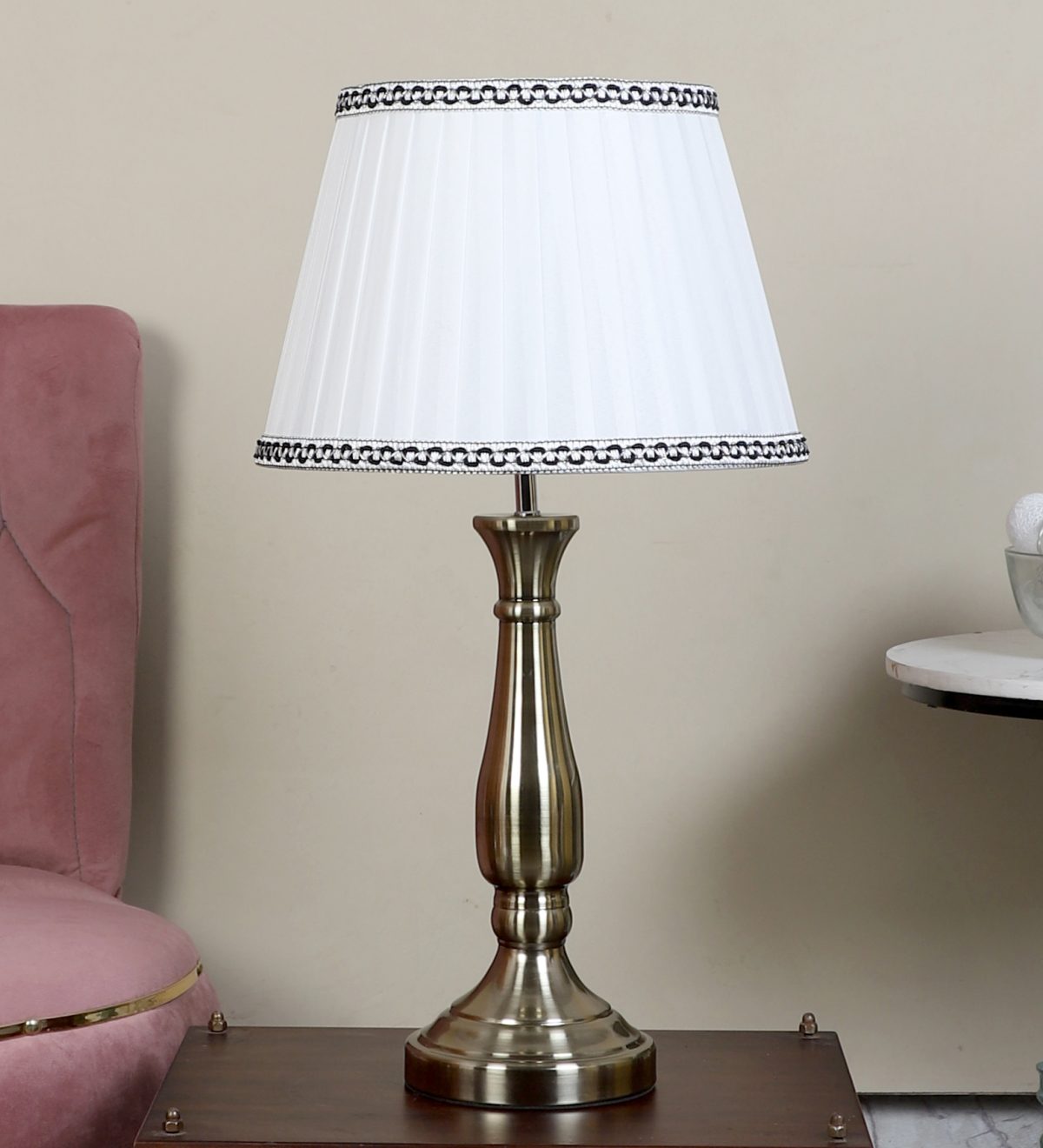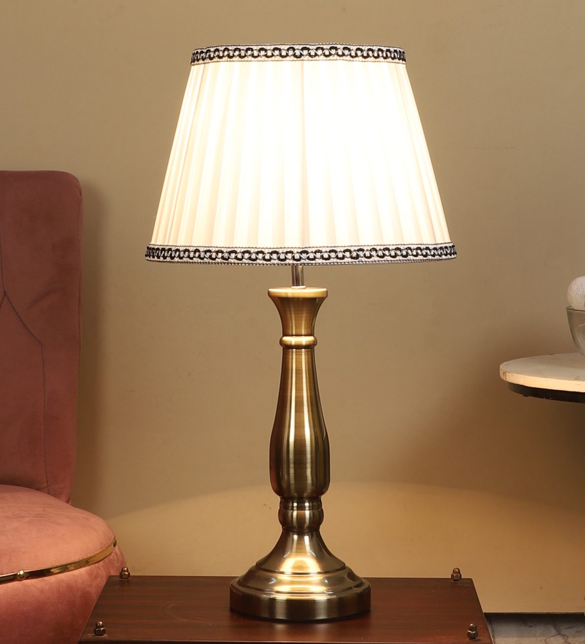 LEARC antique brass finish table lamp with cream shade. LAMP NOT INCLUDED.