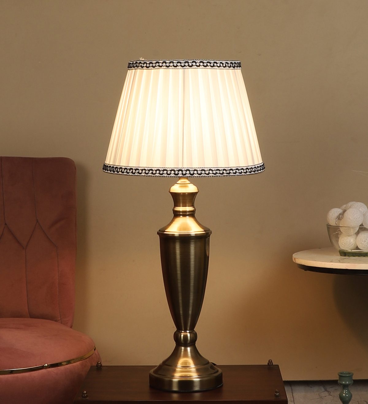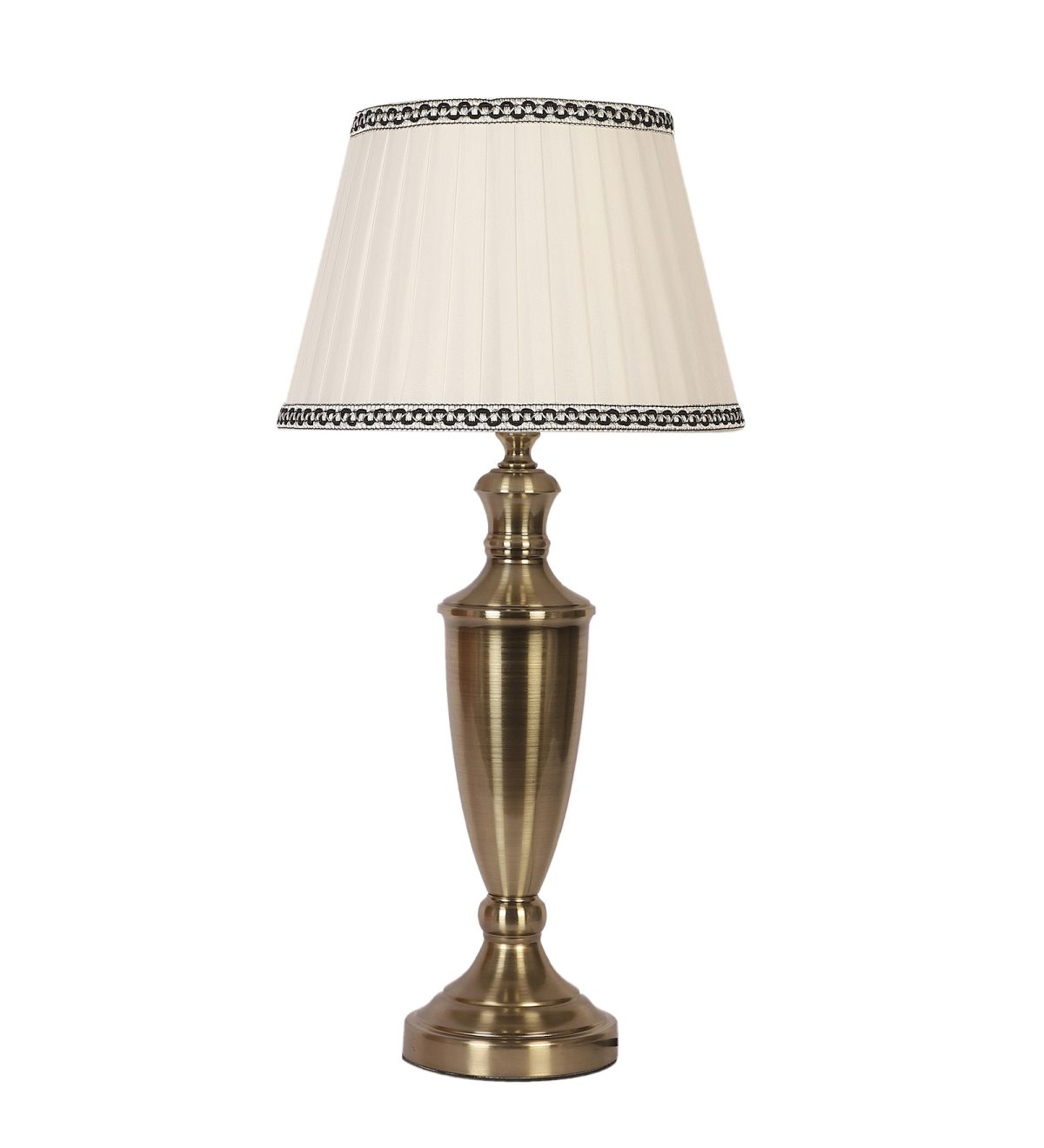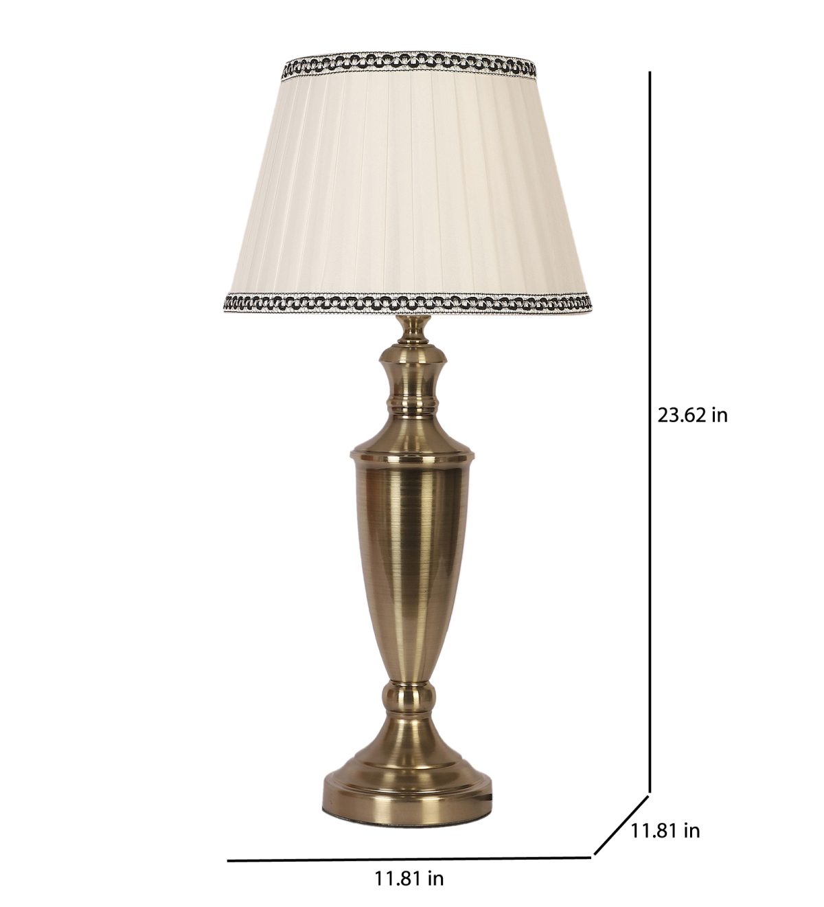 LEARC antique brass finish table lamp with cream shade. LAMP NOT INCLUDED.