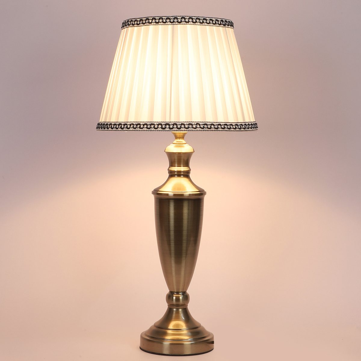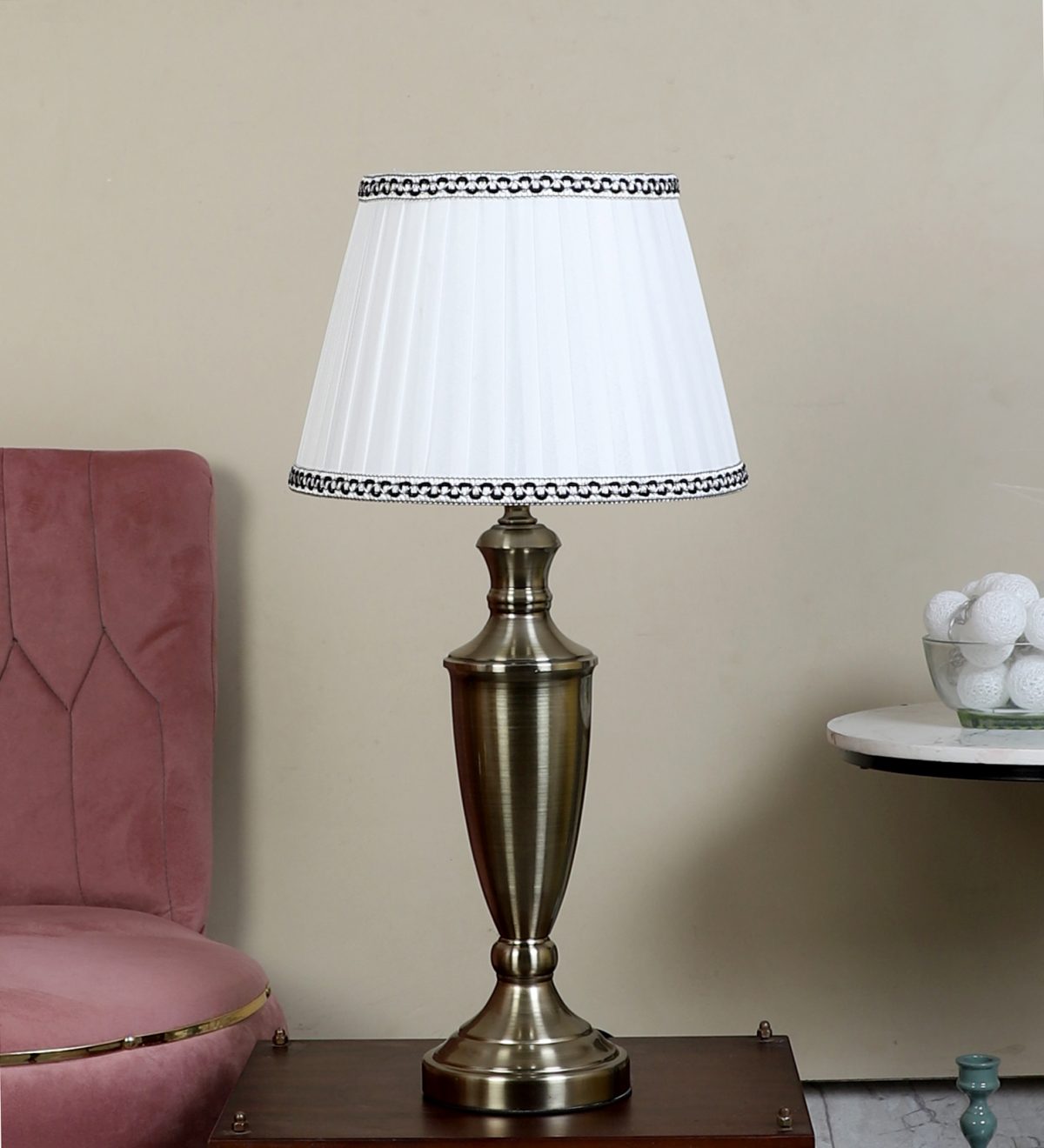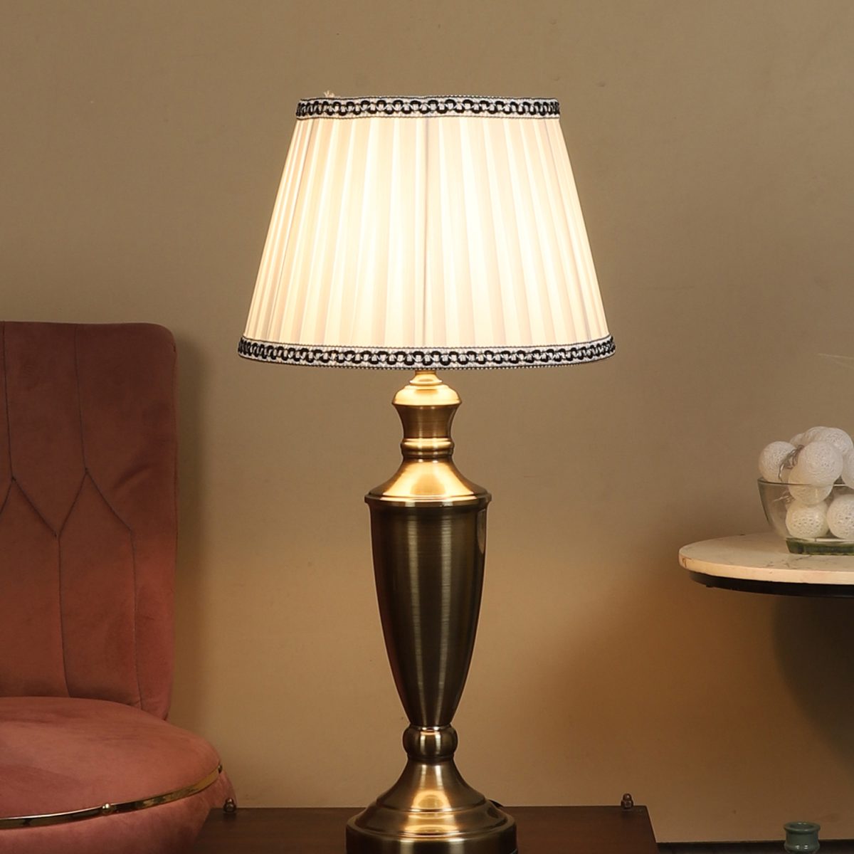 LEARC antique brass finish table lamp with cream shade. LAMP NOT INCLUDED.