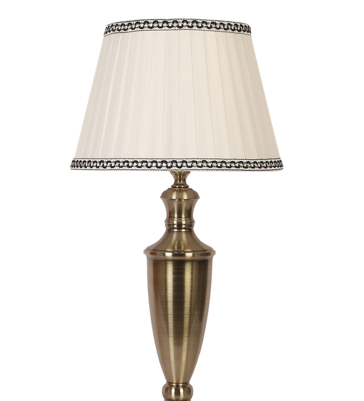 LEARC antique brass finish floor lamp with cream textured shade having golden border FL5020-B