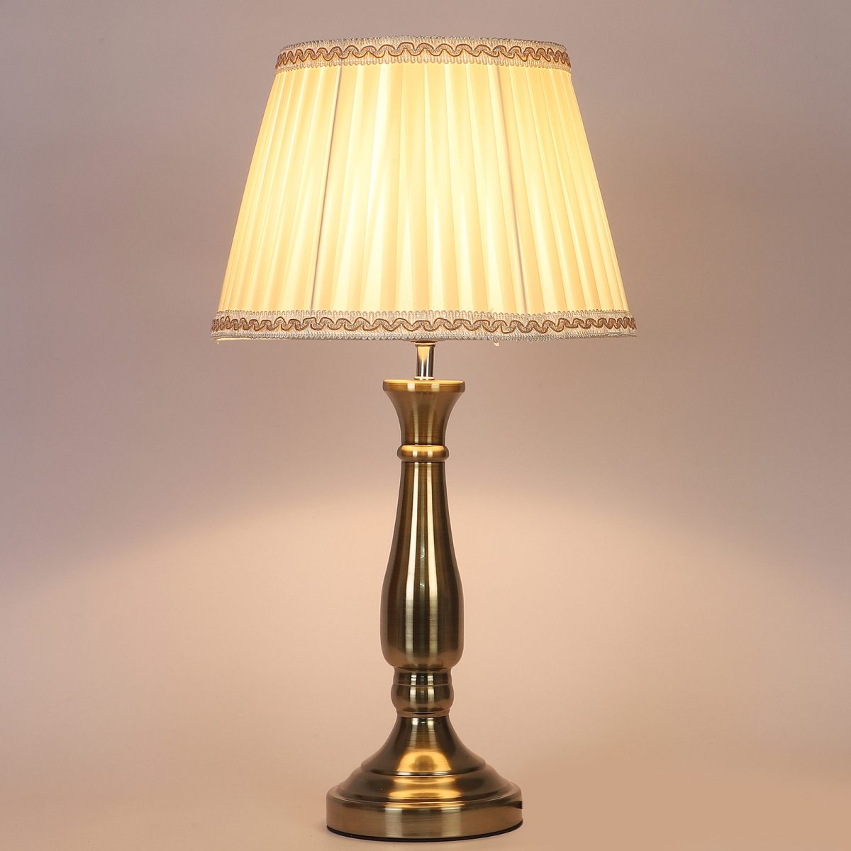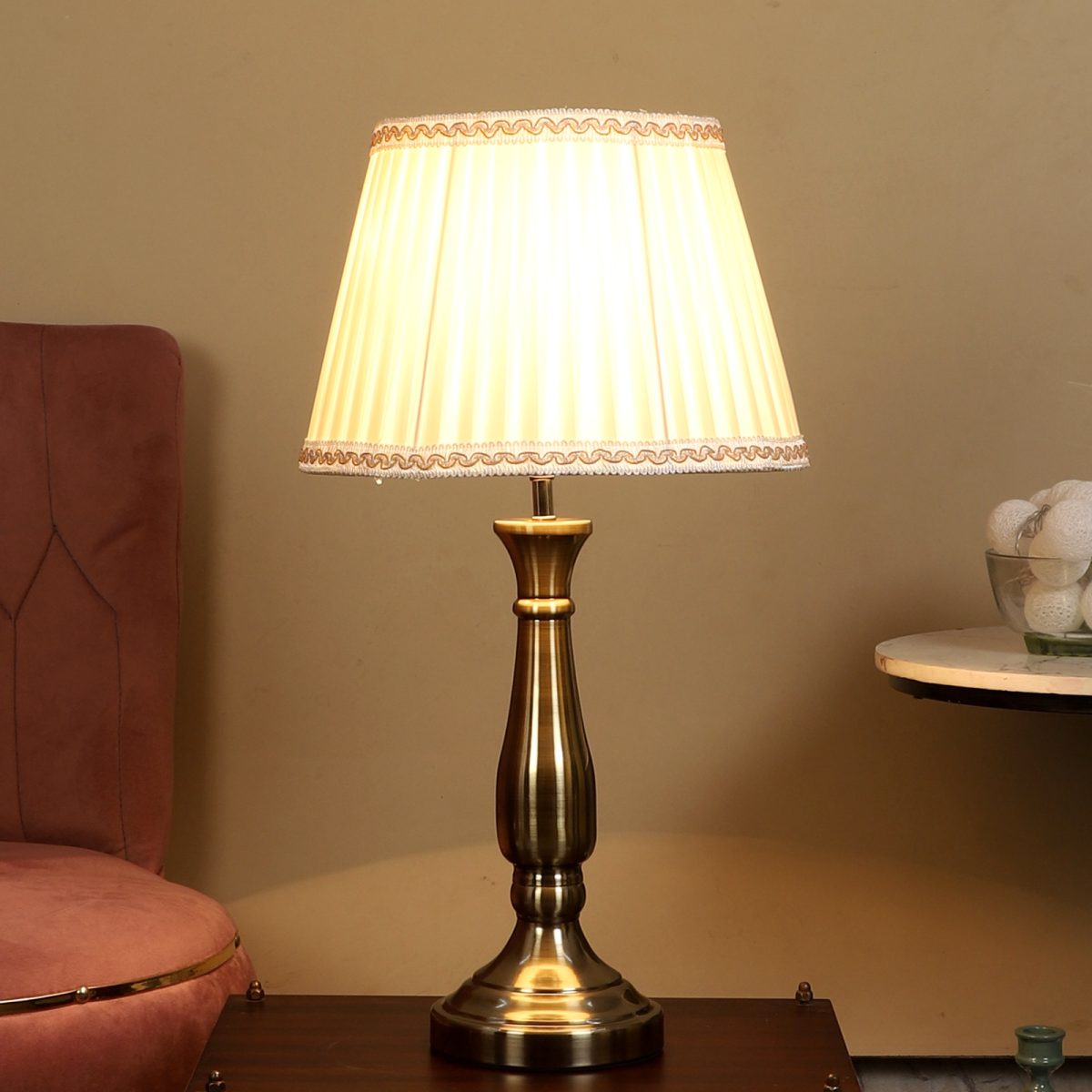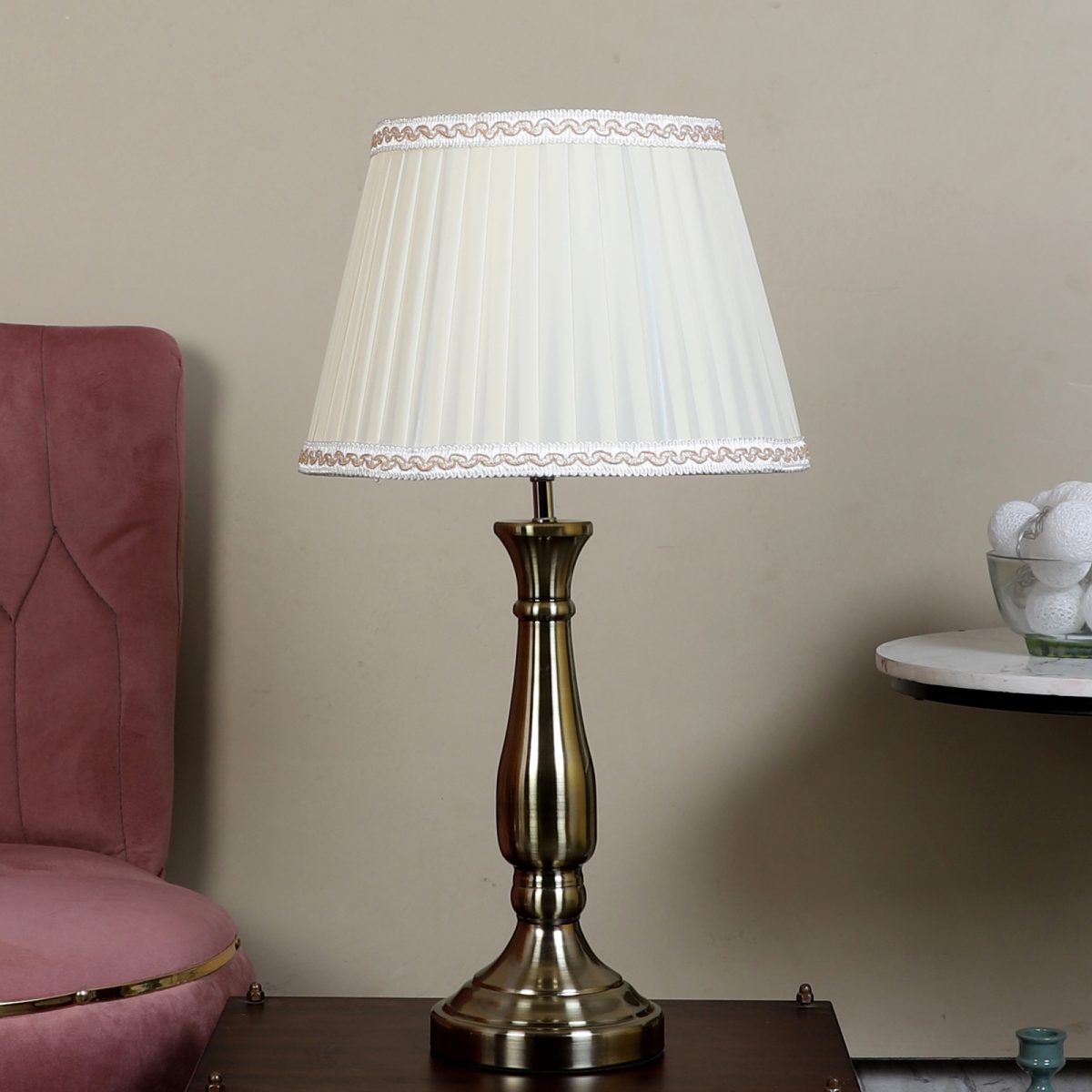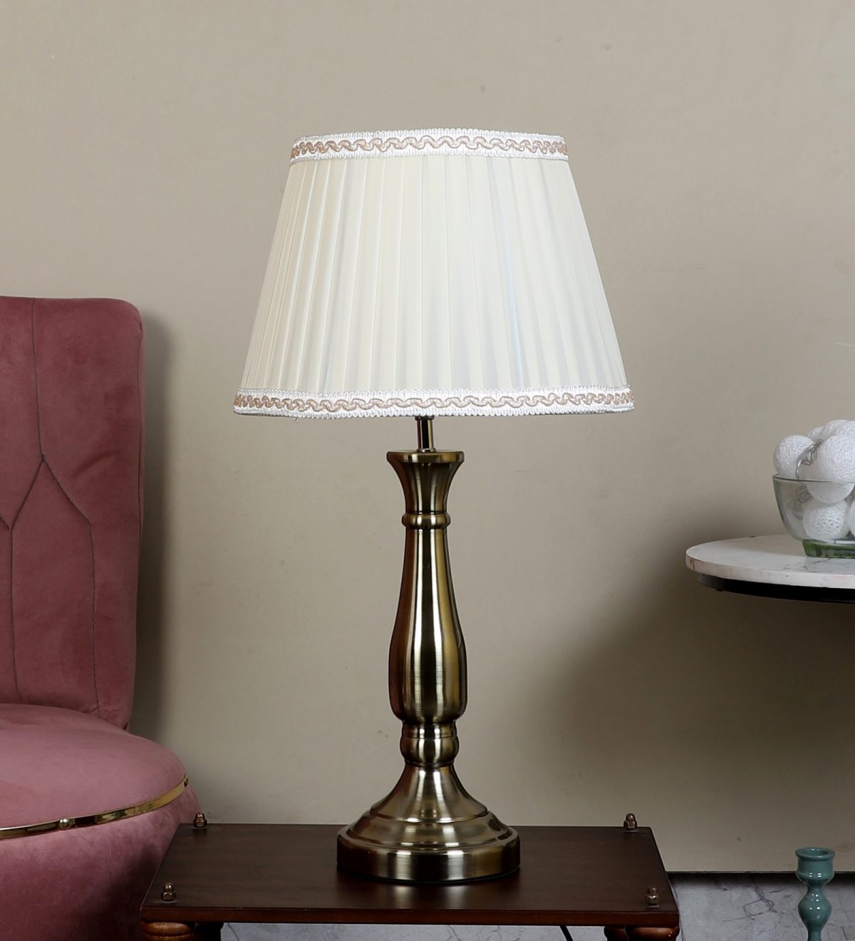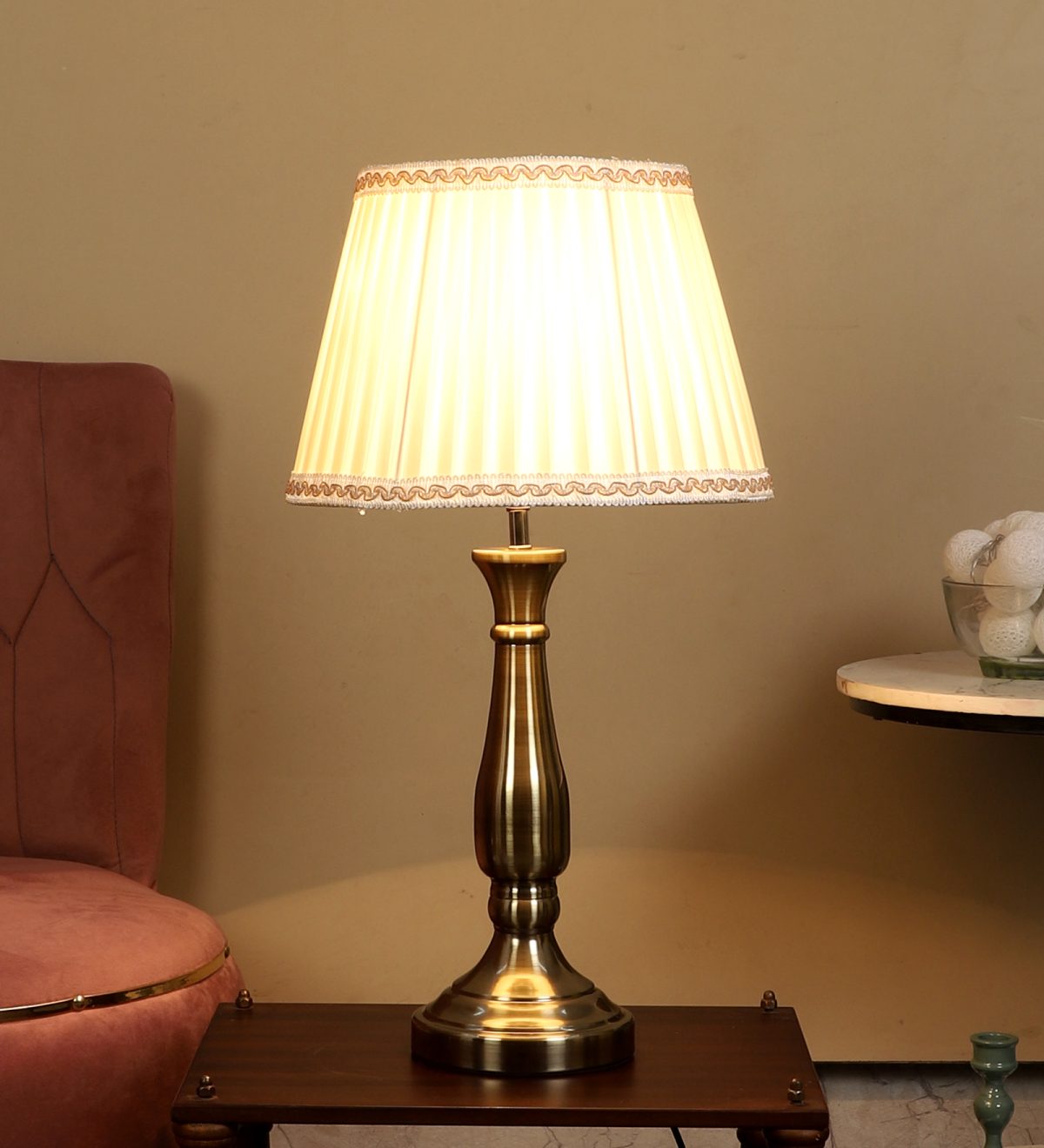 LEARC antique brass finish table lamp with light gold shade having golden border TL5014-D