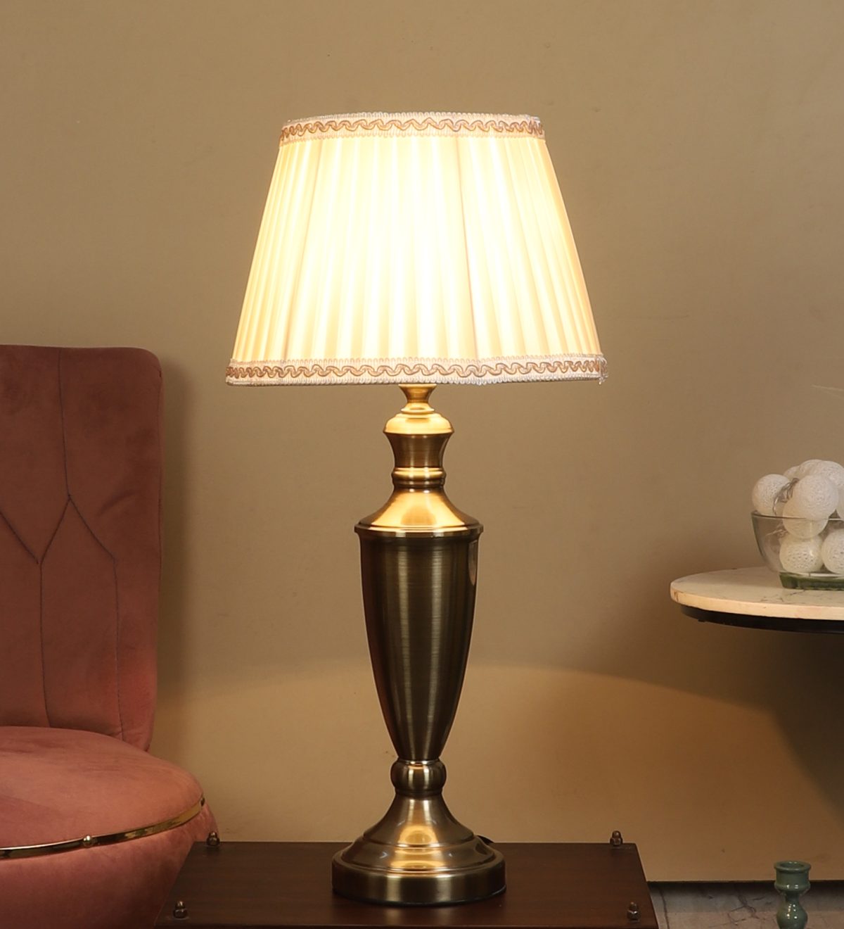 LEARC antique brass finish table lamp with light gold shade having golden border TL5020-D LEARC antique brass finish table lamp with light gold shade having golden border TL5020-D Original price was: ₹4,468.Current price is: ₹2,234. Inc. GST