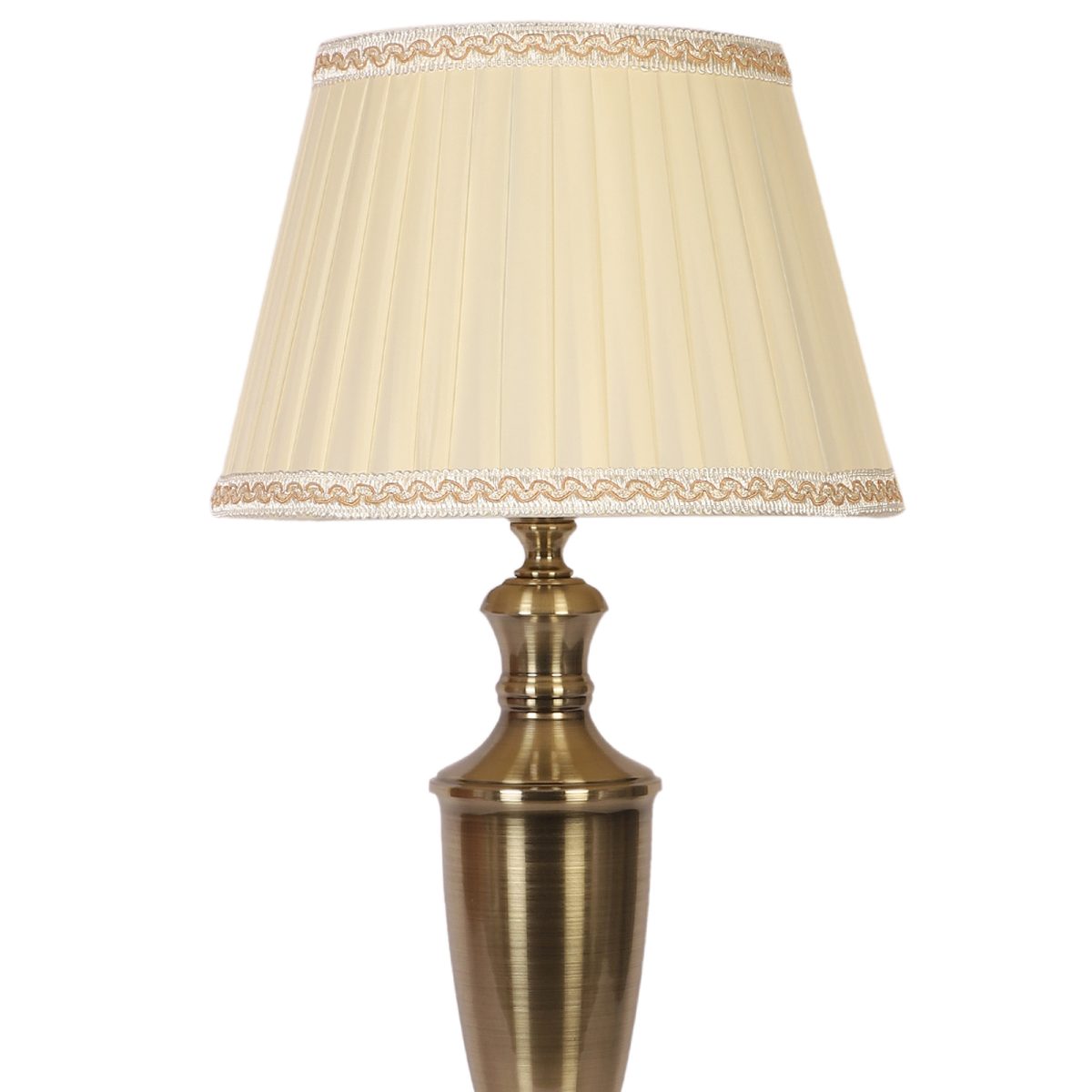 LEARC antique brass finish table lamp with dark cream shade. LAMP NOT INCLUDED.