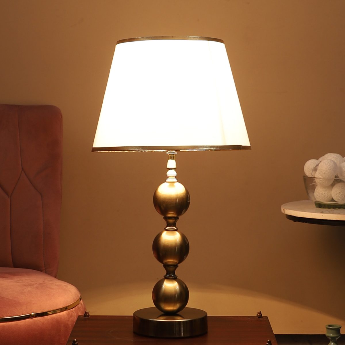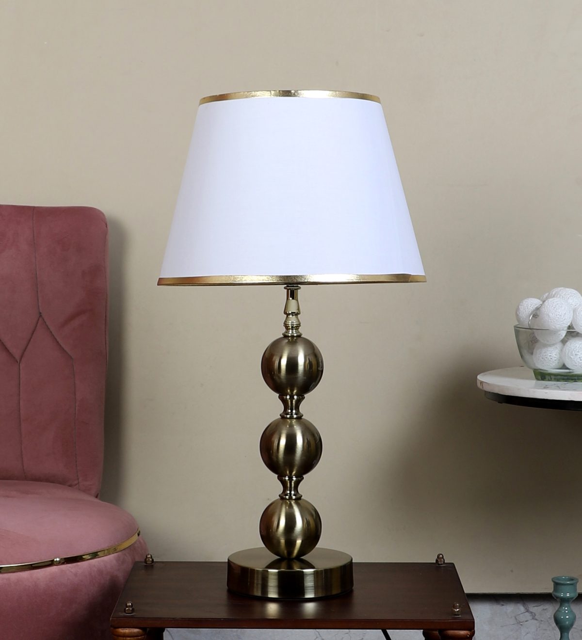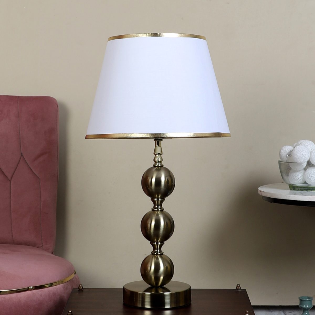 Be the first to review “LEARC antique brass finish table lamp with white shade having golden border TL5015-C”