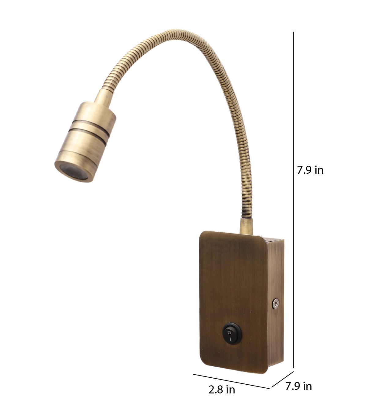 Antique finish sleek, economical, aluminium, mild steel adjustable bed side spot light. It is one of the best selling product. Ideal to install on the side of the bed at a low height. This highlights a small area giving yellow light output , which can be adjusted by rotating the head in any required direction.