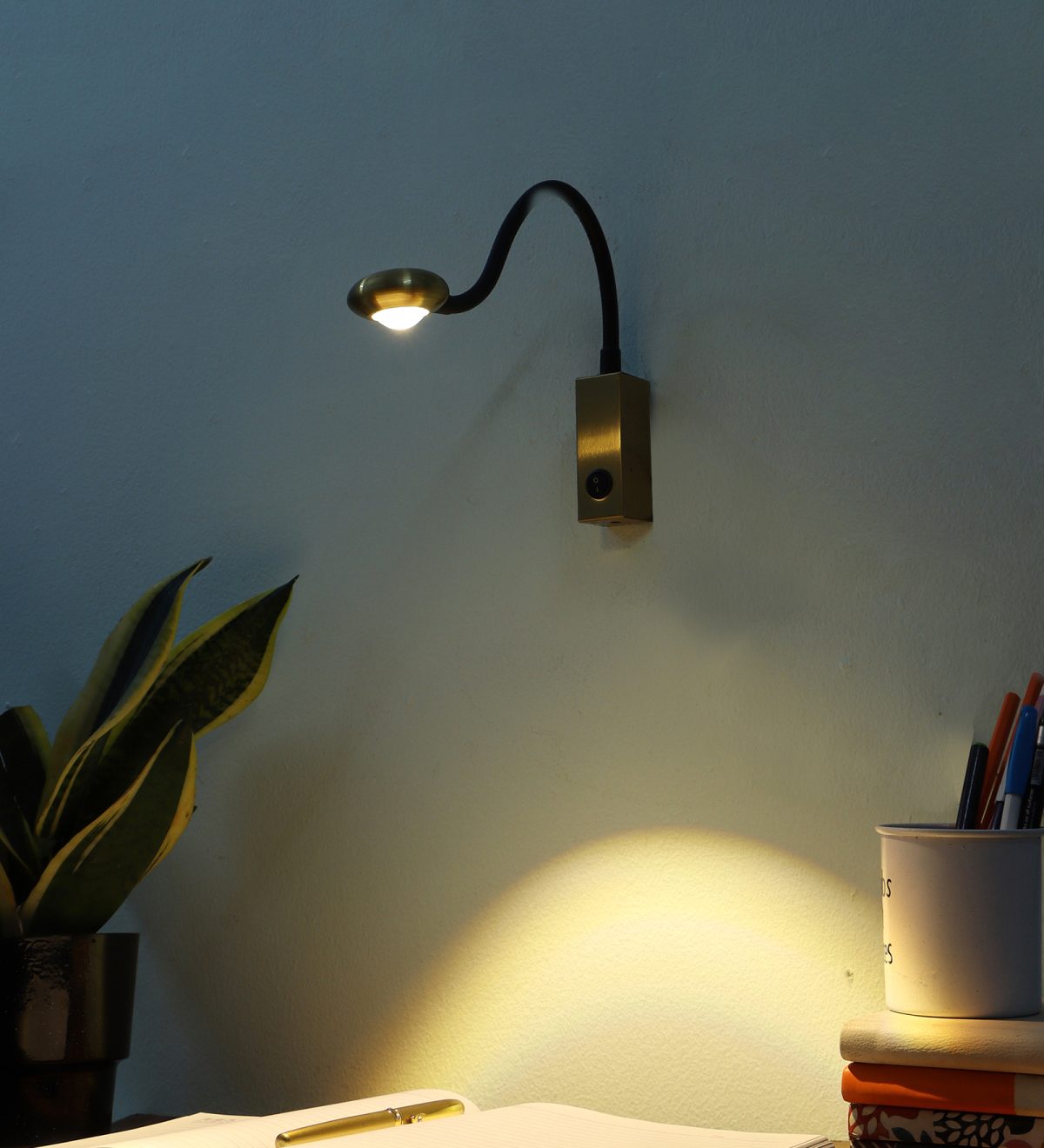LEARC antique gold finish 3 watt LED Bed Side Light with switch.