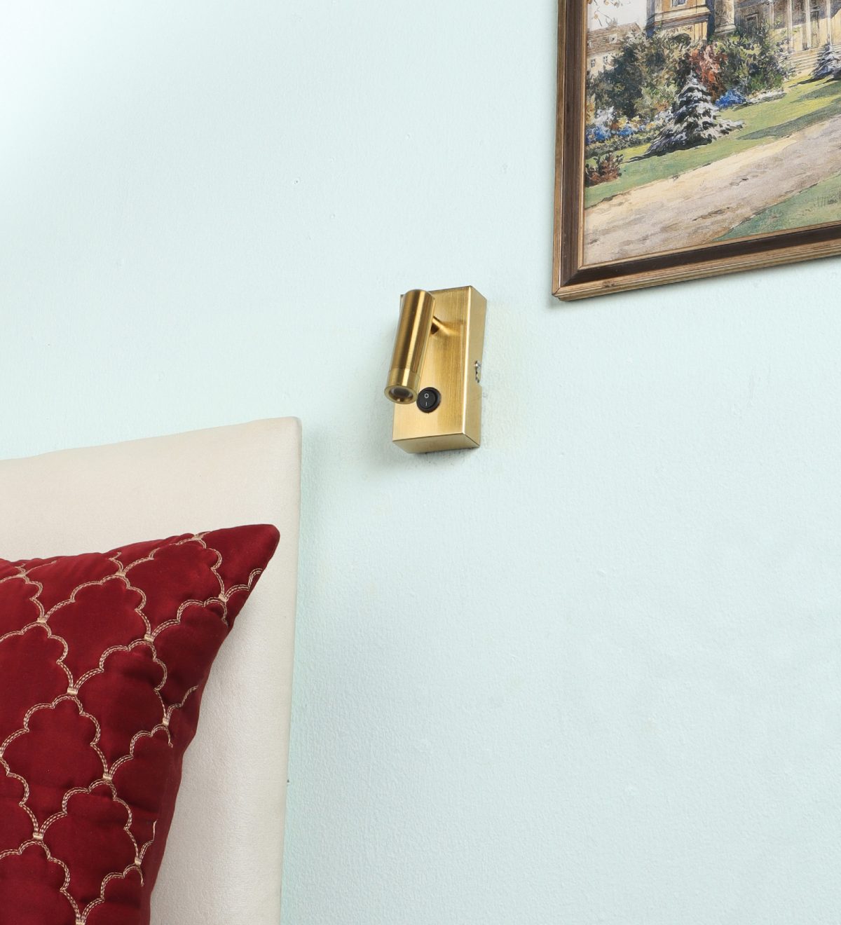 LEARC antique gold finish 3 + 2 watt LED Bed Side Light with switch.