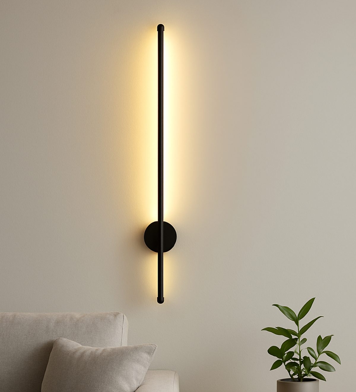 LEARC black finish 18 watt colour changing 3 in 1, 3 feet indirect lighting LED wall highlighter. Colour changes fom white to neutral white to yellow by switching on and off.