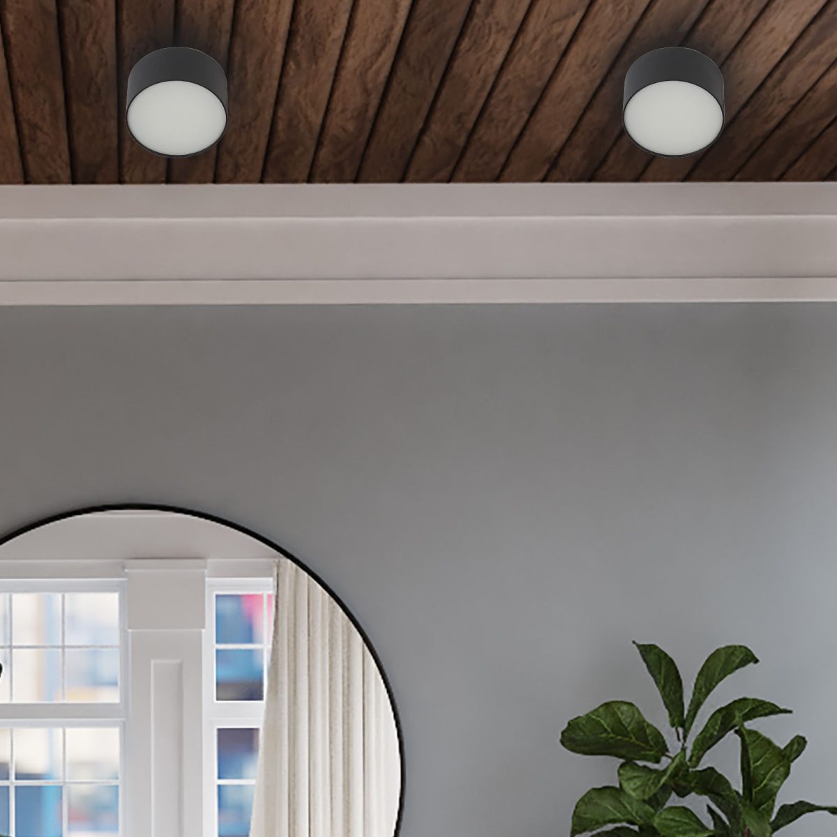 Black round LED surface ceiling light. Can be used both indoors and outdoors. Can be customised as per requirement. Scene Switch Feature : With it’s scene switch feature the downlighter can change it’s color into three modes i.e Cool Day Light, Natural White and Warm White. ON/OFF of the switch in 2 seconds leads to the change in color. Choose the color of your downlighter according to your mood.