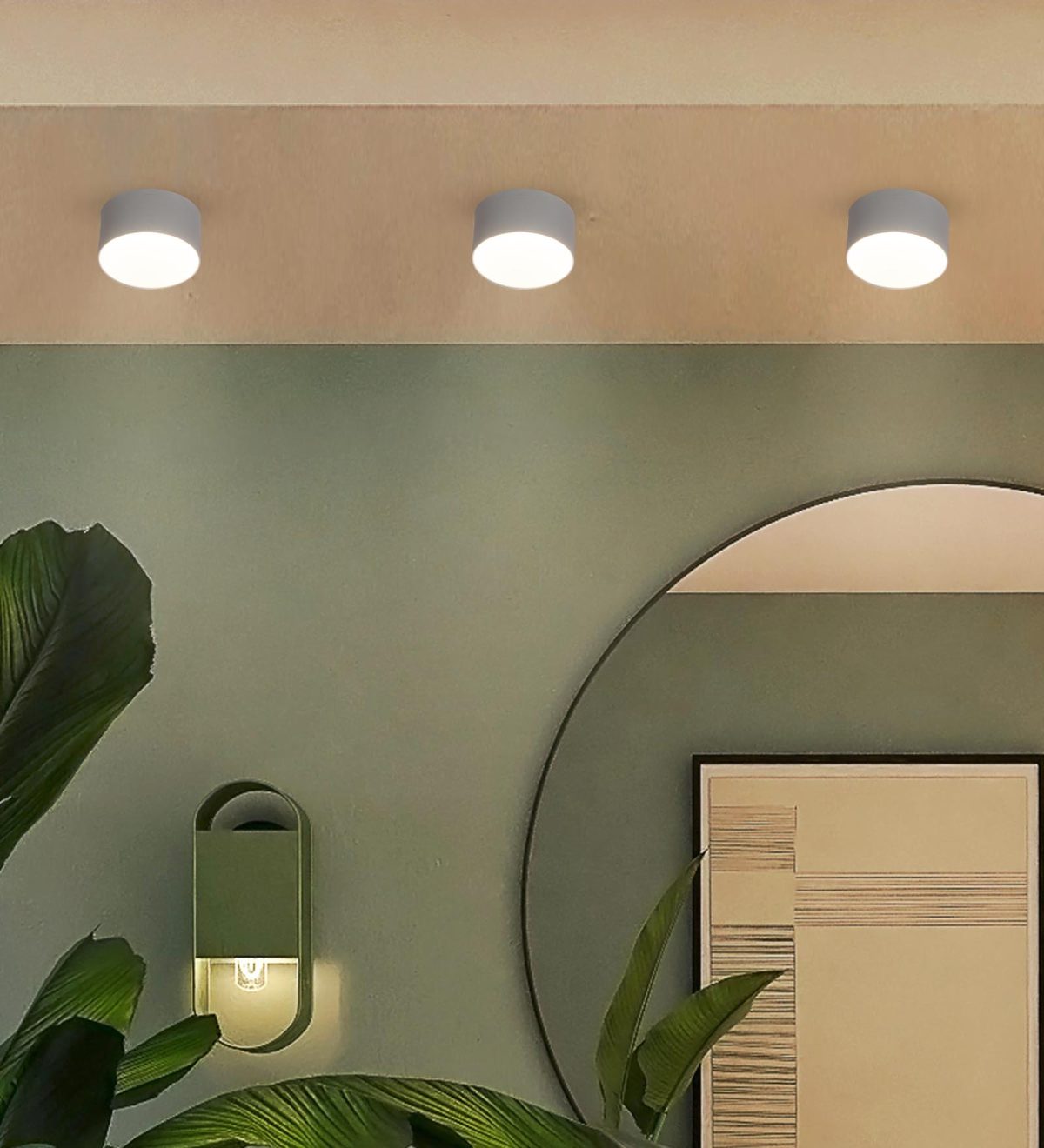 White round LED surface ceiling light. Can be used both indoors and outdoors. Can be customised as per requirement. Scene Switch Feature : With it’s scene switch feature the downlighter can change it’s color into three modes i.e Cool Day Light, Natural White and Warm White. ON/OFF of the switch in 2 seconds leads to the change in color. Choose the color of your downlighter according to your mood.