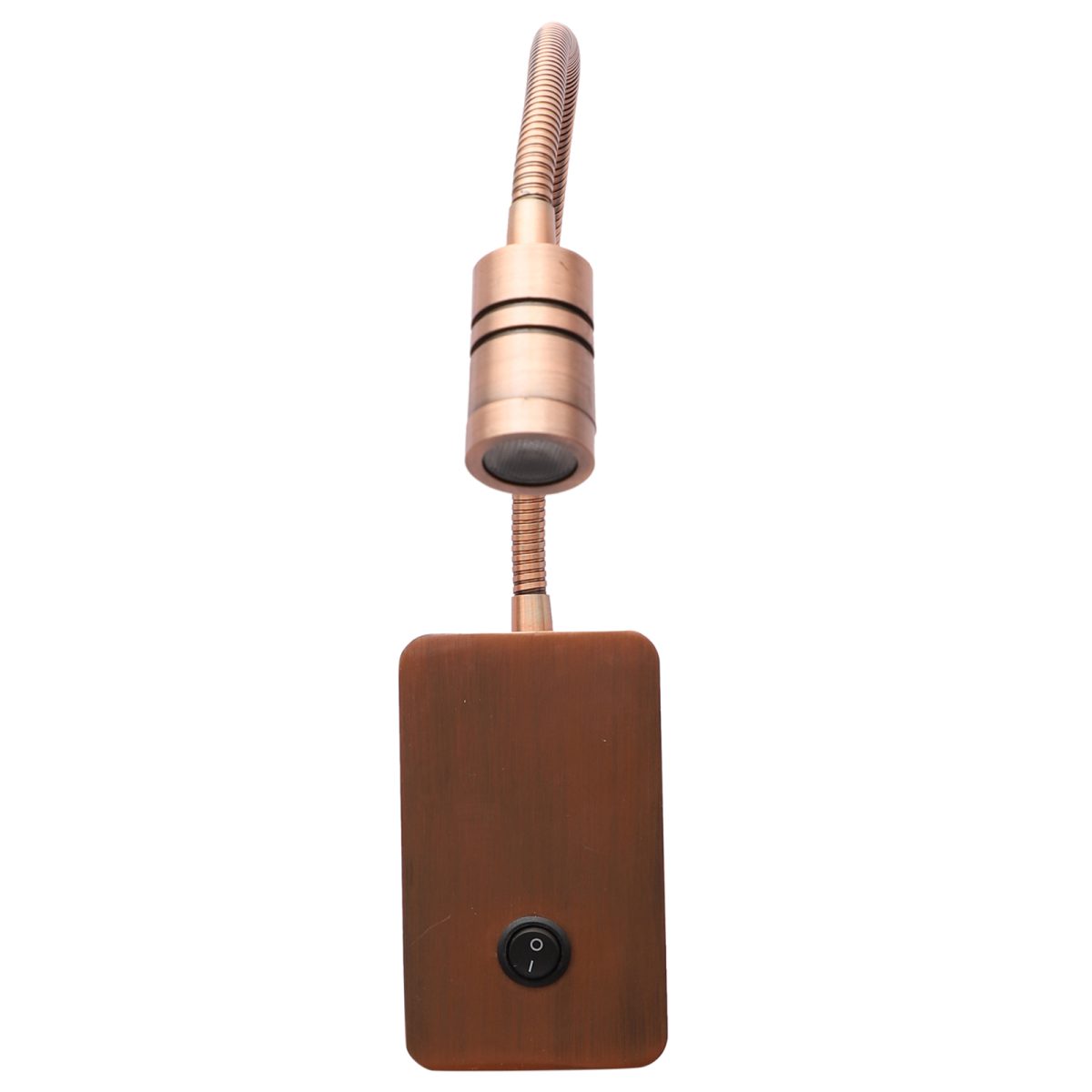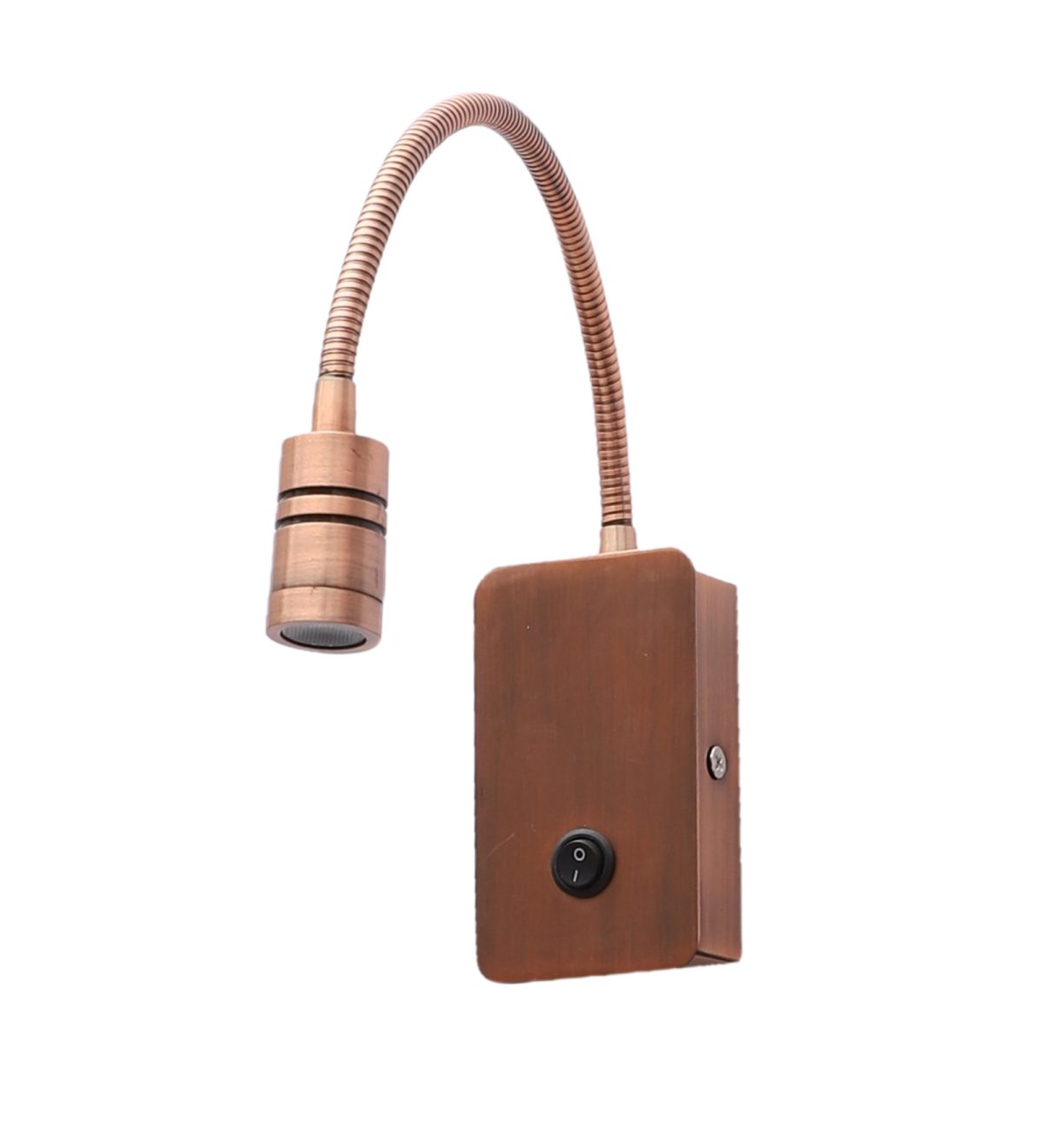 Copper finish sleek, economical, aluminium, mild steel adjustable bed side spot light. It is one of the best selling product. Ideal to install on the side of the bed at a low height. This highlights a small area giving yellow light output , which can be adjusted by rotating the head in any required direction.