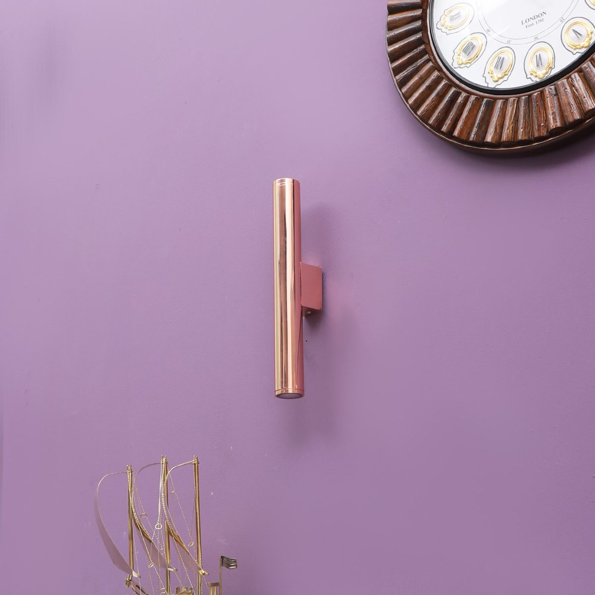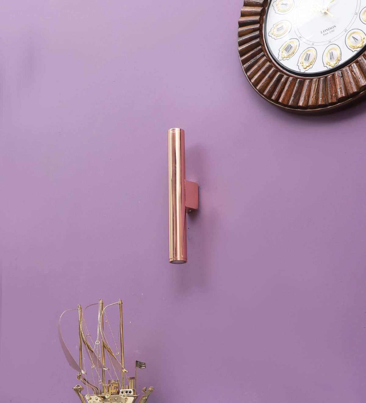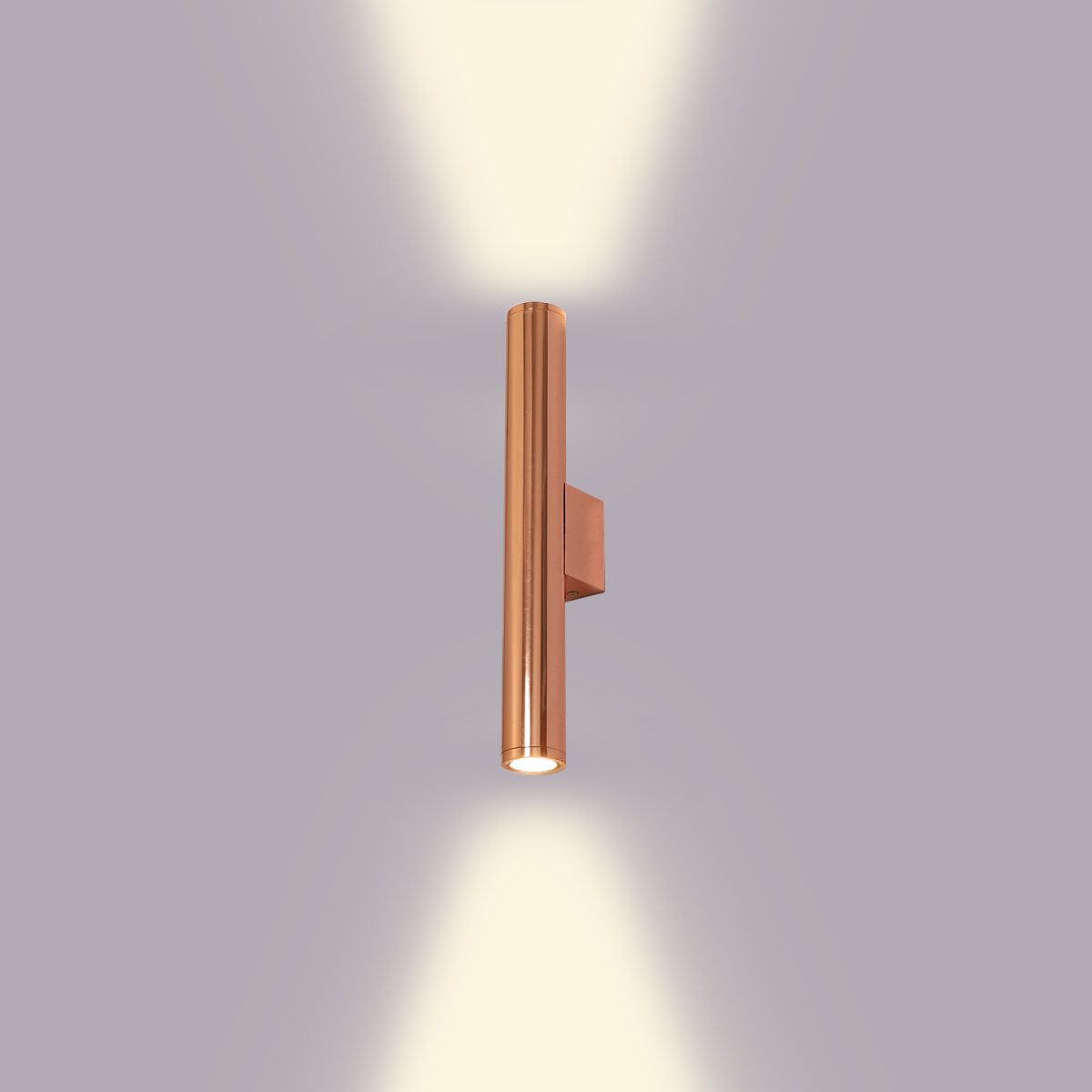 Copper up and down (6*2=12 watt) LED wall light using high quality LED and driver with high success rate having less than 0.5% replacement with warm white (yellow) light output. This design is largely preferred by architects and interior designers. Application includes both residential and commercial premises. Also used as a wall highlighter. Can be customized as per requirement.