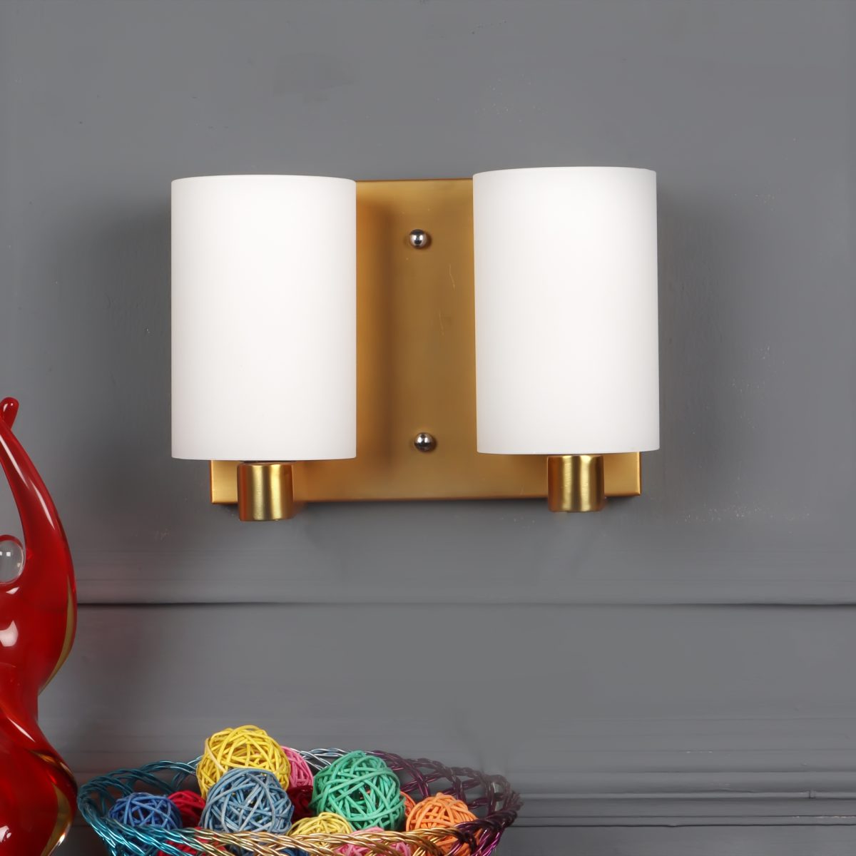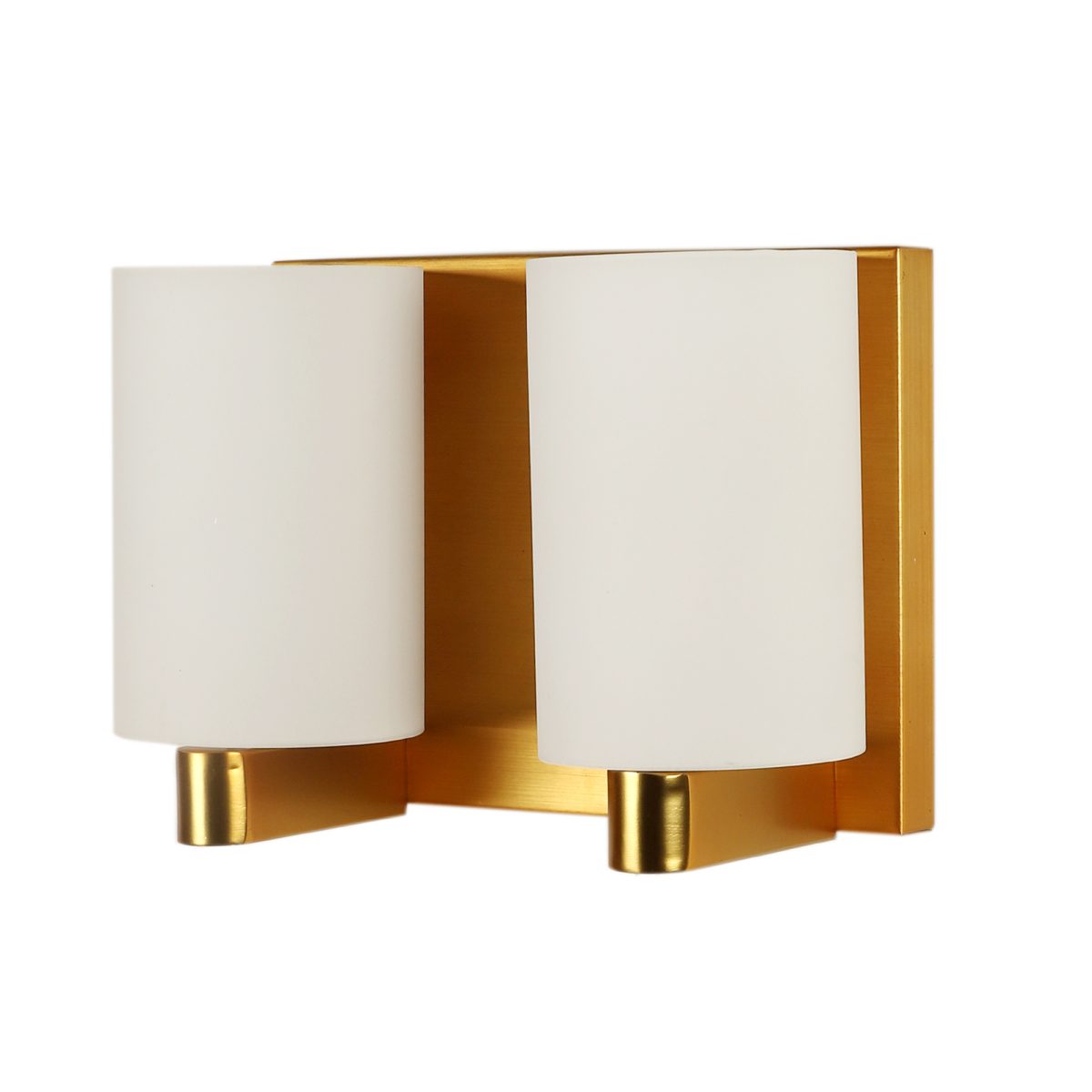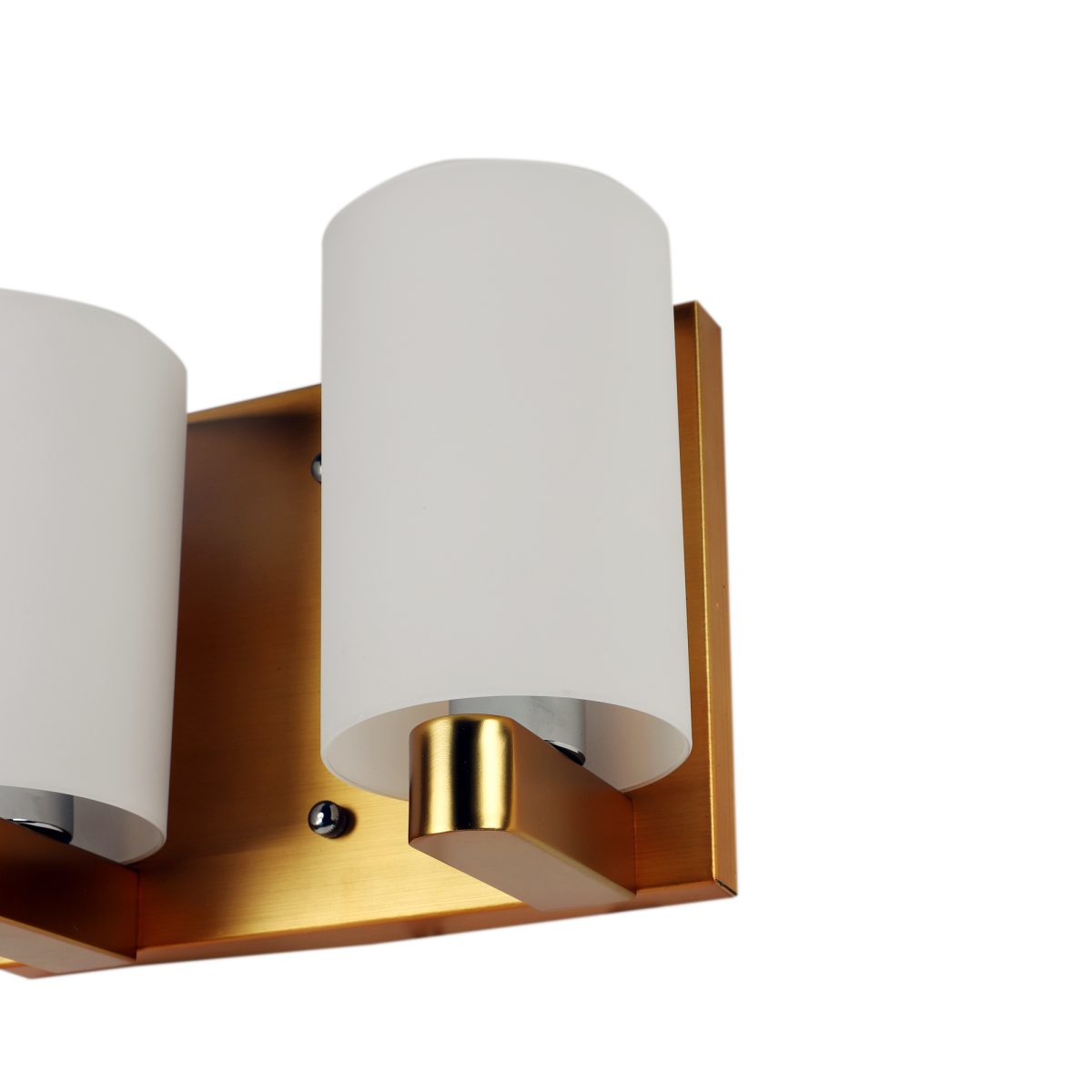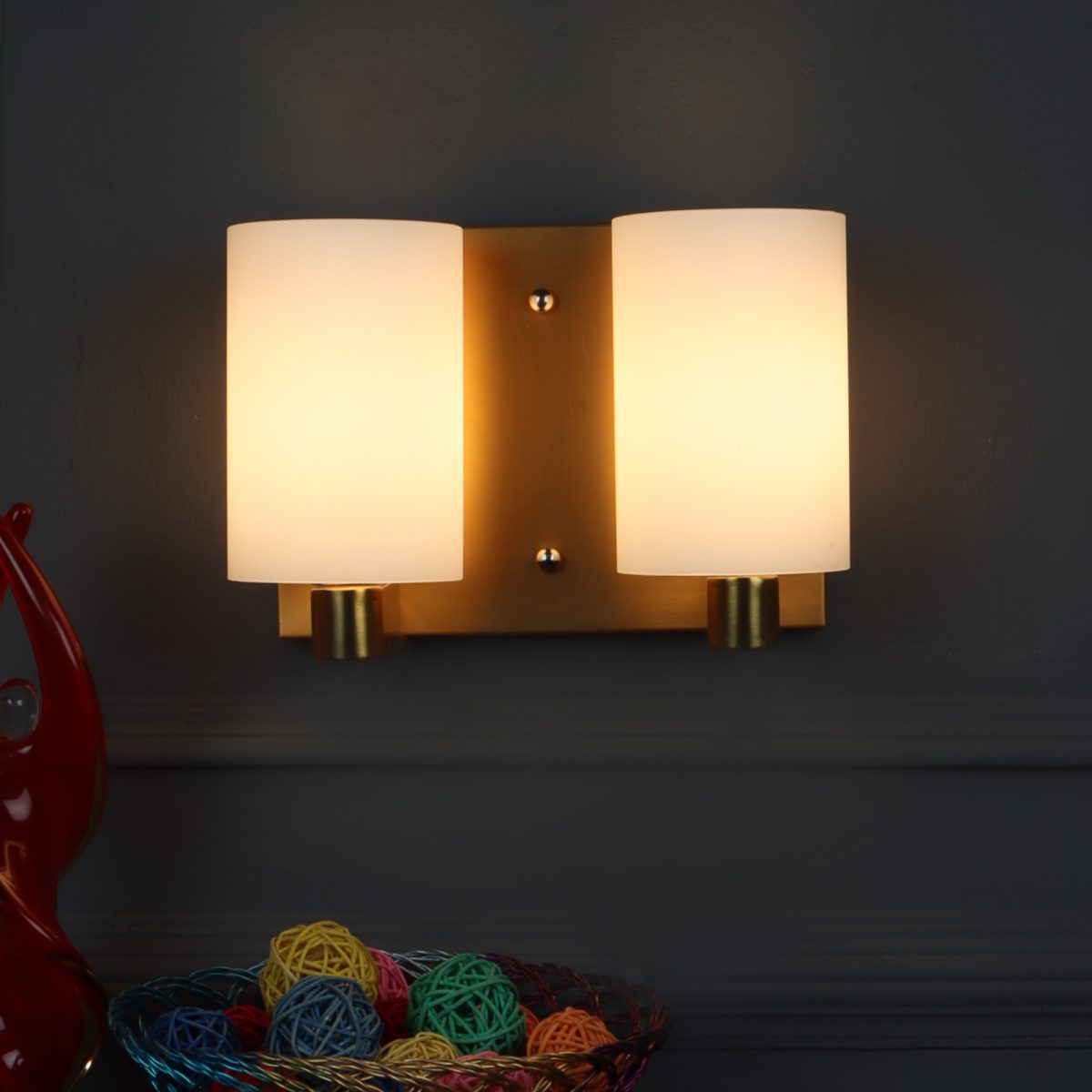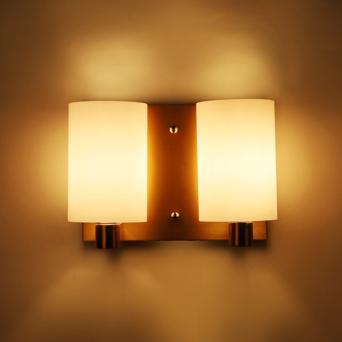 Modern antique gold finish double wall light made of mild steel, with a round cylindrical long white glass. It is maintenance free, glass is open from both the sides that prevents any dust collection, easy to remove glass and wash it, comes with an E27 holder, only the change of lamp is required, which is available locally everywhere. You can of course swap out the bulb for one that is dimmable, has a higher light output or a different color temperature. Application includes both residential and commercial premises wherever it matches with your interiors. Matching single wall light code – WL2241. All variations available in silver (satin nickel) and dark brown (wood) finish also. It is one of the top selling product in our catalogue. Can be customized as per requirement in case of bulk quantities. Lamp not included.