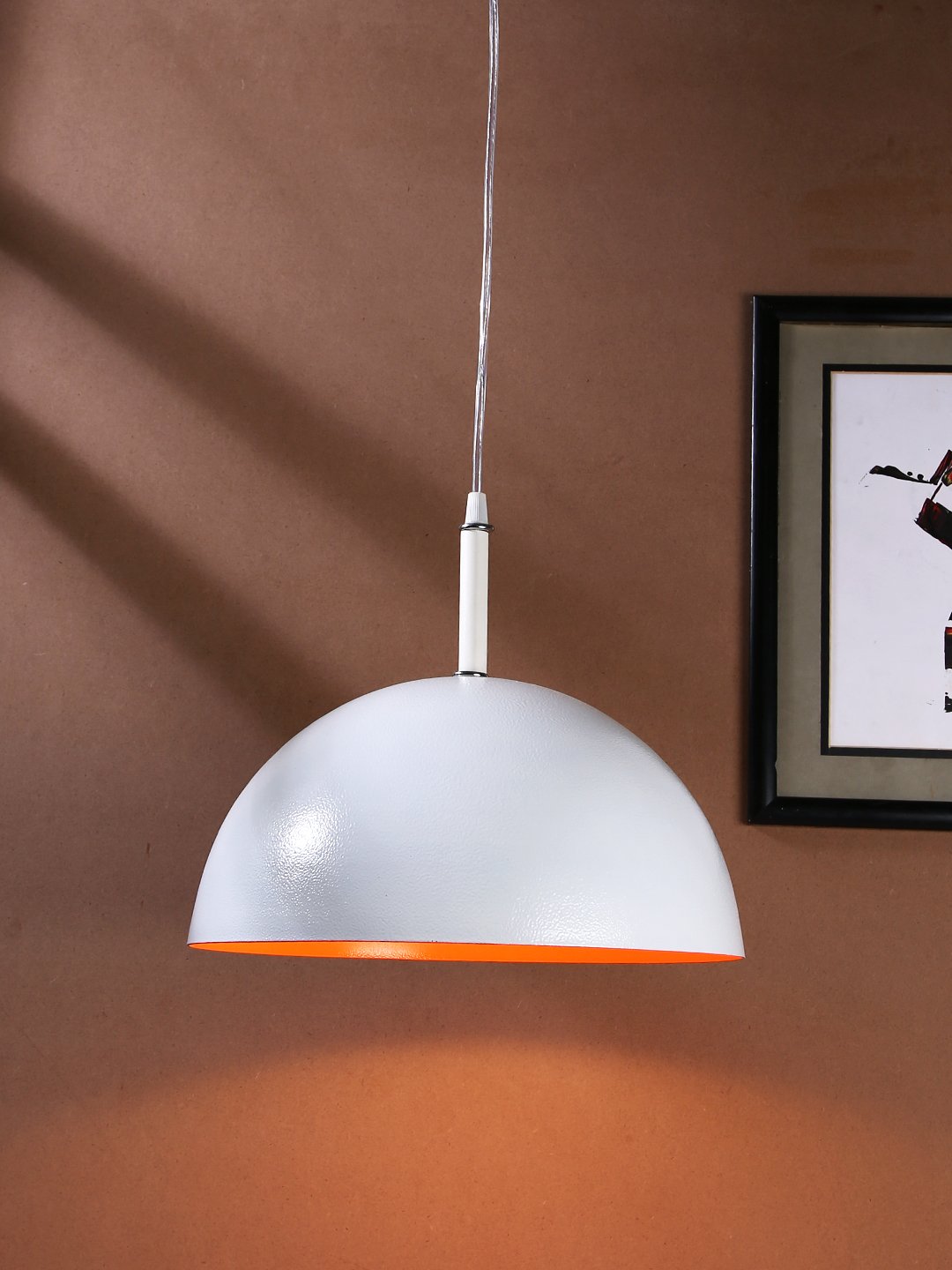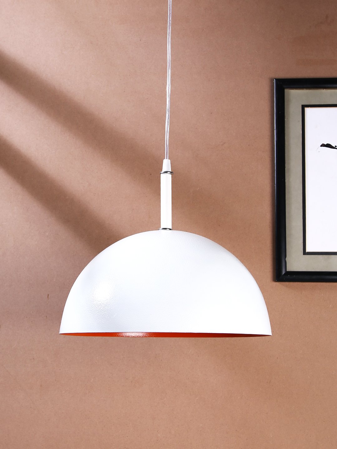 Powder coated white – orange finish, modern aluminium single hanging light. The suspension can be adjusted at time of installation to the desired height. It is maintenance free, comes with an E27 holder, only the change of lamp is required, which is available locally everywhere. Looks amazing with LED filament lamp. Available in bis size with code – HL3884 Codes of other color variations in the same design – HL3798, HL3799, HL3800, HL3801, HL3802, HL3803, HL3804, HL3805, HL3806, HL3807, HL3808, HL3810, HL3811 . Also available in big size with codes – HL3815, HL3816, HL3817, HL3818, HL3819, HL3820, HL3821, HL3822, HL3823, HL3824, HL3882, hl3884 Application includes both residential and commercial premises wherever it matches with your interiors. Can be customized as per requirement in case of bulk quantities. Lamp not included.