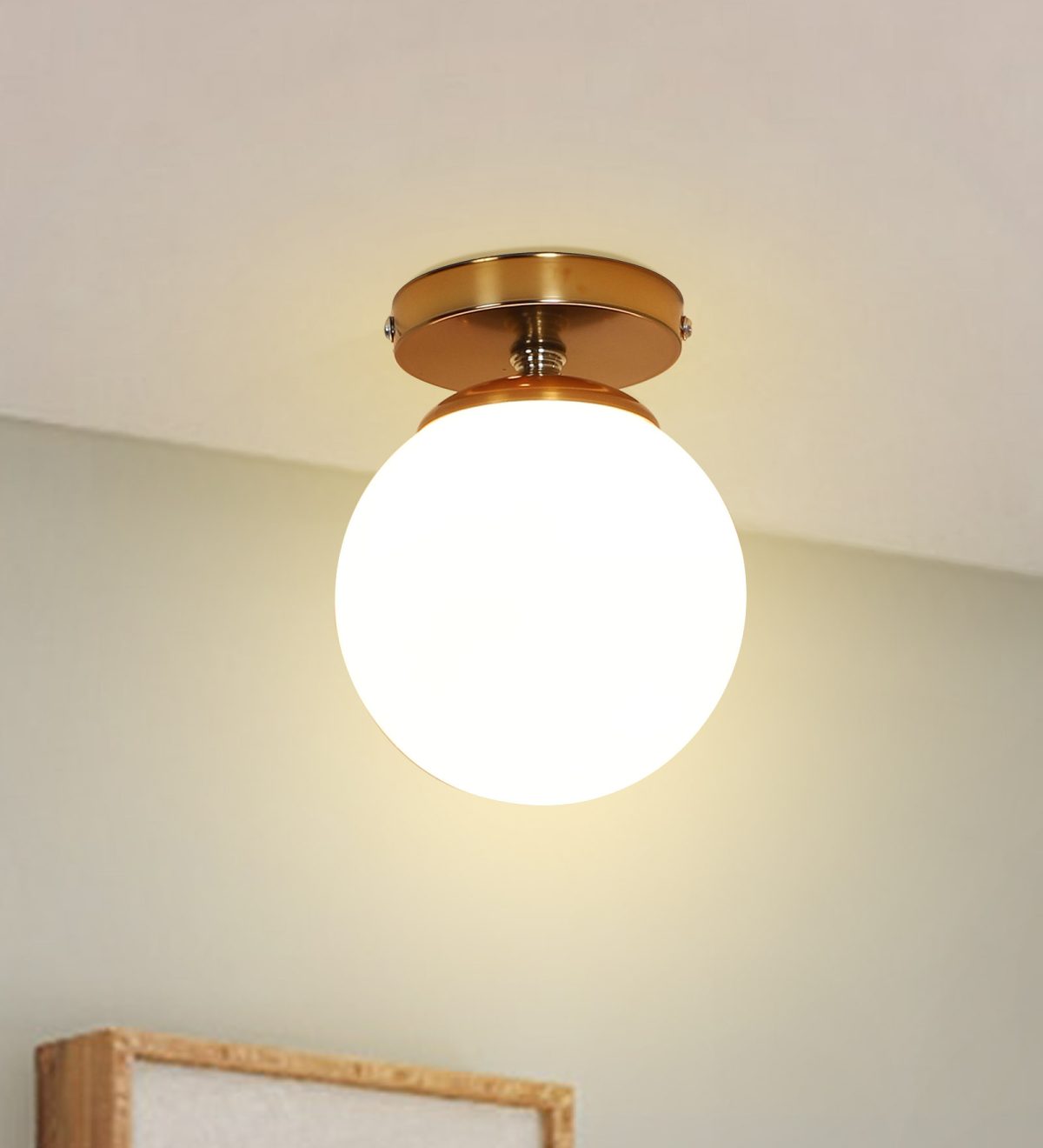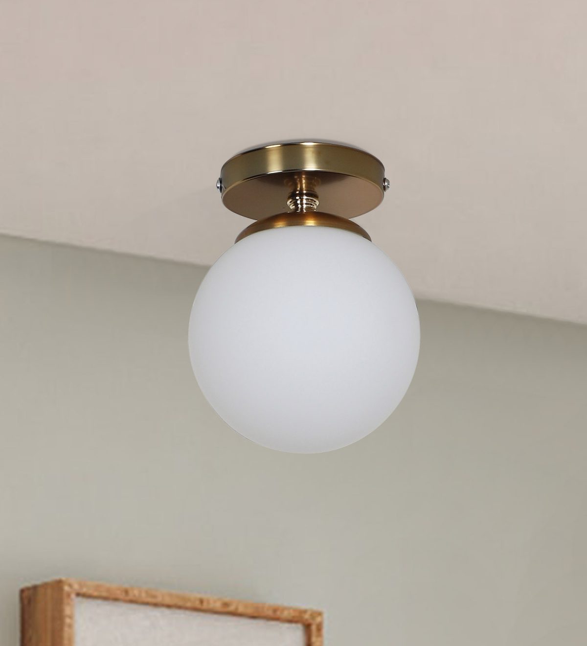 Antique finish indoor ceiling light with 6 inch doom glass. It is maintenance free, it is easy to remove glass and wash it. Comes with an E27 holder. Can be customized as per requirement. LAMP NOT INCLUDED.
