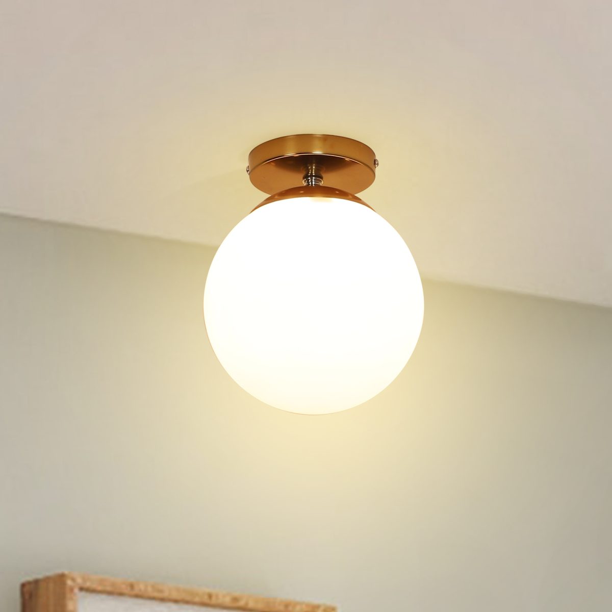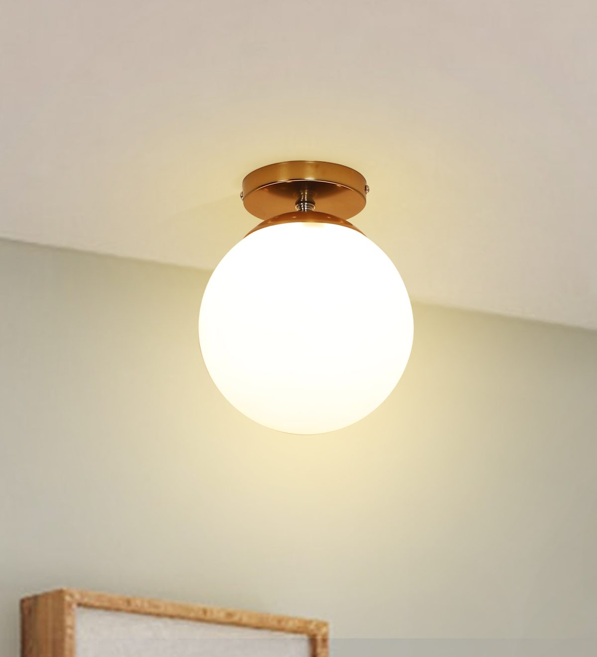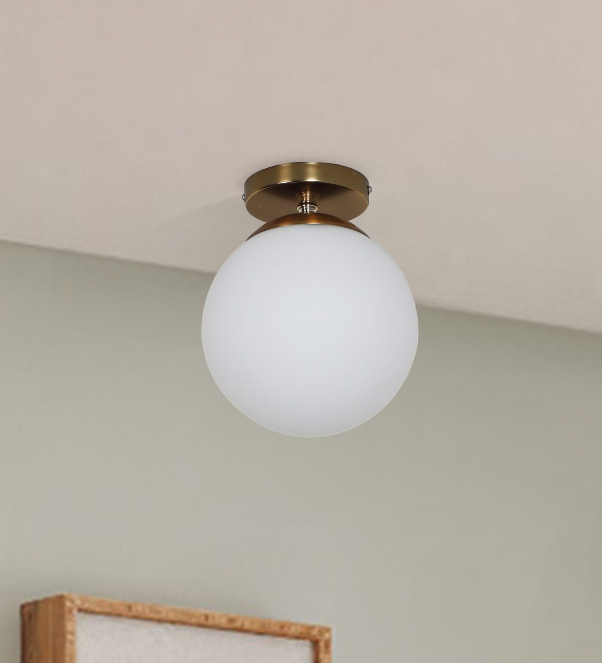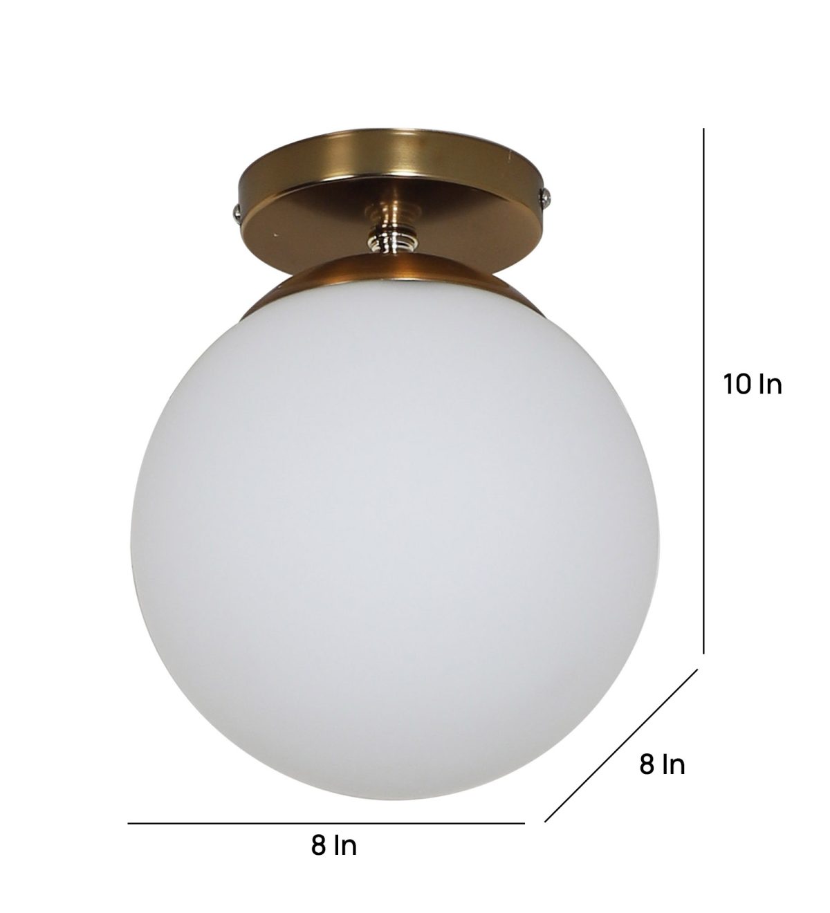 Antique finish indoor ceiling light with 8 inch doom glass. It is maintenance free, it is easy to remove glass and wash it. Comes with an E27 holder. Can be customized as per requirement. LAMP NOT INCLUDED.