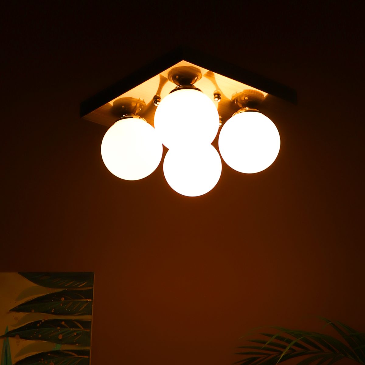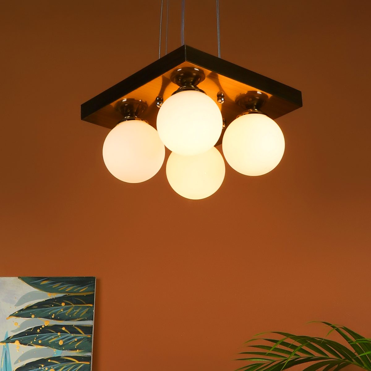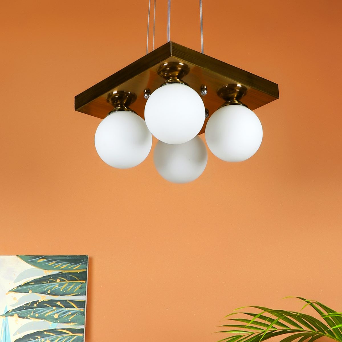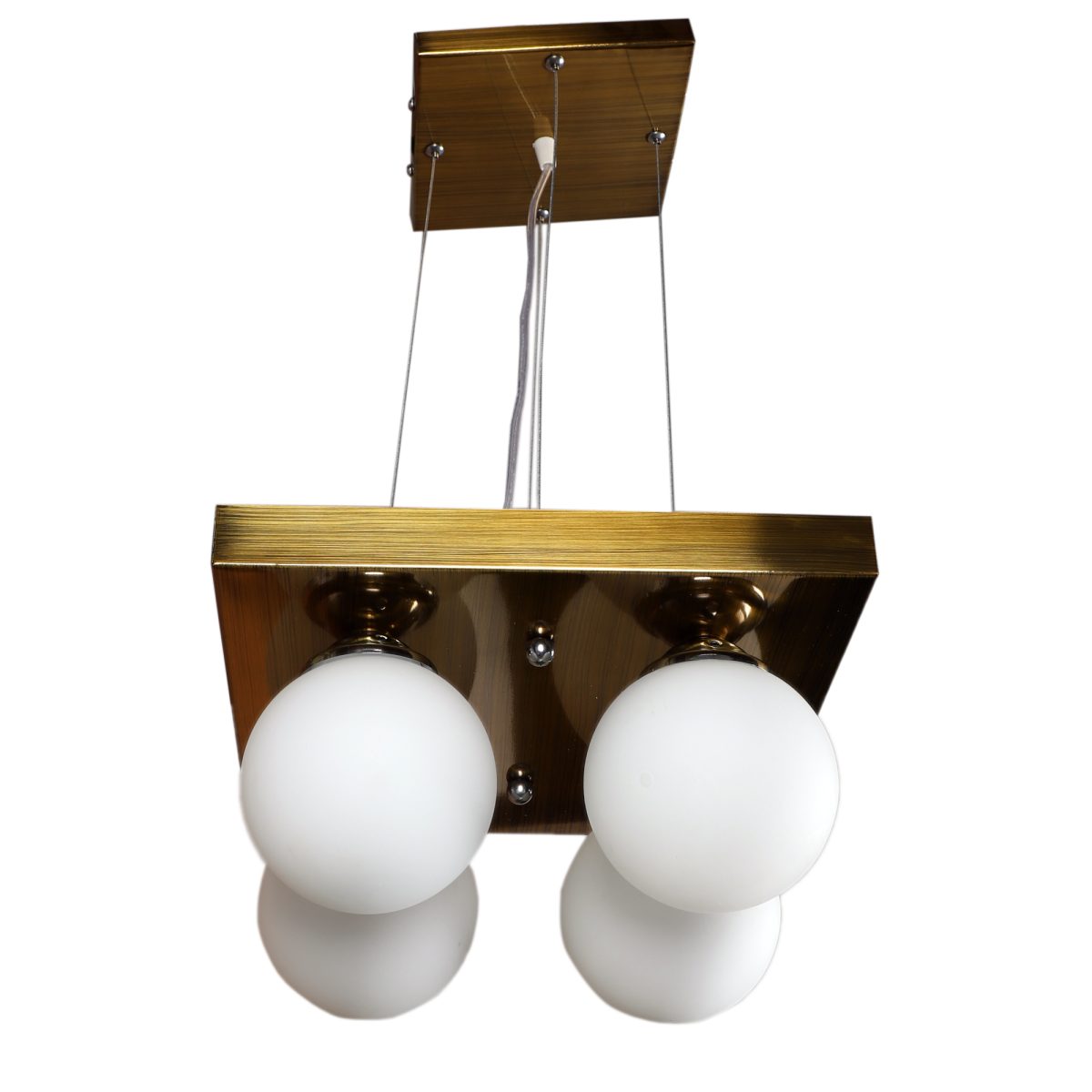 Antique brass finish, modern square globe (doom) glass mounted on a mild steel plate having four lamps made of mild steel and glass. It is one of the regular design which is never out of trend and is among one of the best sellers. The suspension can be adjusted at time of installation to the desired height. It is maintenance free, easy to remove glass and wash them, comes with an E27 holder, only the change of lamp is required, which is available locally everywhere. Application includes both residential and commercial premises wherever it matches with your interiors. Available in nine lights with code HL4100-9. Related chandeliers – CH400-4, CH400-9. Can be customized as per requirement in case of bulk quantities. Lamp not included.