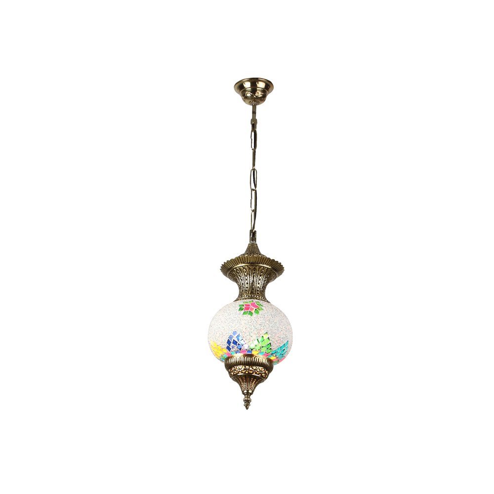 Antique brass finish, designer, traditional, brass hanging light having one lamp.. The suspension can be adjusted at time of installation to the desired height. It looks fantastic when lit giving a colorful geometric / floral design. It is maintenance free, comes with an E27 holder, only the change of lamp is required, which is available locally everywhere. It is one of the highest selling design. Application includes both residential and commercial premises wherever it matches with your interiors. matching code of hanging variation in size – HL5001-M, HL5001-L. Lamp not included.