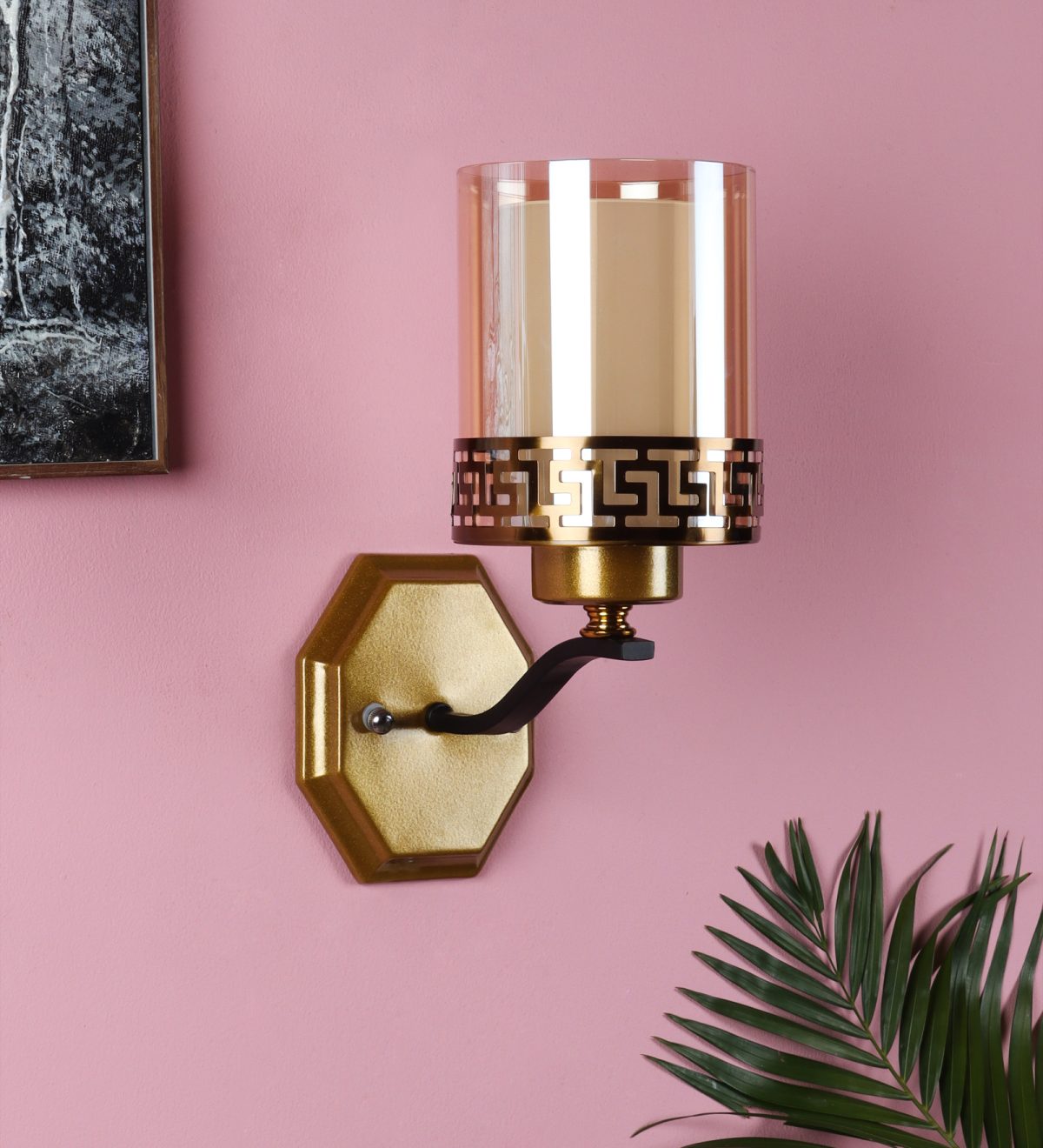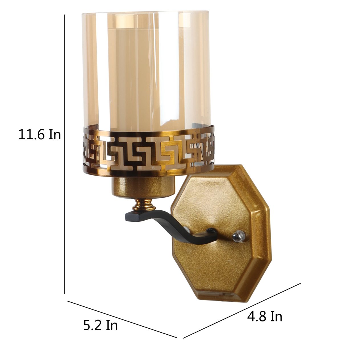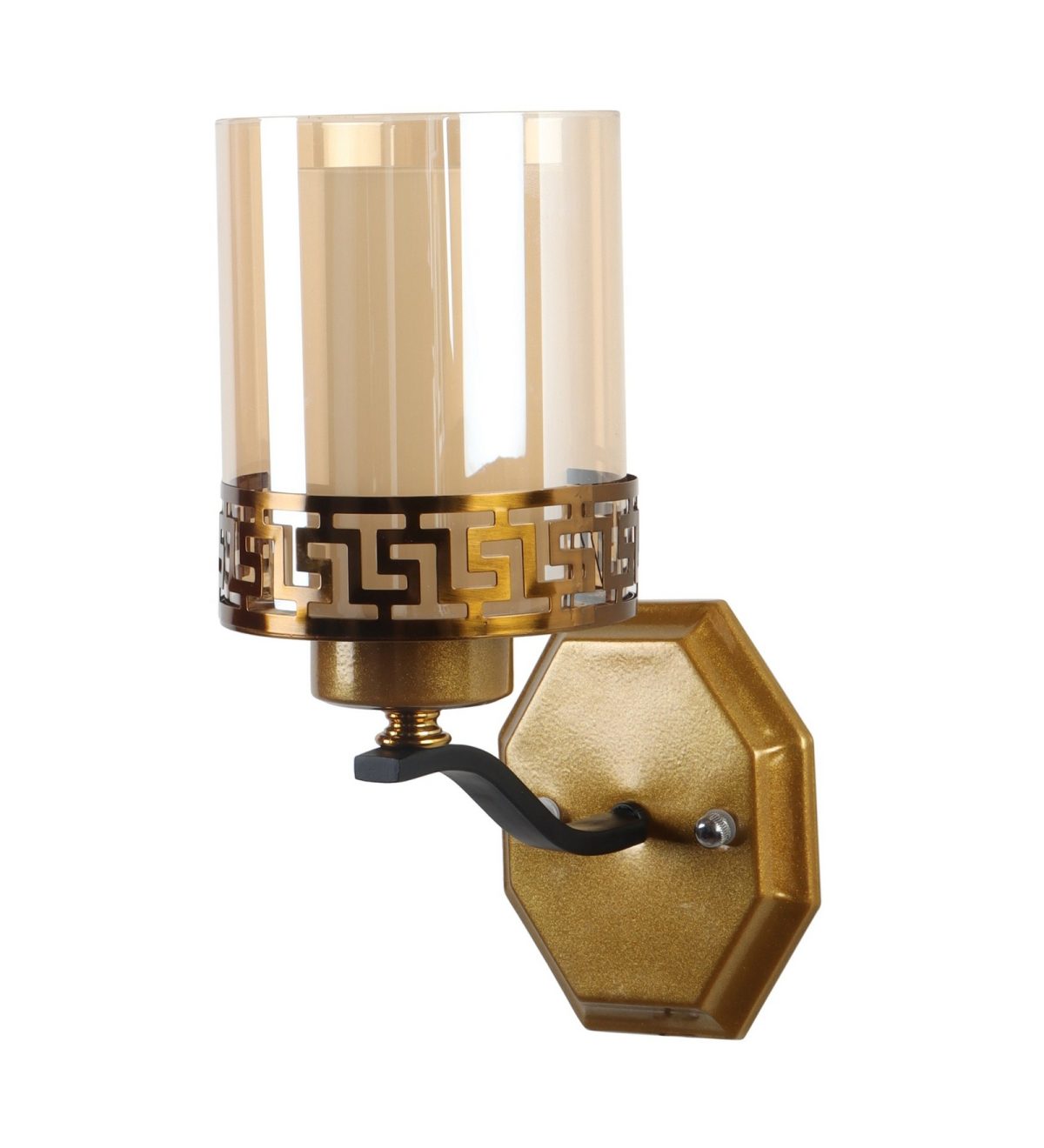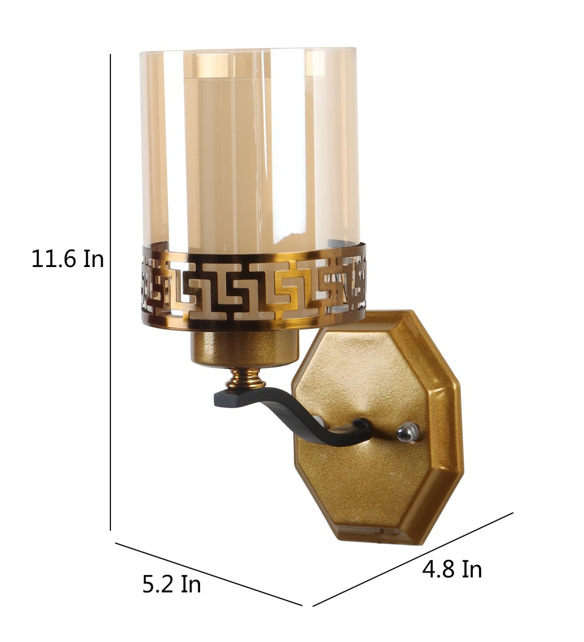 Antique gold finish single wall light having round, cylindrical two layered champaign coloured glass. It is maintenance free, easy to remove glass and wash them, comes with an E27 holder, only the change of lamp is required, which is available locally everywhere. Application includes both residential and commercial premises wherever it matches with your interiors. Matching double wall light code – WL2710. Can be customized as per requirement in case of bulk quantity, LAMP NOT INCLUDED.
