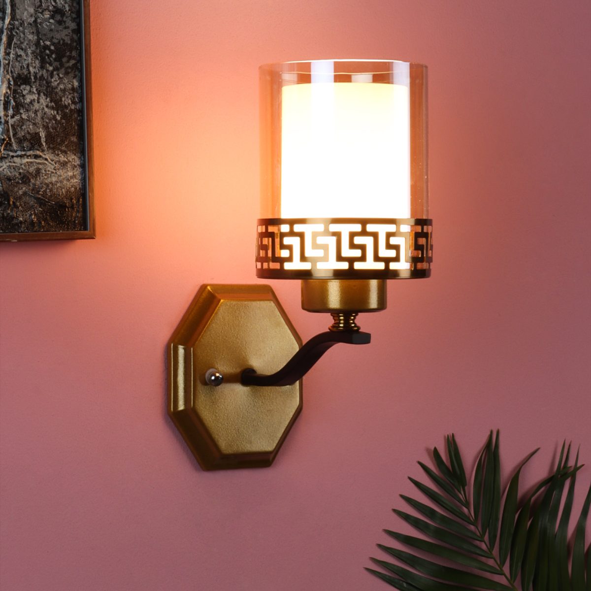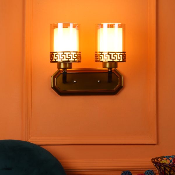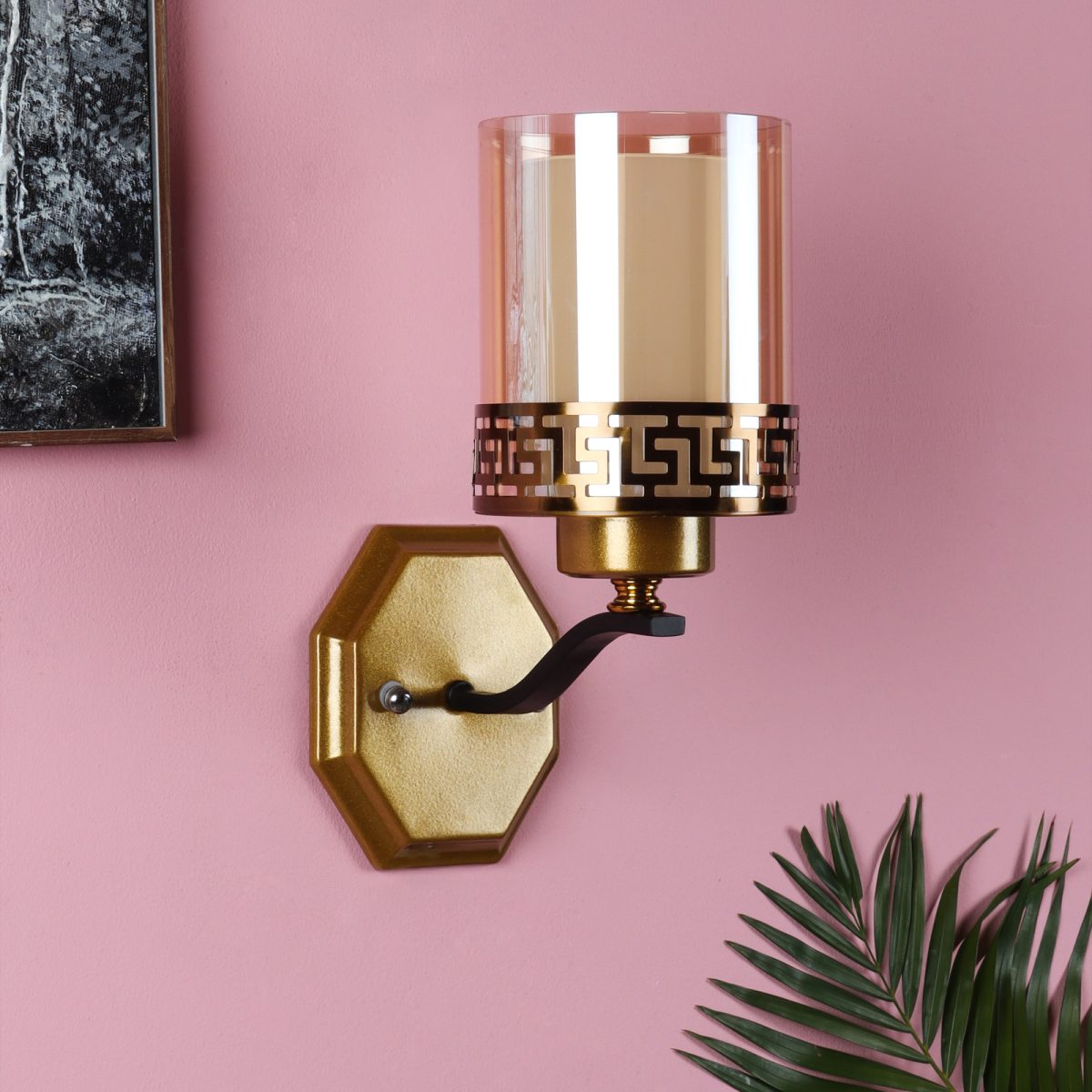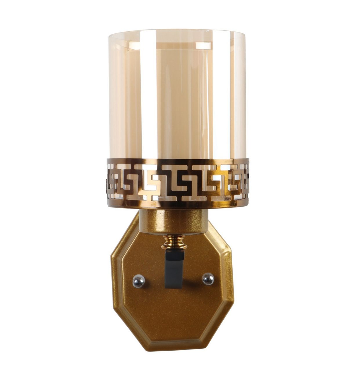 Antique gold finish single wall light having round, cylindrical two layered champaign coloured glass. It is maintenance free, easy to remove glass and wash them, comes with an E27 holder, only the change of lamp is required, which is available locally everywhere. Application includes both residential and commercial premises wherever it matches with your interiors. Matching double wall light code – WL2710. Can be customized as per requirement in case of bulk quantity, LAMP NOT INCLUDED.