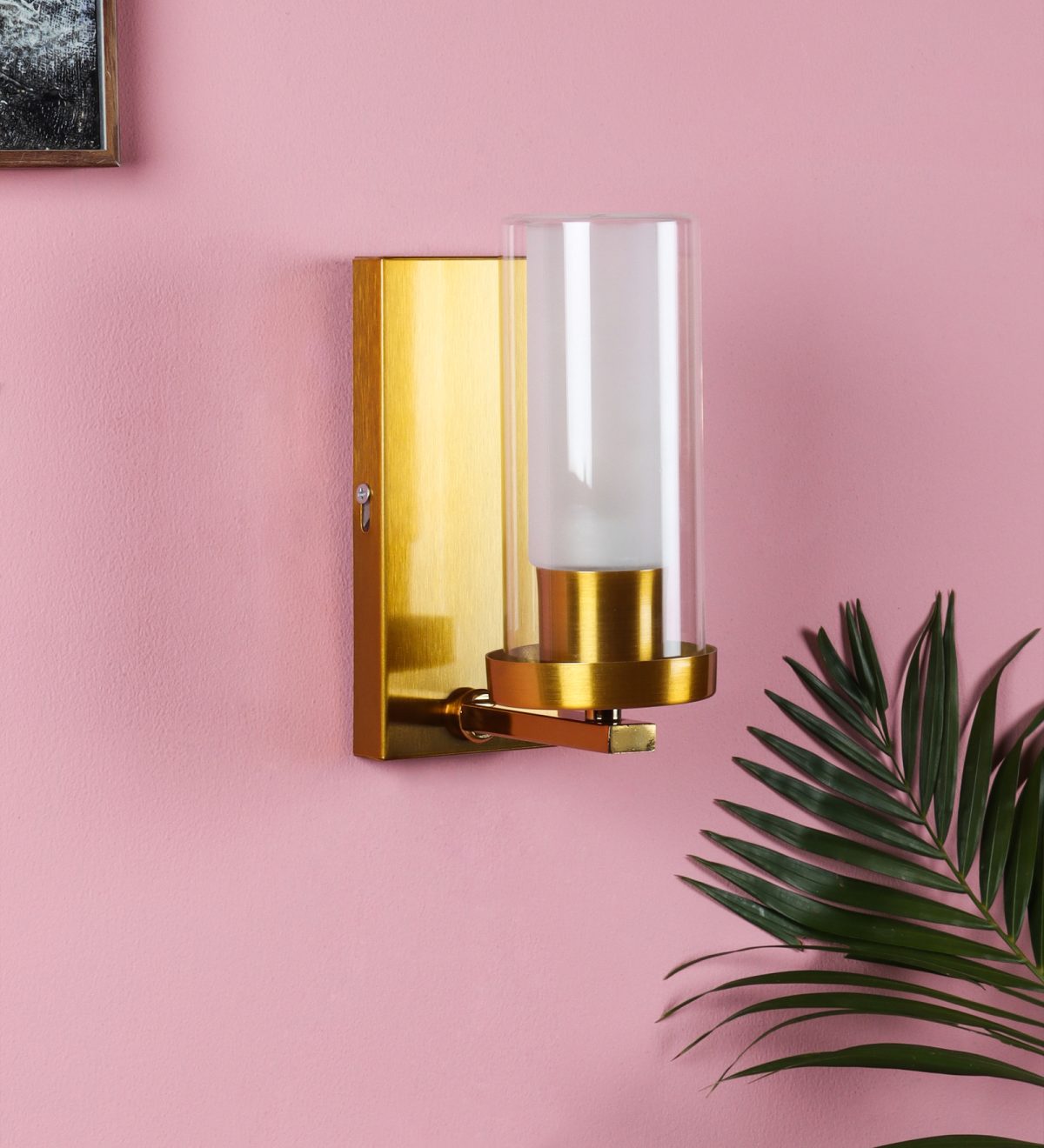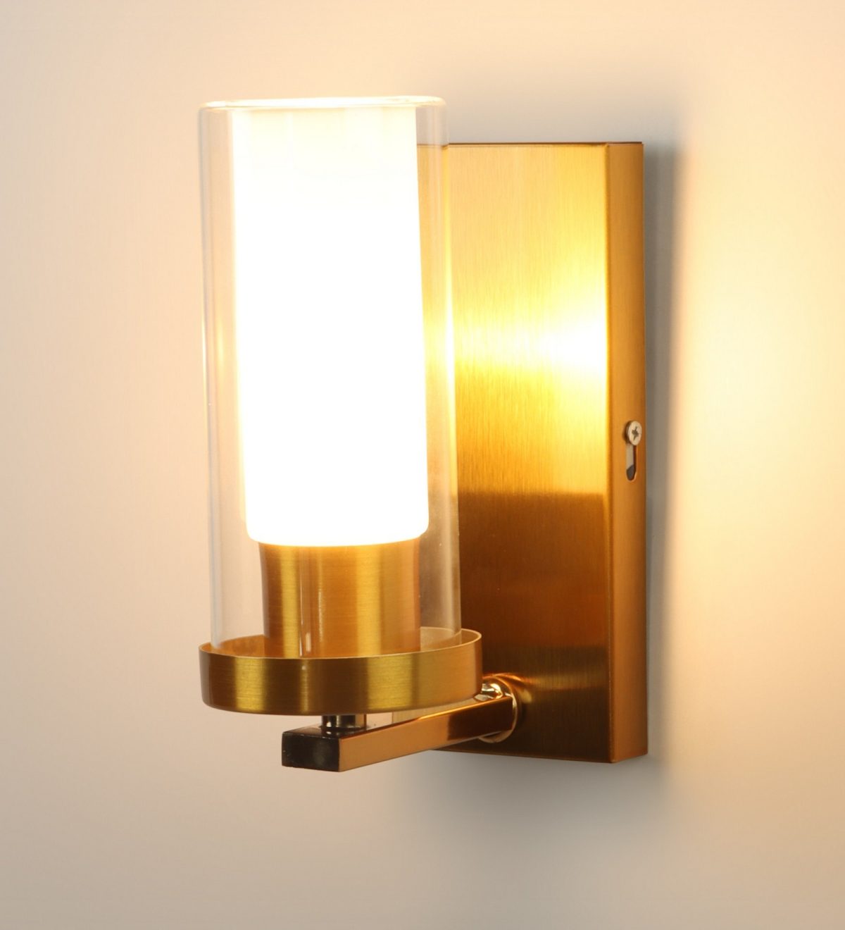 Antique gold finish single wall light having sleek, round, cylindrical two layered glass. It is maintenance free, easy to remove glass and wash it, comes with an E14 holder, only the change of lamp is required, which is available locally everywhere. Application includes both residential and commercial premises wherever it matches with your interiors. Matching double wall light code – WL2734. Can be customized as per requirement in case of bulk quantity, LAMP NOT INCLUDED.